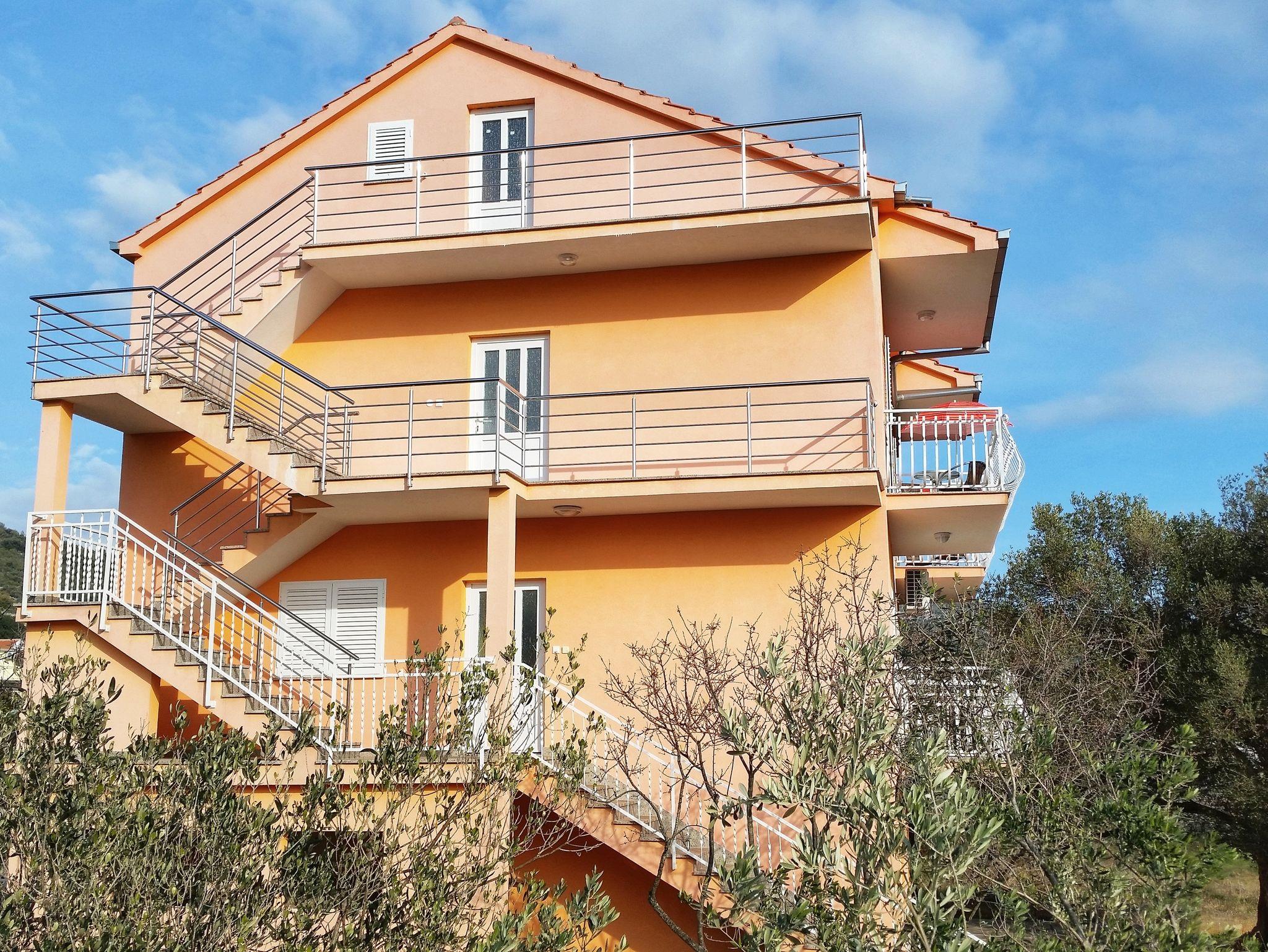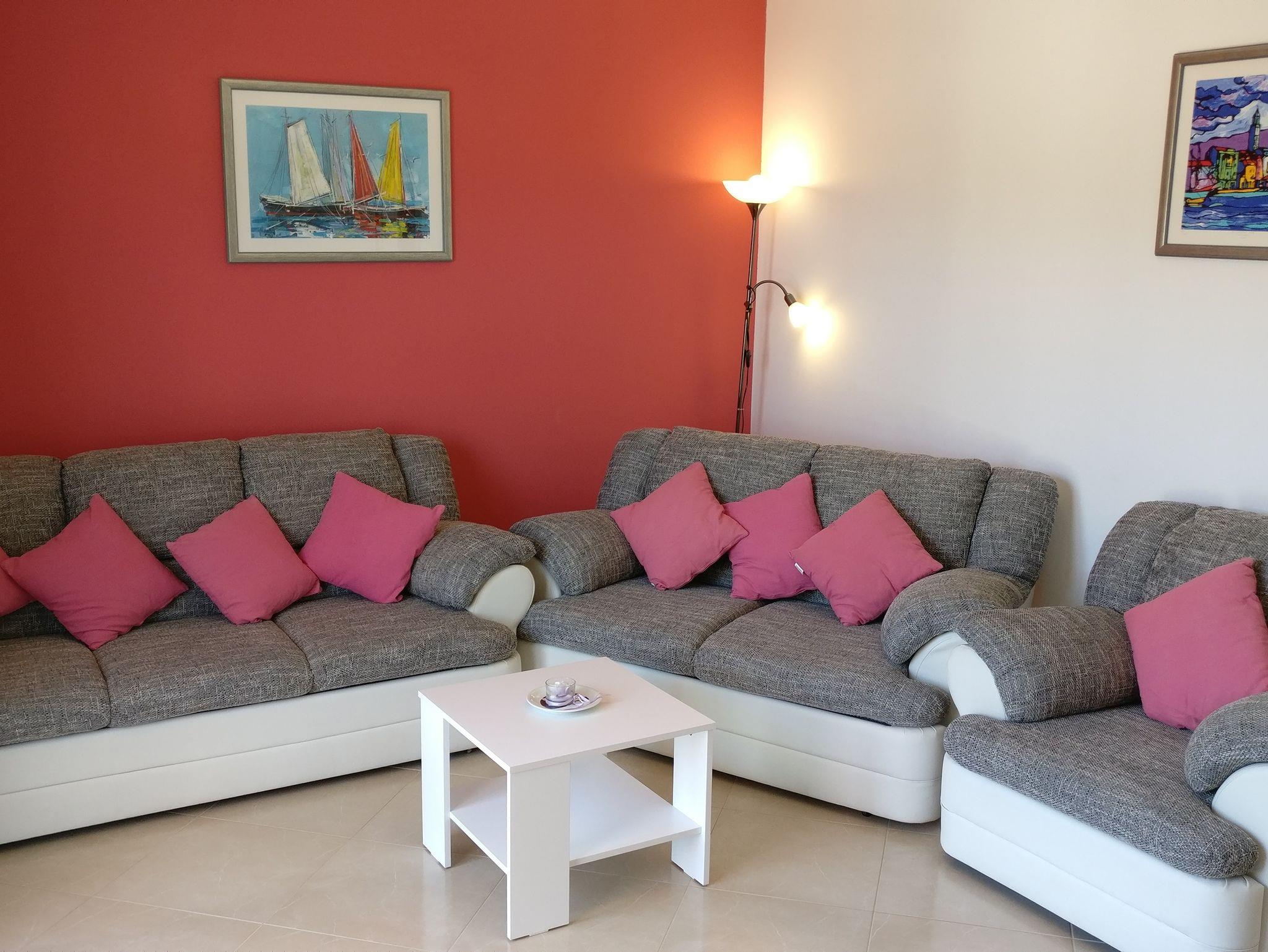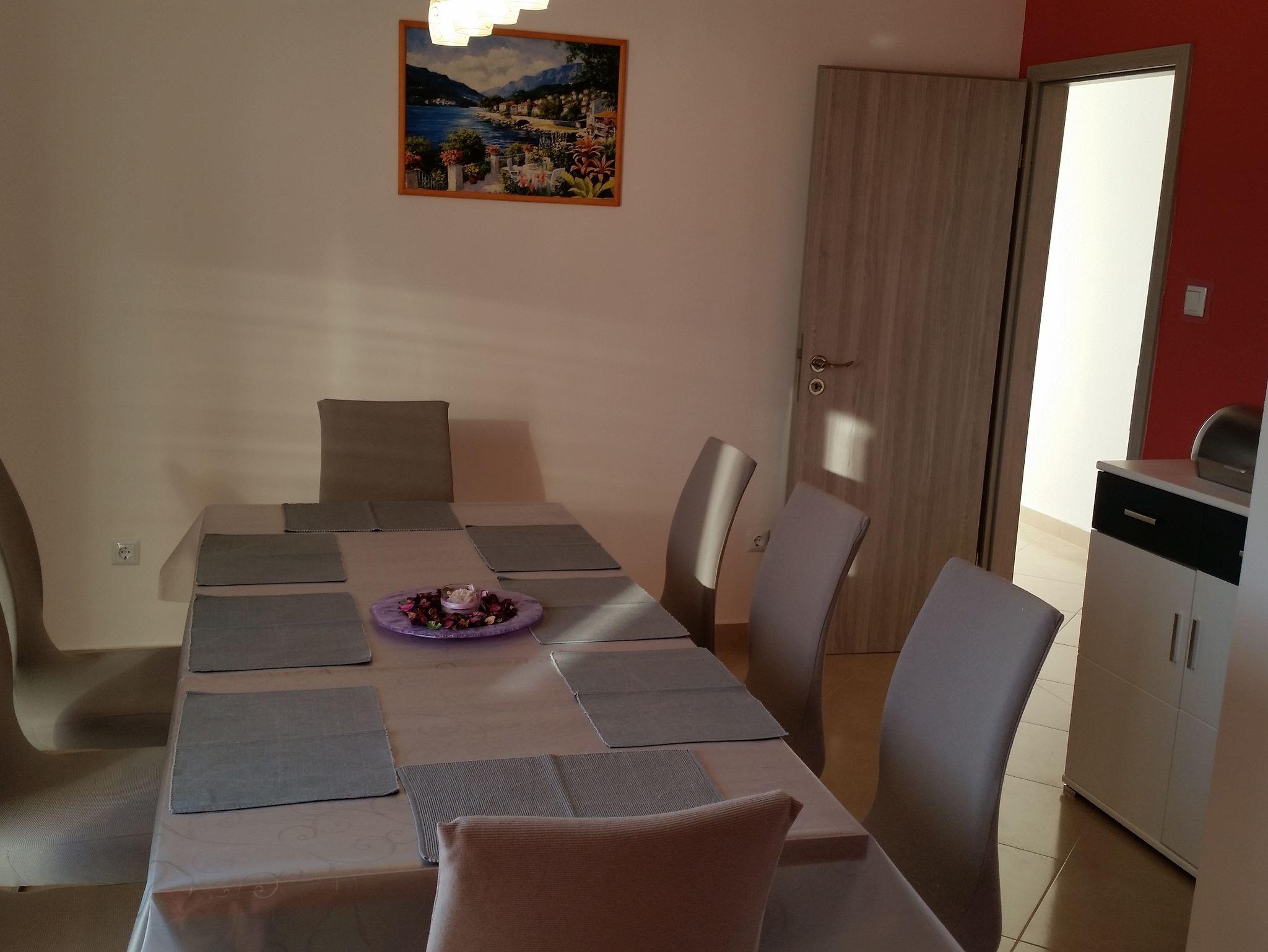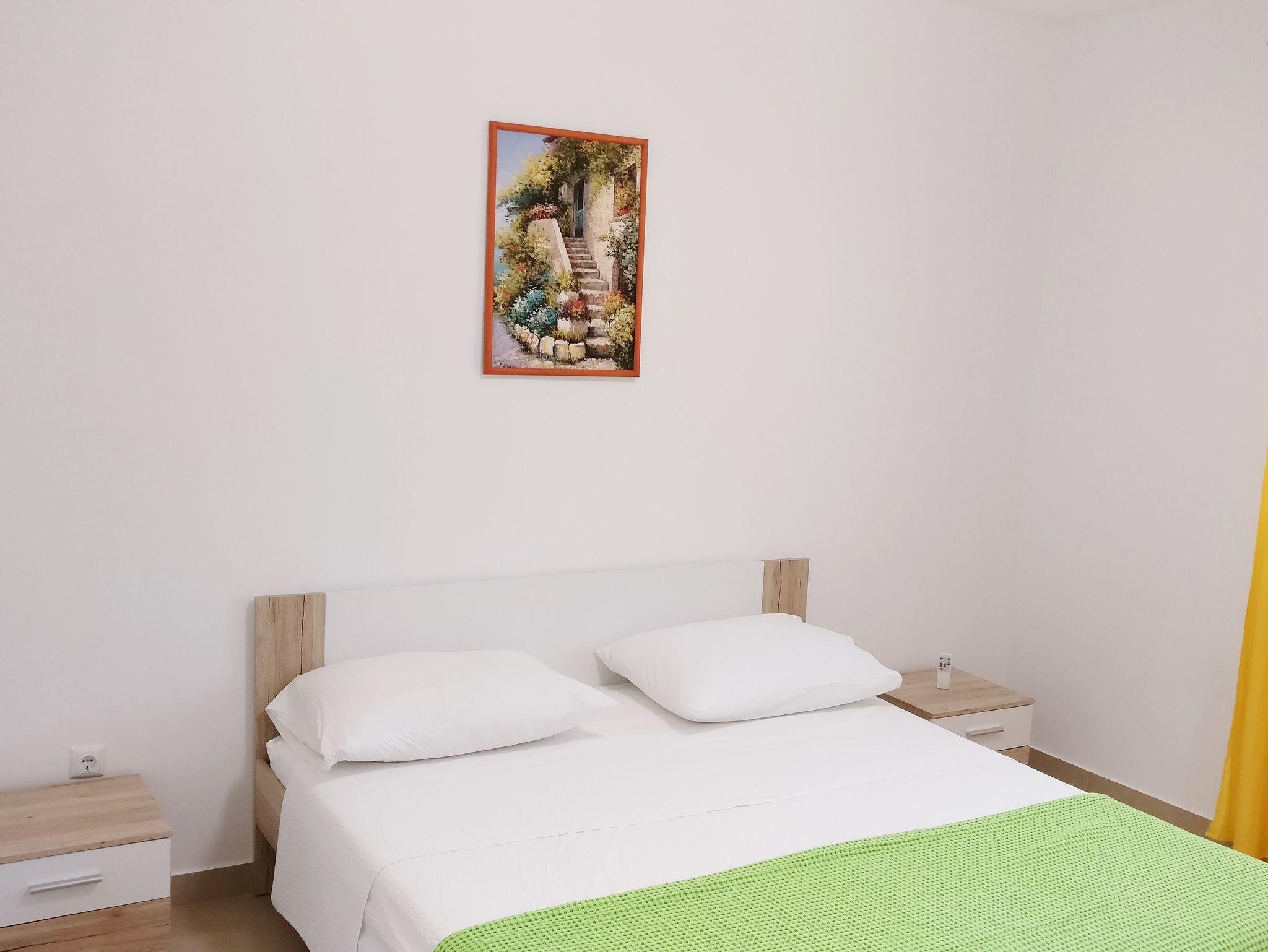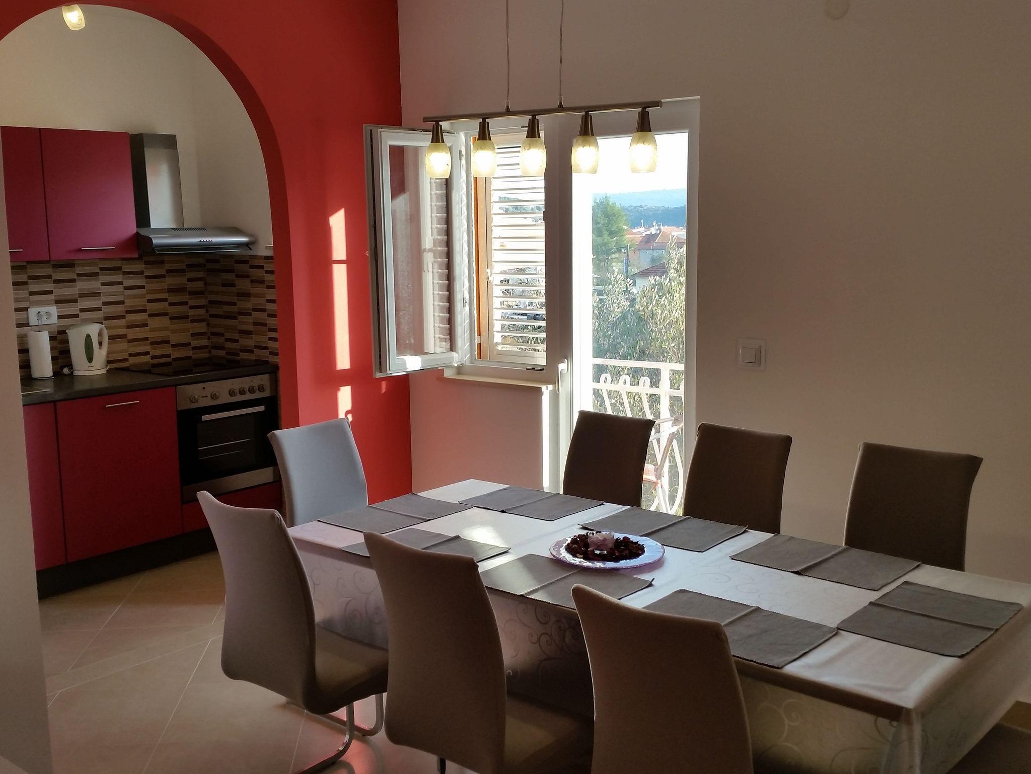 Ferienwohnung bietet Platz für 6 Gäste. Die Betten sind in Schlafzimmern, die es 2 gibt, und in Wohnzimmer, innerhalb einer Gesamtfläche von 100m2, angeordnet. Die Gäste haben eine eigene Terrasse zur Verfügung, auf der sie in warmen Sommernächten genießen können. Das Apartment bietet Meerblick. Es ist erlaubt, Speisen auf dem Gemeinschafts-Grill vorzubereiten. Während ihres Aufenthalts können Gäste das gemeinsam zur Nutzung stehende Schwimmbad benutzen. IM PREIS INBEGRIFFEN: Kurtaxe, Endreinigung, Klimatisierung, Pool, Parkplatz, Internet, Kinderbett, Zusatzbett, Bügeleisen, Bügelbrett, Föhn, tragbarer Grill. UNVERBINDLICHE ZUSÄTZLICHE KOSTEN: Bootsanlegeplatz (15,00 € pro Nacht). Die Verfügbarkeit zusätzlicher Dienstleistungen in Ihrem reservierten Termin und die Preise derselben (falls nicht aufgeführt) müssen im Voraus überprüft werden. Zusätzliche Dienstleistungen die in der Zahlungsaufforderung nicht aufgeführt sind werden direkt beim Vermieter bezahlt, angenommen der Gast nutzt auch diese. Ermäßigung auf den Grundpreis: Gratistag 14=13 (bei einem Aufenthalt von 14 Tagen oder mehr erhalten Sie einen Gratistag für den Aufenthalt bis 31.12.26).
