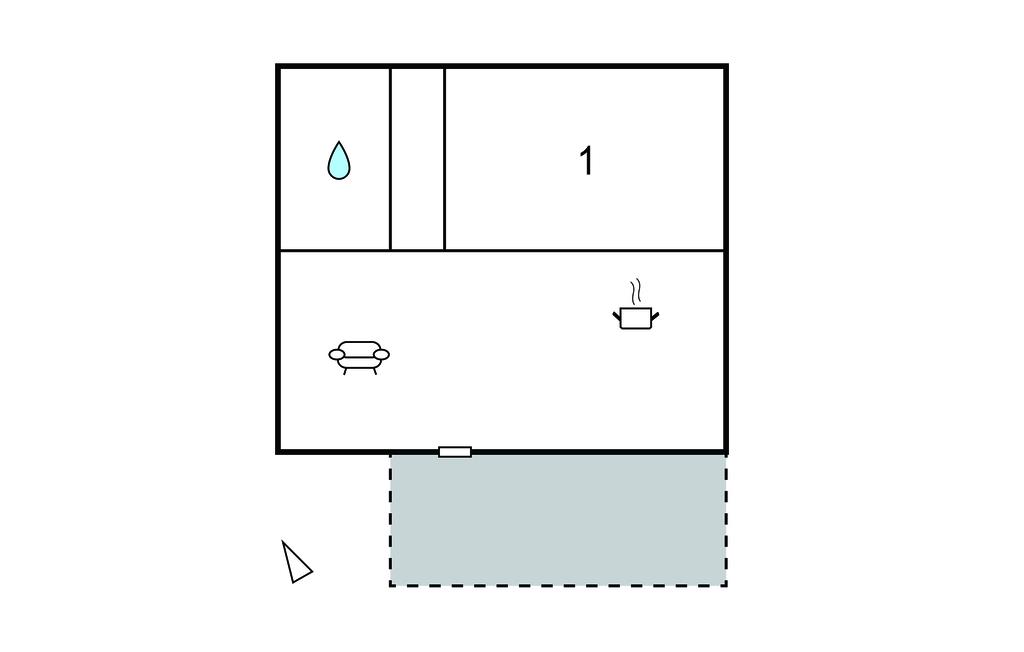 Opholdsstue/køkken 26m2 - 2 Sovepladser. (Sofa, madras eller lignende).