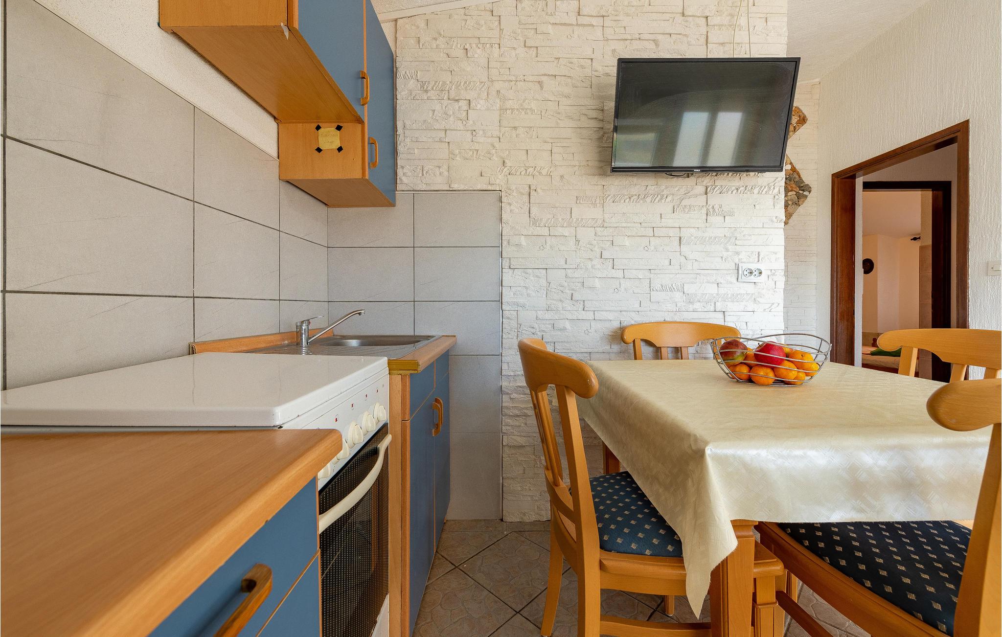 Velkommen til denne ferielejlighed i et familiehus, der fungerer som en glimrende base til en dejlig sol- og badeferie. Vågn op og tilbered en lækker morgenmad, som kan nydes på terrassen, inden I pakker strandtasken og trasker afsted mod en af de mange sand- og klippestrande med krystalklart vand eller går på opdagelse på den spændende, lille ø. Når I kommer hjem, kan I tage et velfortjent hvil i lejligheden eller nyde en kold forfriskning på terrassen, inden I tænder op i fællesgrillen og tiilbereder et lækkert feriemåltid.