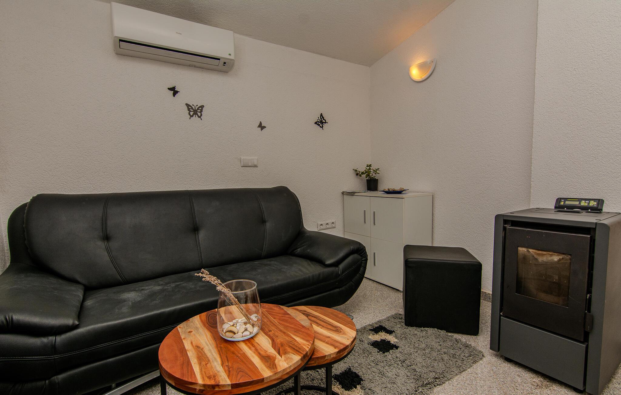 Åbn altandøren og lad lys og frisk luft komme ind. Gør det behageligt på liggestolen og nyd udsigten over havet. Vinduet tilbyder også en smuk udsigt over Adriaterhavet og bjergene bagved.