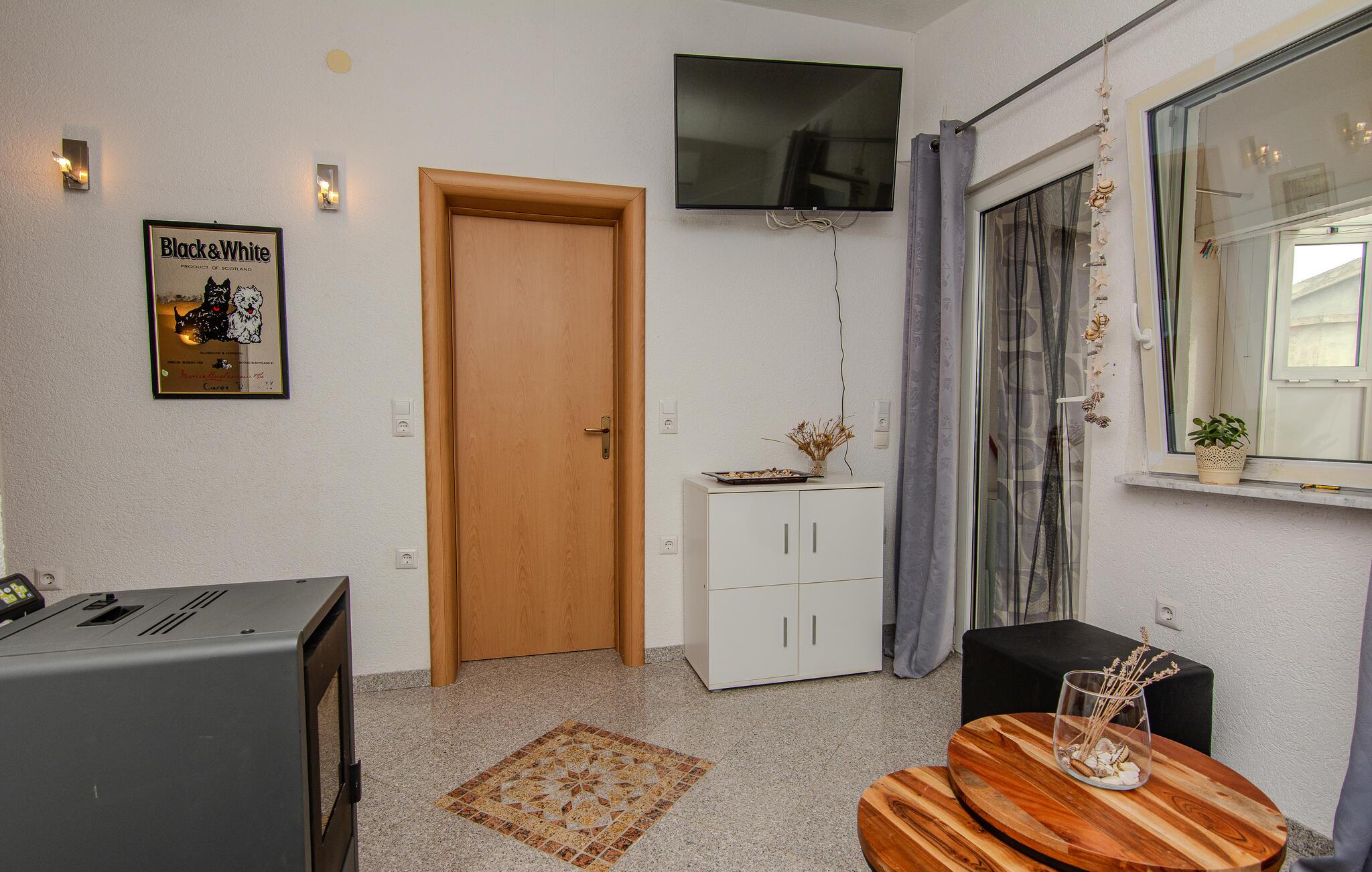 Træd ind i Denne ferielejlighed, og føl jer godt tilpas i opholdsstuen med sofa, TV og pejs. Tilbring hyggelige aftener i denne fredelige atmosfære. Tilbered dagens måltider i det praktiske køkken og nyd dem i den solbeskinnede spiseplads med store vinduer.