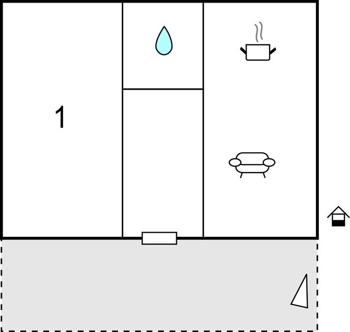 Opholdsstue/køkken 15m2 - 1 Soveplads. (Sofa, madras eller lignende).