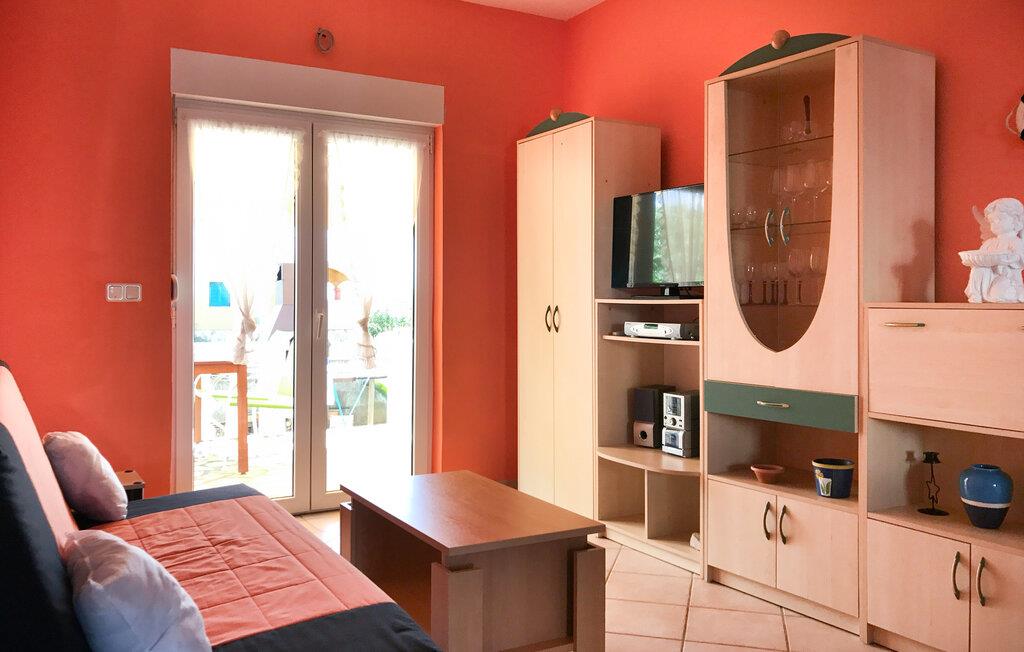 Denne lejlighed på øen Vir er perfekt til en afslappende ferie. En lys stue med sofa og direkte adgang til terrassen samt et praktisk køkken vil sikre, at I hurtigt føler jer hjemme. Slap af her, mens I lytter til musik, tilbring en eftermiddag med at spille kort eller prøv nye opskrifter, mens I laver mad sammen.