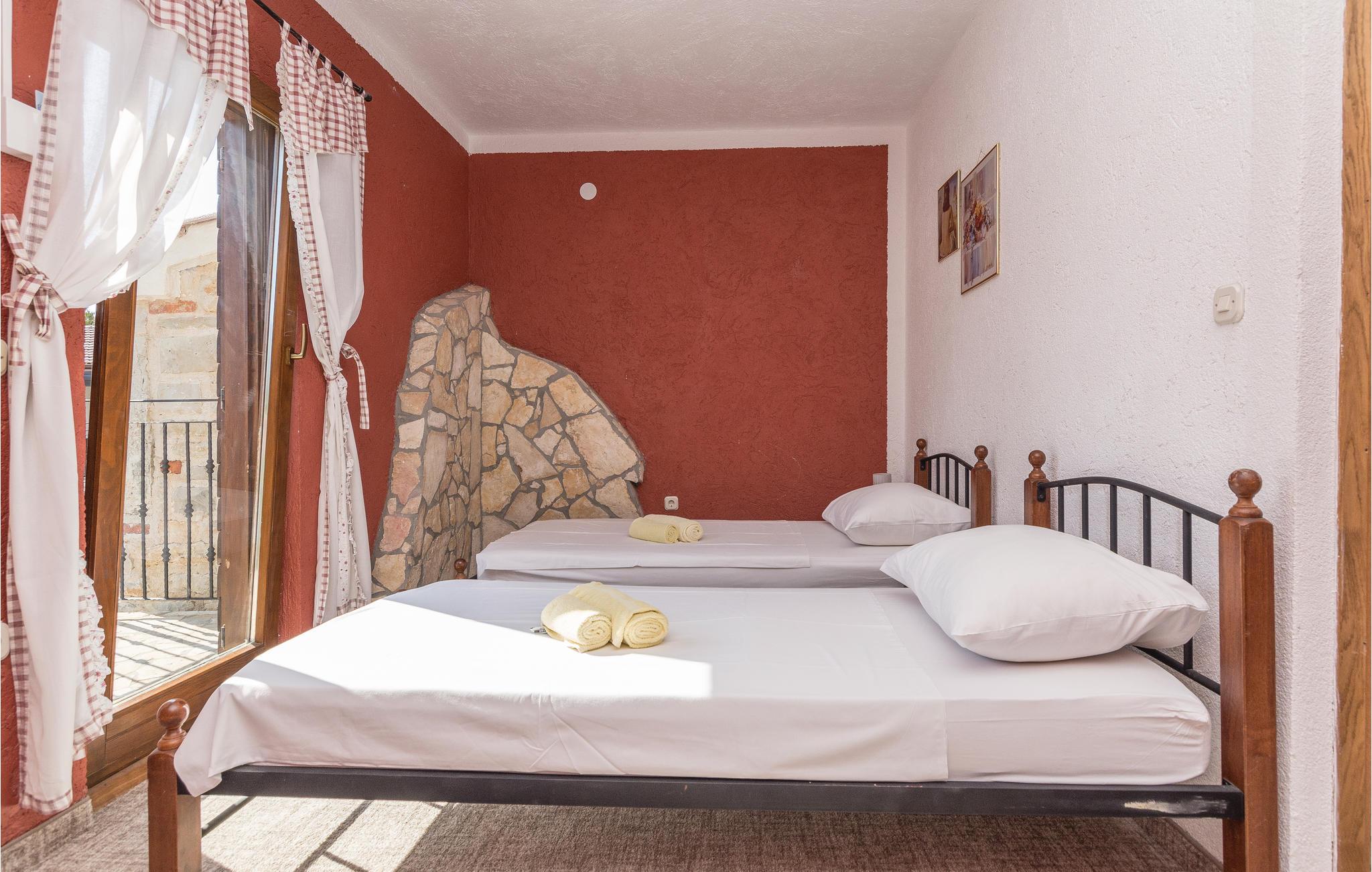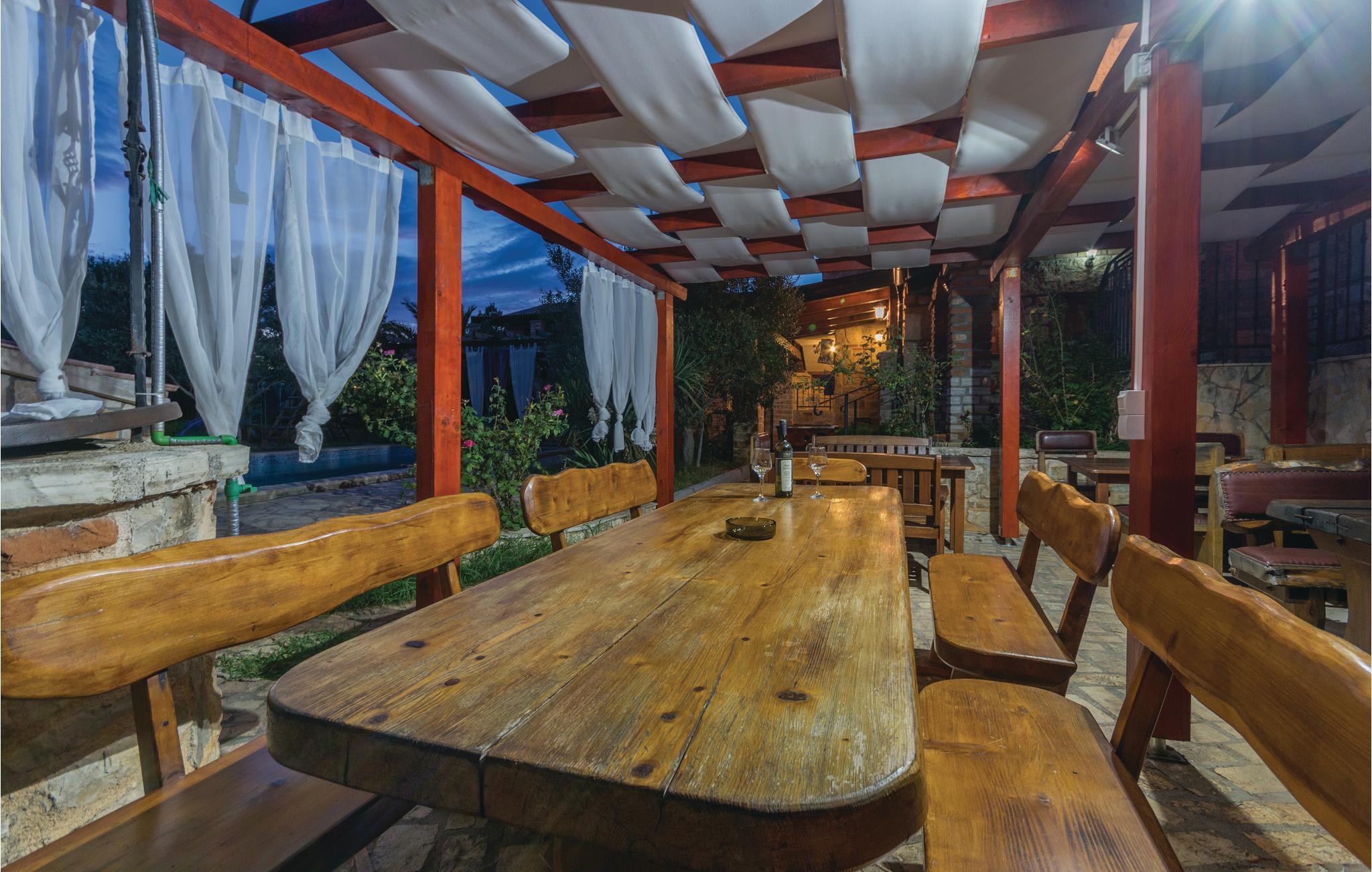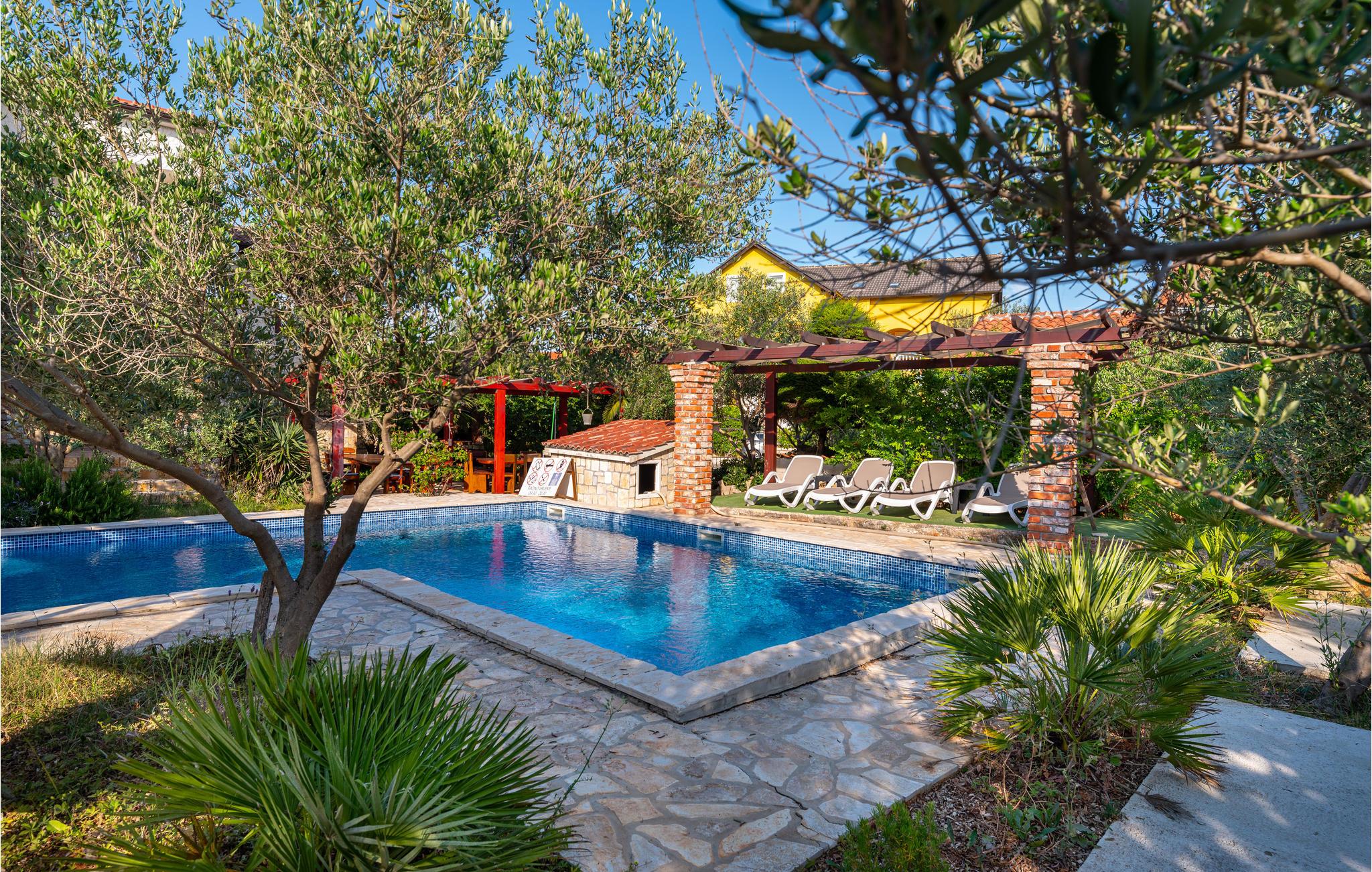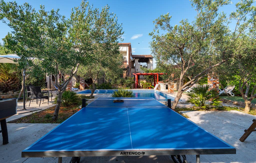 Dette rummelige og komfortabelt indrettede feriehus på øen Vir, ligger nær byen af samme navn. Bygningen består af en enhed i to etager med fem soveværelser og tre andre appartementer med separat indgang og egne terrasser. Se frem til at slappe af ved poolen der ligger i haven som har en mediterran charme. Vil I prøve at svømme i Adriaterhavet, så er der kun ca. 450 meter til den nærmeste kiesstrand. Øen Vir er forbundet med bro til fastlandet, her er dejligt uberørt natur og mange ensomme og fredelige badebugter. Besøg også den interessante by Zadar med både historiske og moderne seværdigheder, samt Nin med en skøn historisk bydel og Dronningestranden med sit helende mudder. Huset har 8 klimaanlæg, hvoraf 7 kan bruges mod et ekstra gebyr (de har en tæller, så strømforbruget kan beregnes).