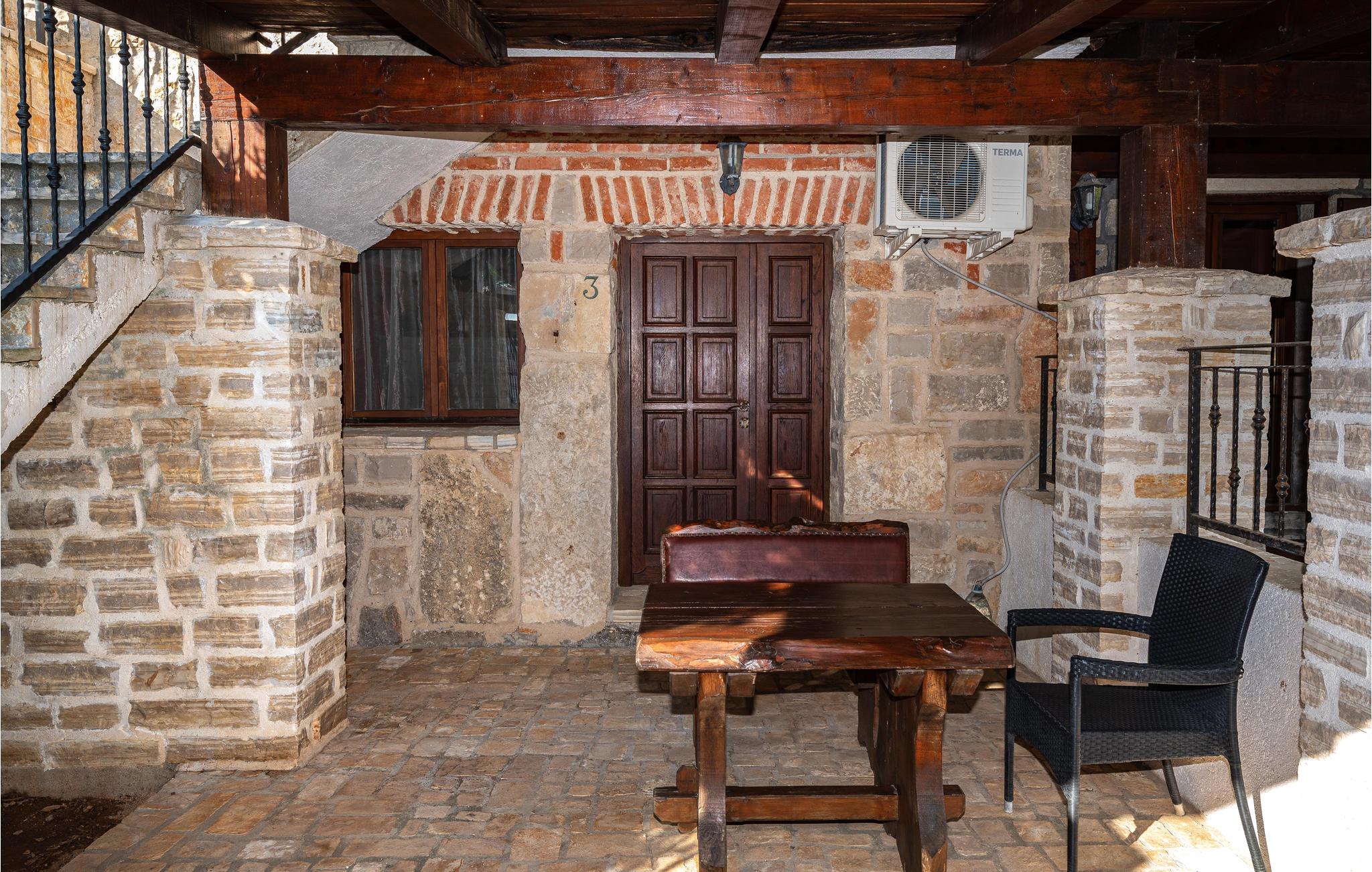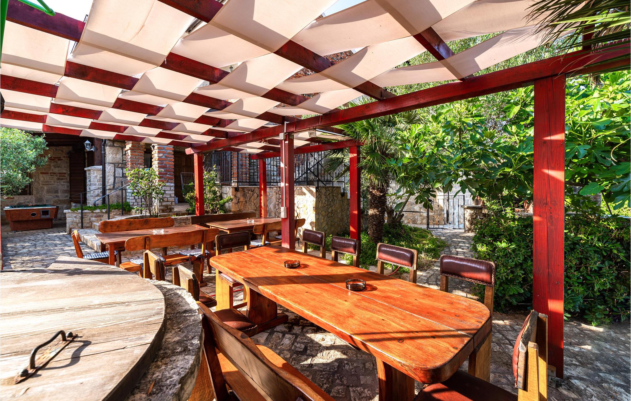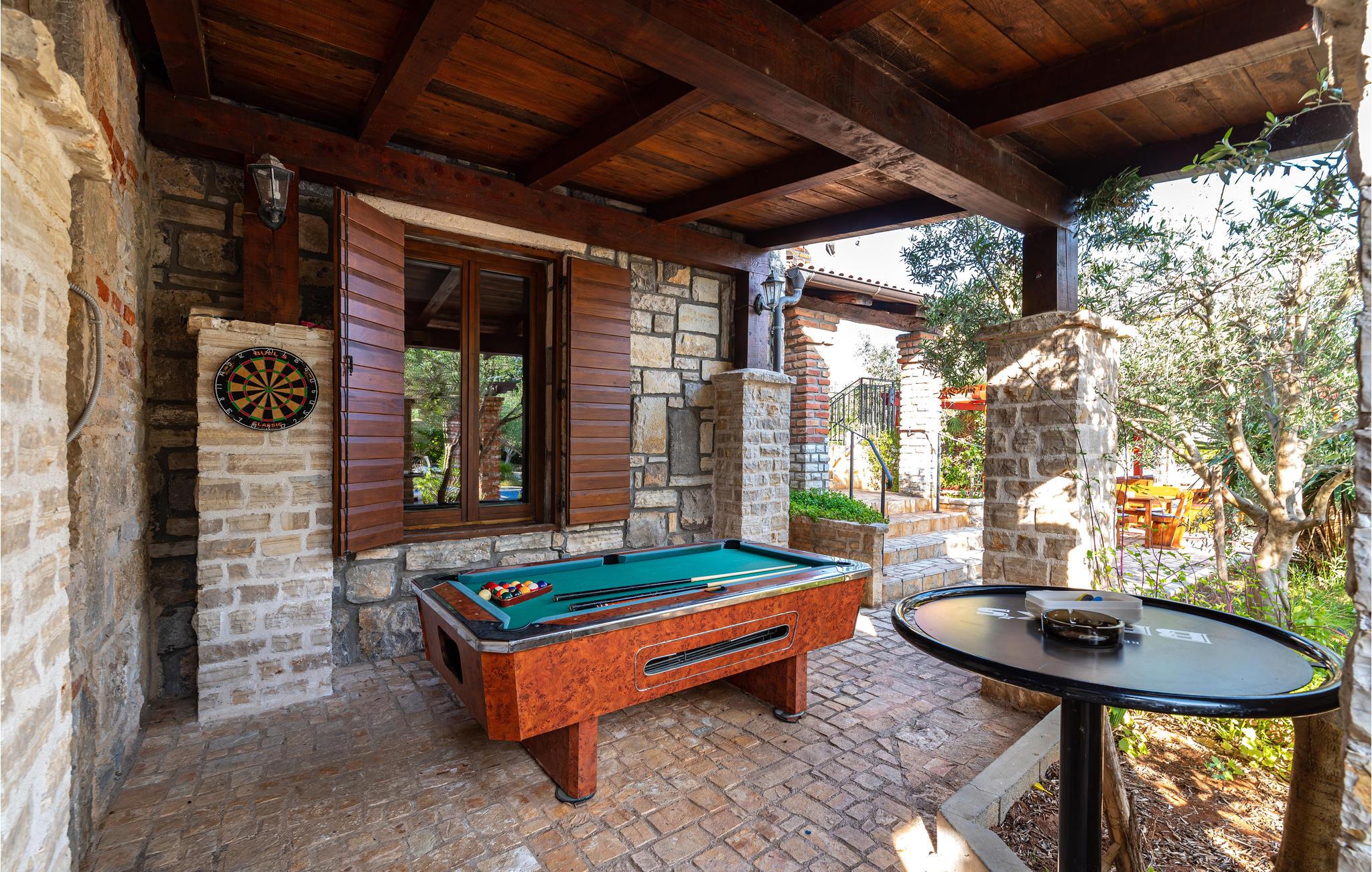 Dette rummelige og komfortabelt indrettede feriehus på øen Vir, ligger nær byen af samme navn. Bygningen består af en enhed i to etager med fem soveværelser og tre andre appartementer med separat indgang og egne terrasser. Se frem til at slappe af ved poolen der ligger i haven som har en mediterran charme. Vil I prøve at svømme i Adriaterhavet, så er der kun ca. 450 meter til den nærmeste kiesstrand. Øen Vir er forbundet med bro til fastlandet, her er dejligt uberørt natur og mange ensomme og fredelige badebugter. Besøg også den interessante by Zadar med både historiske og moderne seværdigheder, samt Nin med en skøn historisk bydel og Dronningestranden med sit helende mudder. Huset har 8 klimaanlæg, hvoraf 7 kan bruges mod et ekstra gebyr (de har en tæller, så strømforbruget kan beregnes).