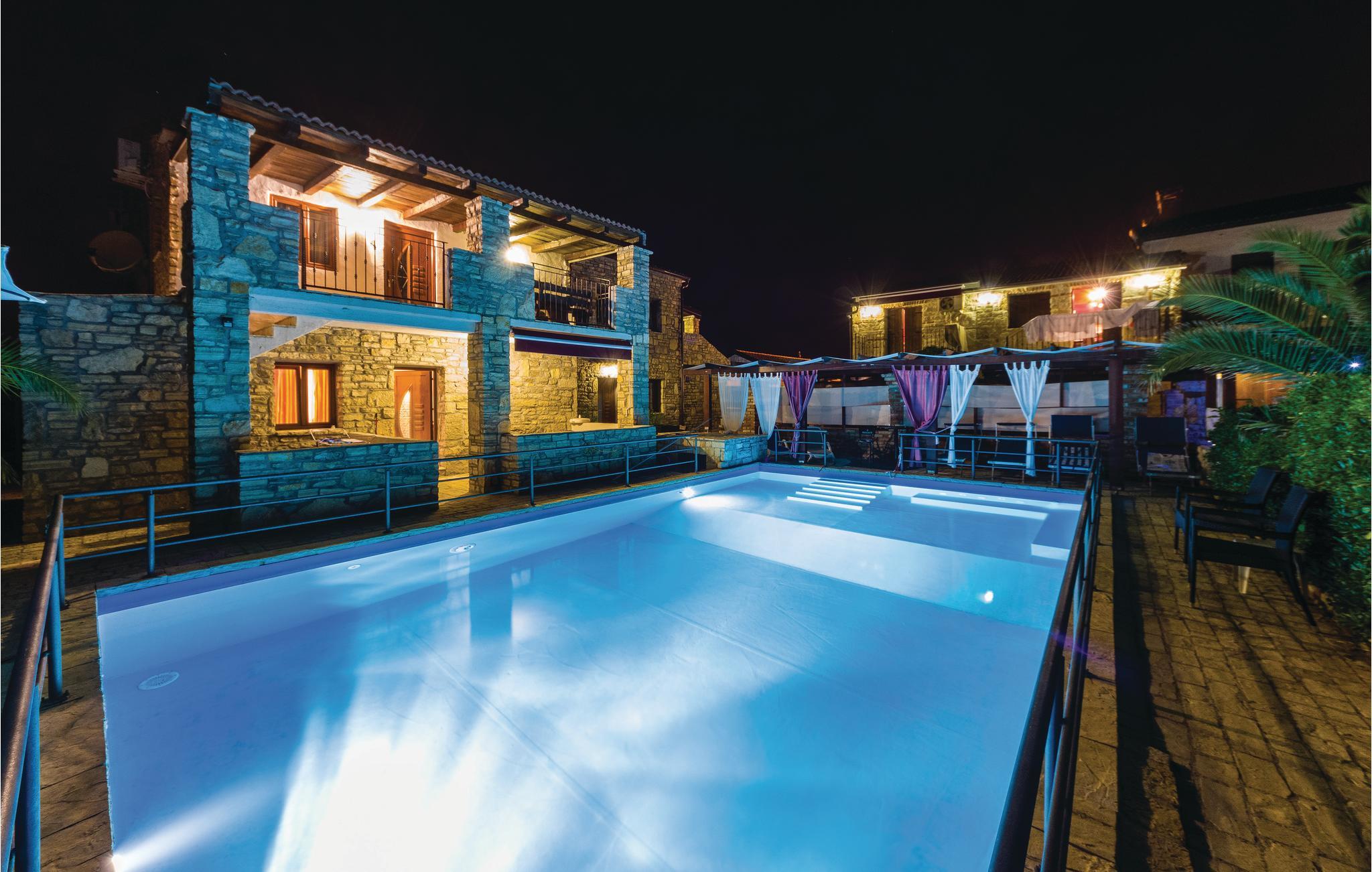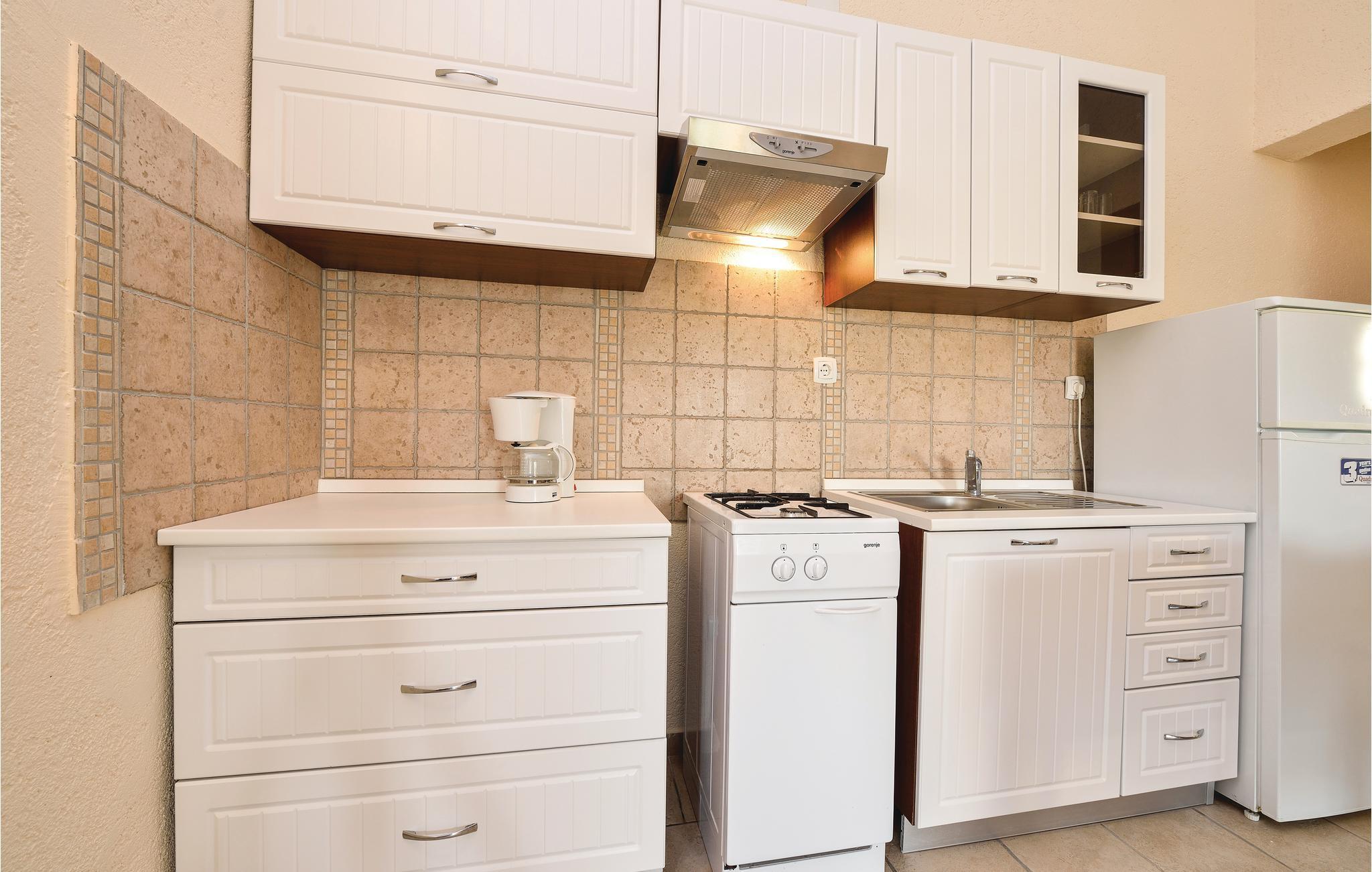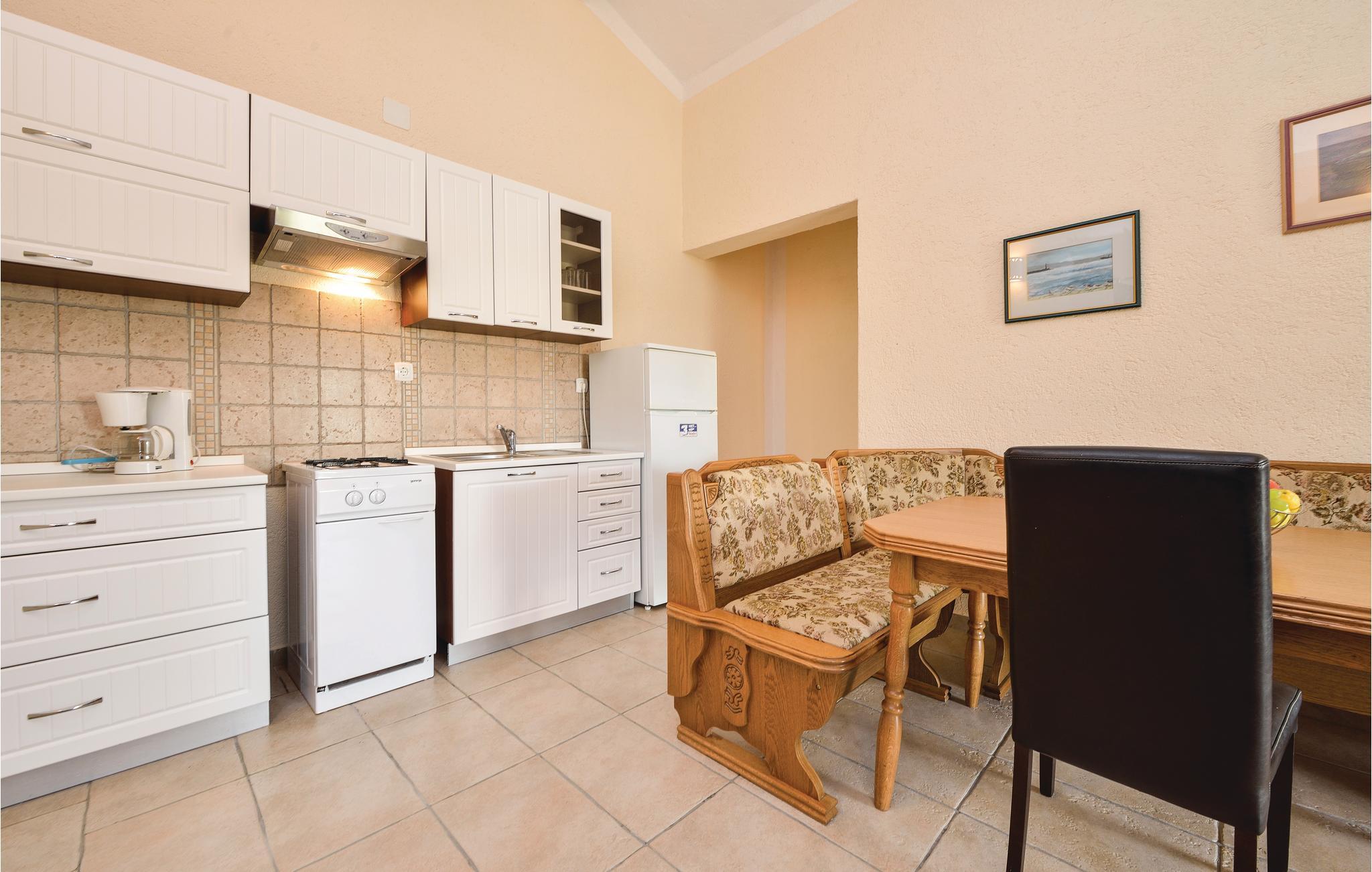 Tilbring en afslappende ferie på den solrige ø Vir i en af disse fire komfortable og smukt indrettede lejligheder fordelt på to huse af sten, der ligger på en fælles grund. De er ideelle til flere familier eller større venne-grupper. Hver lejlighed har en terrasse med udsigt over den smukt vedligeholdte grund, der er dejligt frodig grønt og med forskellige mediterrane planter. Noget der er skønt på de varme dage, er en tur i den fælles pool, eller bade i havet fra kiesstranden, under 500 meter fra jeres lejlighed. Øen Vir er kendt for sin krystalklare hav og uberørt natur samt talrige ensomme bugter. Besøg Zadars gamle bydel med sine unikke stræder, kulturminder og kirker. Dronningestranden med sit helende mudder, ligger i den nærliggende by Nin, også kendt for sin fantastiske gamle bydel.