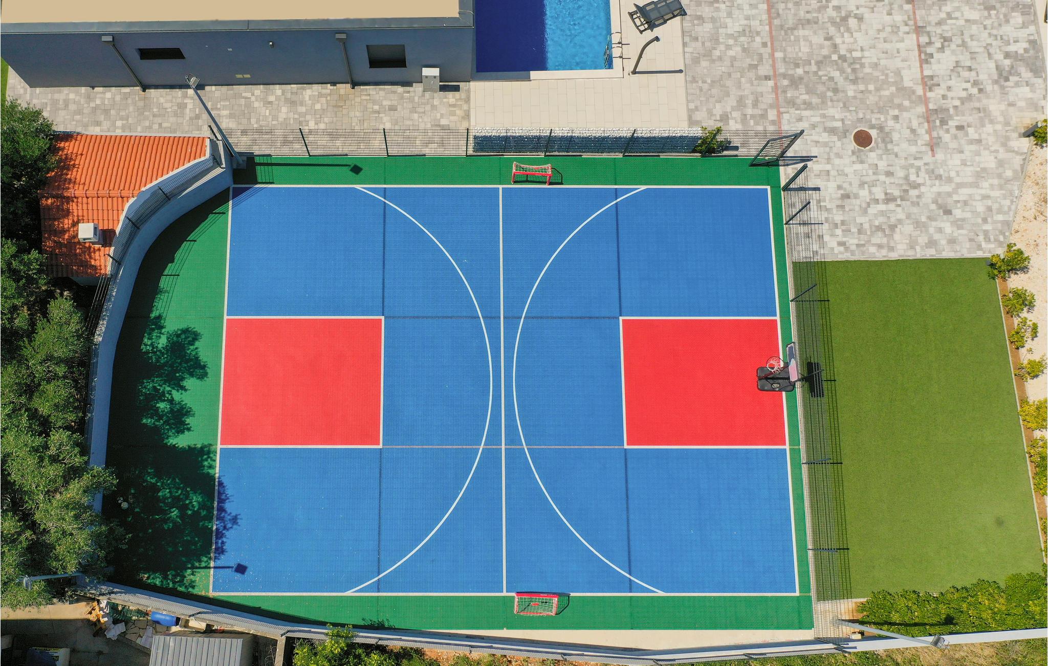 Der er en multifunktionel legeplads, børnefaciliteter, og i en separat bygning er der fælles sauna og jacuzzi samt fitnessområde.