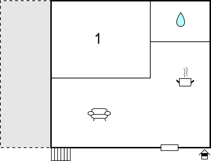 Opholdsstue/køkken 22m2 - 2 Sovepladser. (Sofa, madras eller lignende).