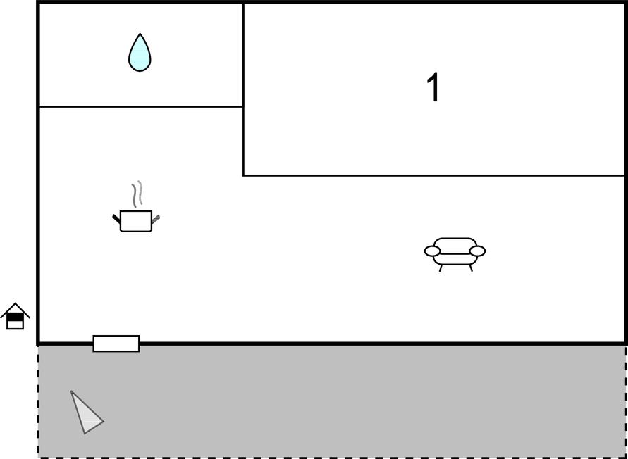 Opholdsstue/køkken 18m2 - 1 Soveplads. (Sofa, madras eller lignende).
