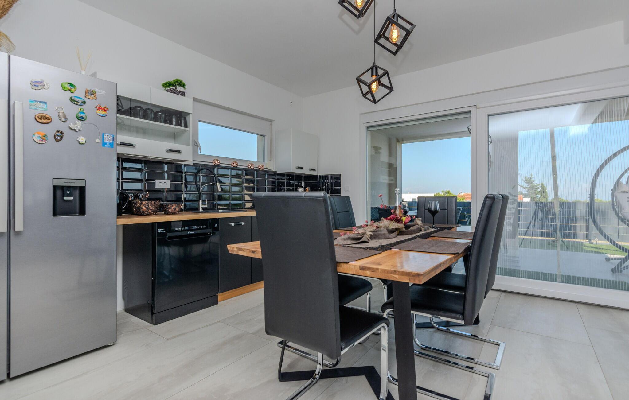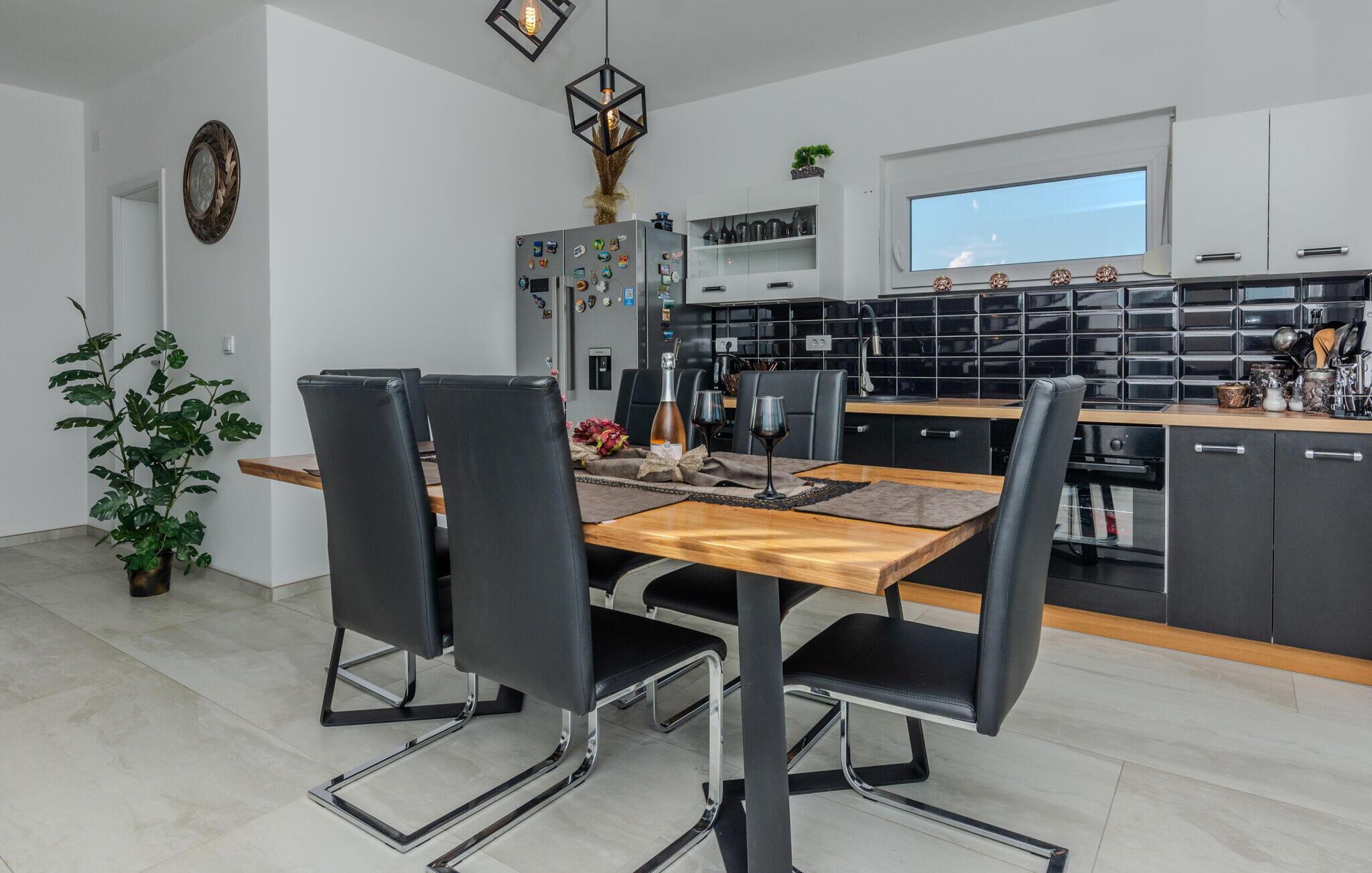 Dette moderne feriehus med rummelige, smagfuldt indrettede værelser lægger op til en uforglemmelig pause på øen Vir. Fejr madlavningsbegivenheder sammen i det åbne, fuldt udstyrede køkken, og tag plads ved det stilfulde spisebord. Efter en aktiv dag kan I slappe af i den hyggelige stue, streame en serie på fladskærms-tv'et eller spille et spændende brætspil.