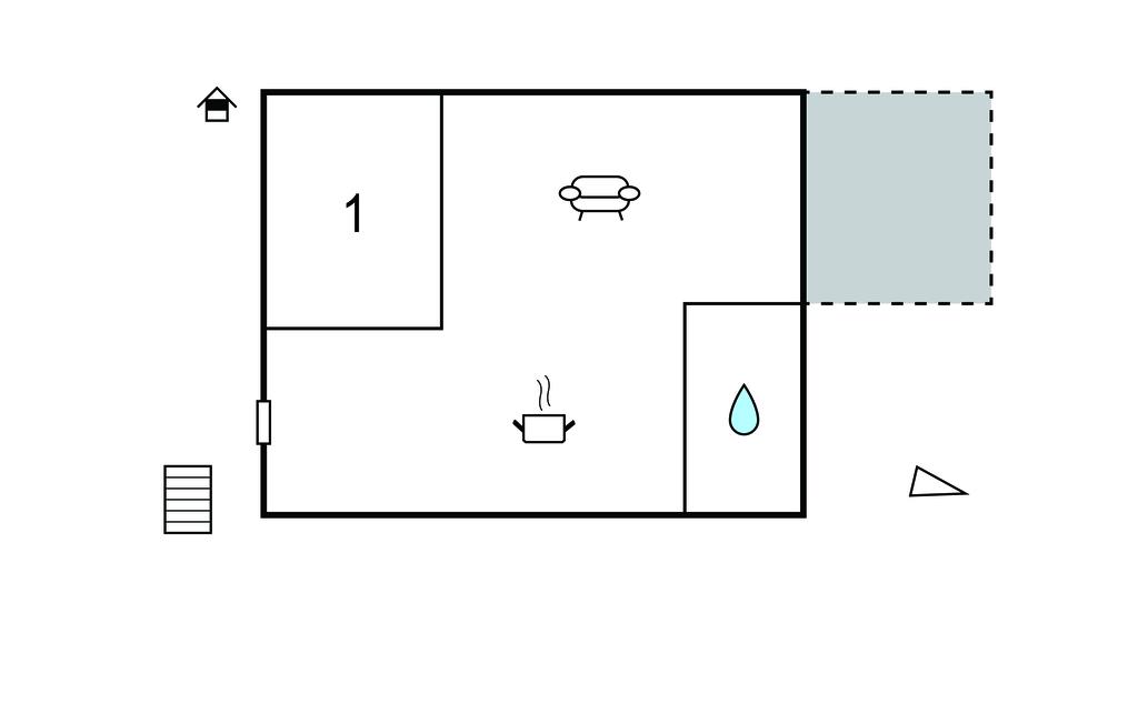 Komb. spisestue/køkken 28m2 - 2 Sovepladser. (Sofa, madras eller lignende).