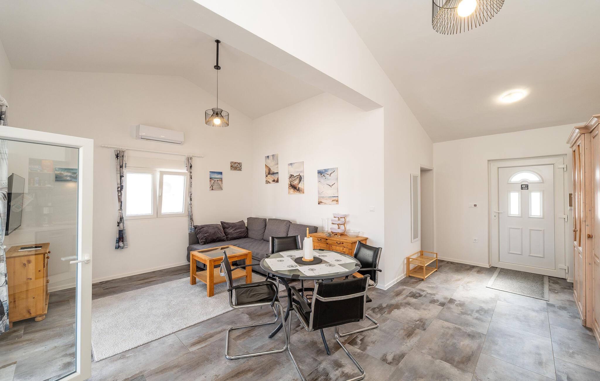 Slap af i denne lejlighed ved stranden på øen Vir. Denne hyggelige lejlighed med komfortabelt sofahjørne og praktisk køkken er perfekt til en afslappende ferie. Slap af og genoplad batterierne. Lyt til jeres yndlingsmusik eller en interessant podcast, inden I tilbereder et lækkert måltid. Forkæl jer selv med et godt glas vin, og afslut aftenen i en afslappet atmosfære. Gå ud på terrassen om morgenen med en frisk kop kaffe, og indånd Middelhavsluften. Nyd en let morgenmad, og planlæg dagens aktiviteter. Saml jer her om aftenen, og reflekter over dagen. Udforsk øen Vir, og oplev skjulte bugter og en fantastisk udsigt over det krystalklare blå hav. Besøg de charmerende byer Nin og Privlaka, der er kendt for deres sandstrande og afslappede atmosfære. Tag en dagstur til den historiske by Zadar, og bliv betaget af de romerske ruiner, Havorglet og den gamle bydel. Glæd jer til et udvalg af restauranter lige ved havet, eller nyd vandsport såsom kajaksejlads, jetski eller stand-up padling.