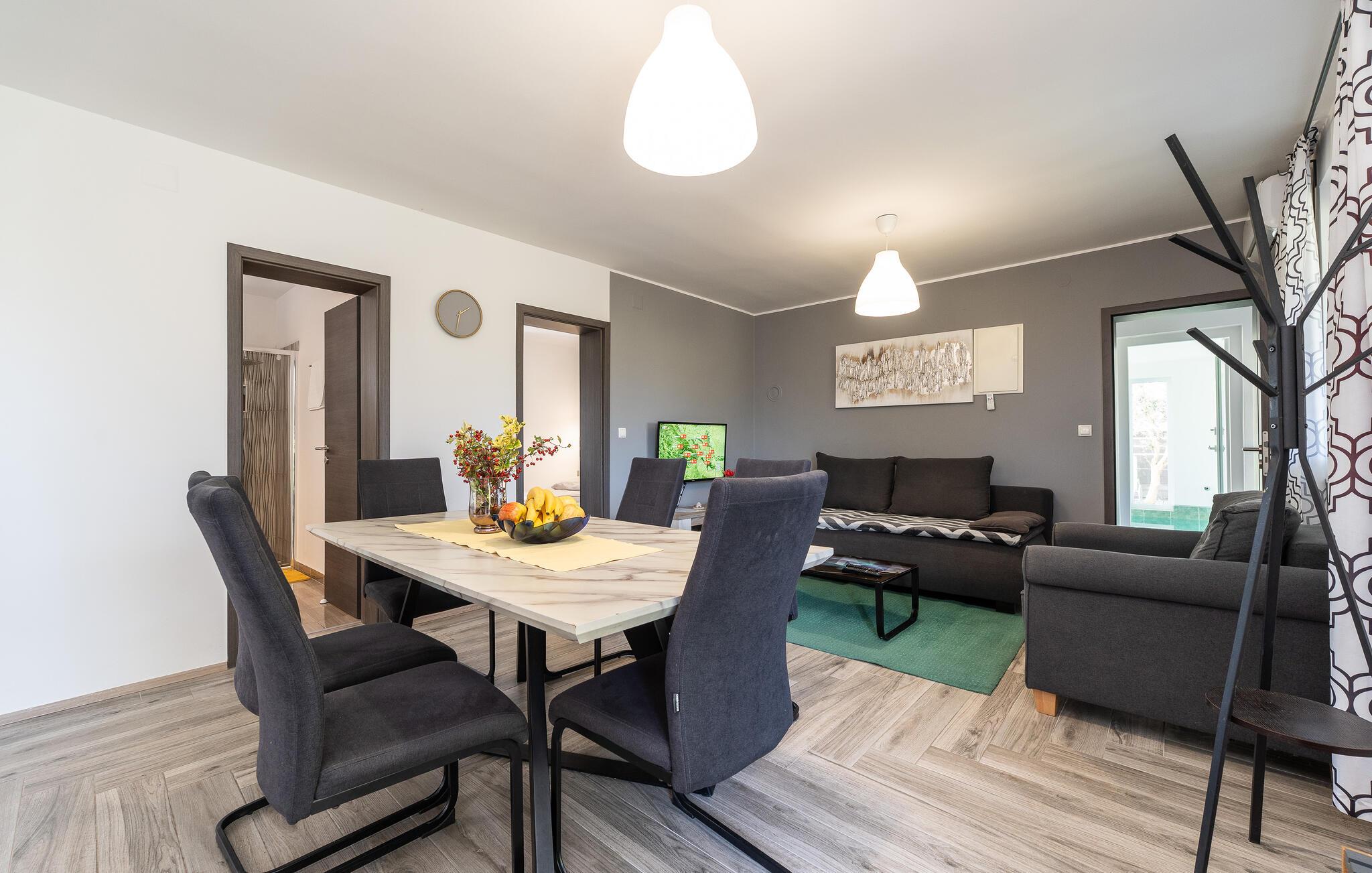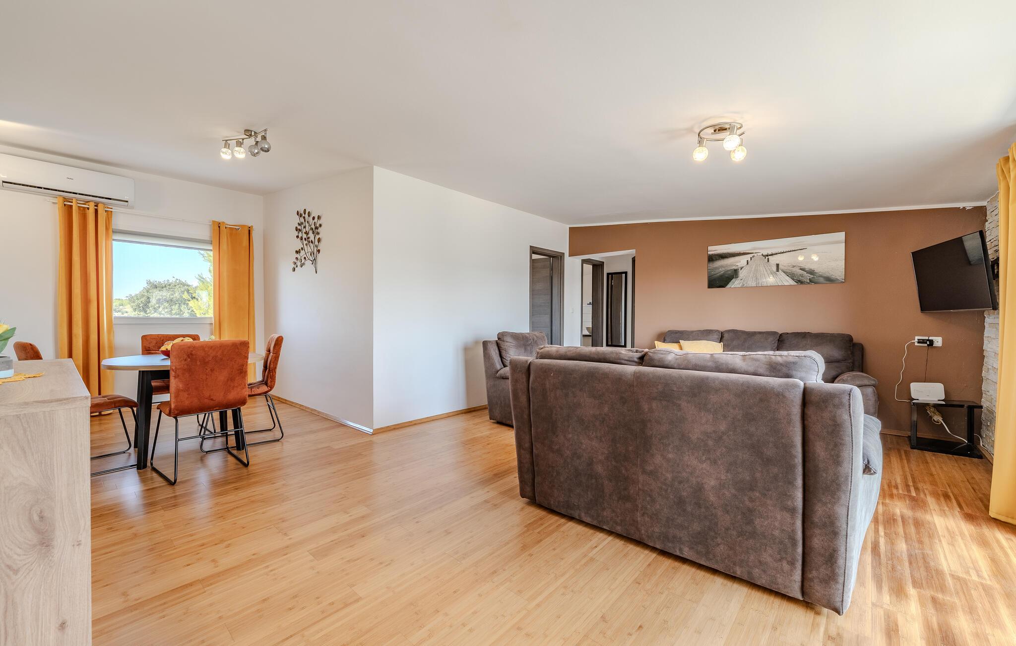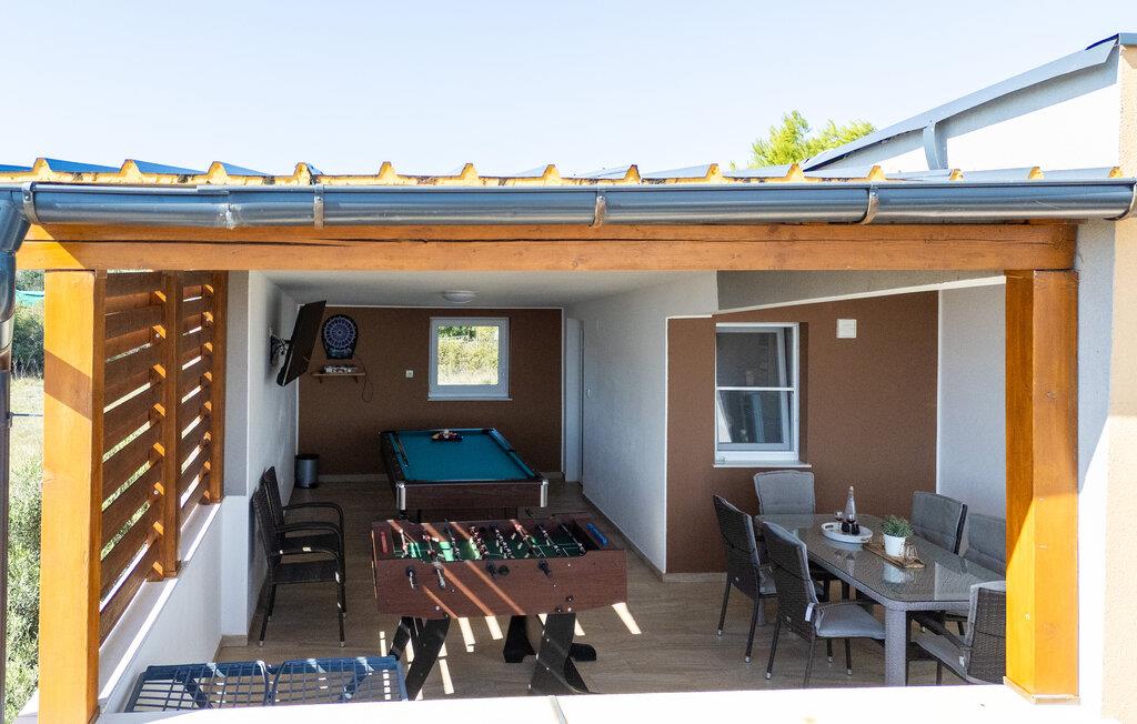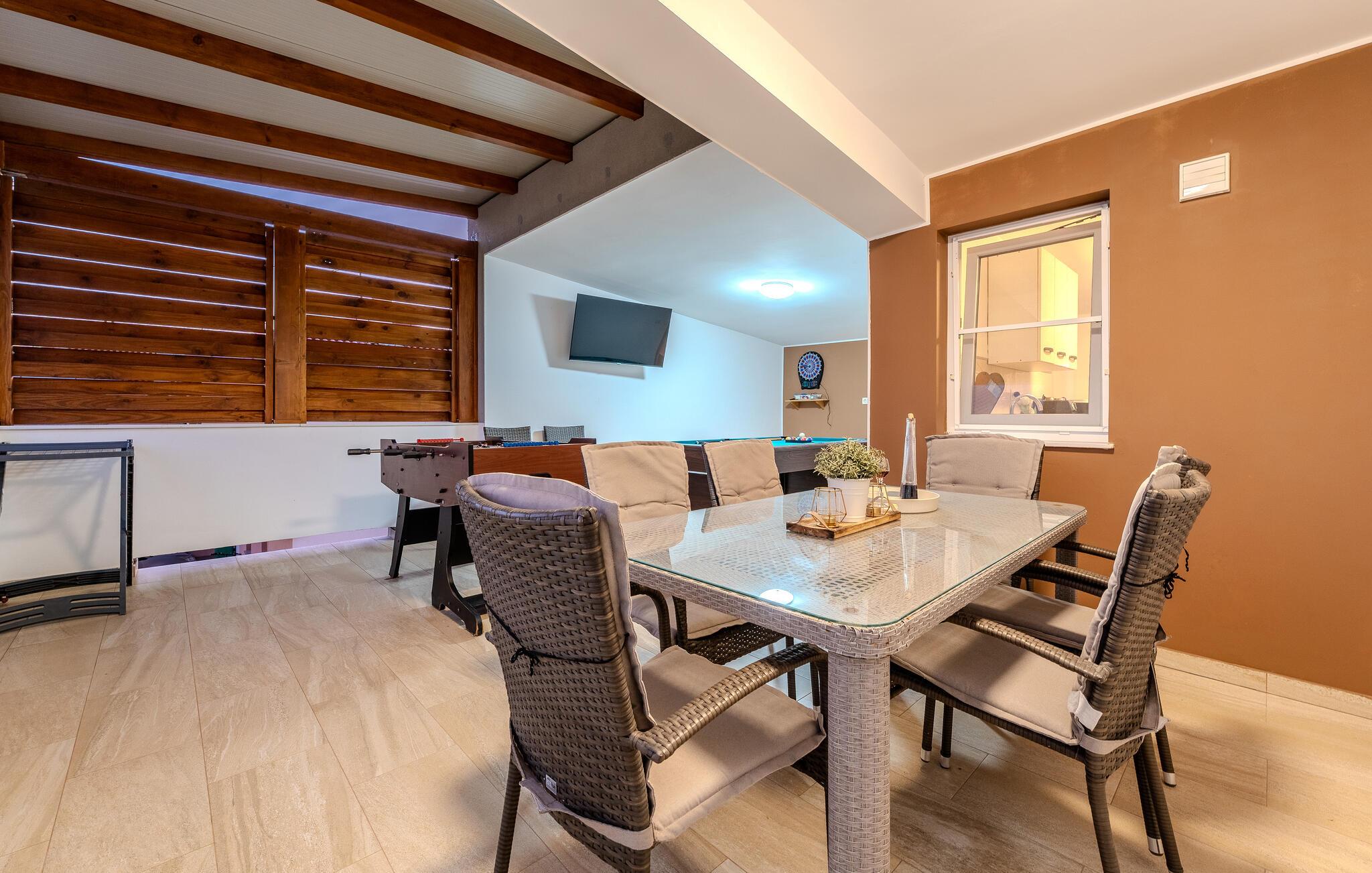 Træd indenfor og lad jer betage af det moderne og elegante interiør i dette rummelige feriehus, hvor der venter adskillige ekstrafunktioner for hele familien. Fremtryl kulinariske lækkerier i det hyggelige køkken, spil billard, dart eller bordtennis, og forkæl jer selv med nogle forkælende øjeblikke i den indendørspool eller sauna. Efter en lang dag kan I hygge jer sammen i sofaen og streame en spændende film, som alle vil nyde.