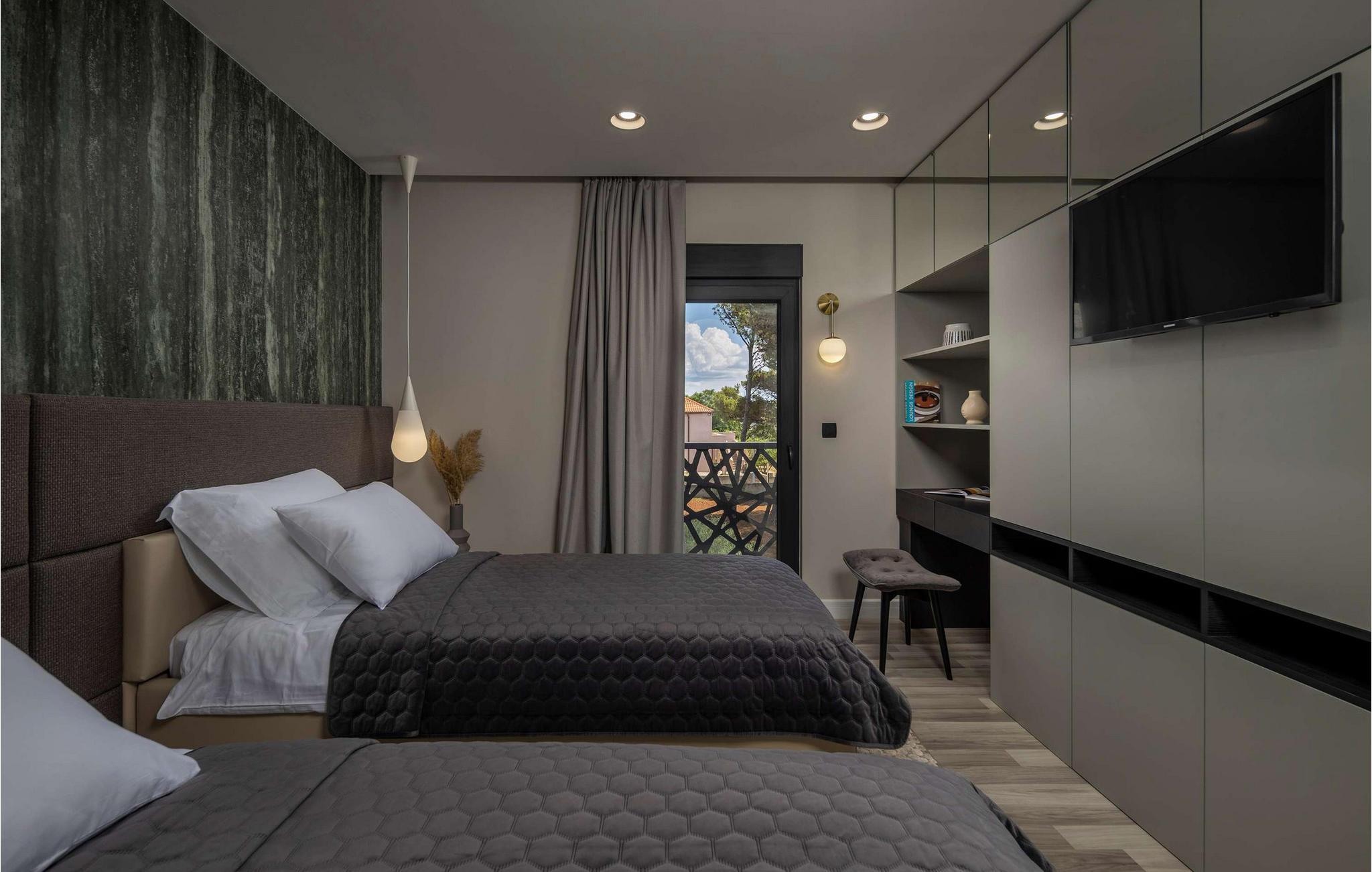 Denne smukke villa har et elegant og komfortabelt interiør og er perfekt til en stilfuld ferie med venner eller familie. Skab kulinariske lækkerier og nyd den behagelige atmosfære, mens I slapper af med måltider i den indbydende spisestue. Brug fitnessrummet til jeres træning, forkæl jer selv med afslappende øjeblikke i spabadet eller saunaen, find sammen til stimulerende samtaler ved pejsen eller nyd jeres PlayStation.