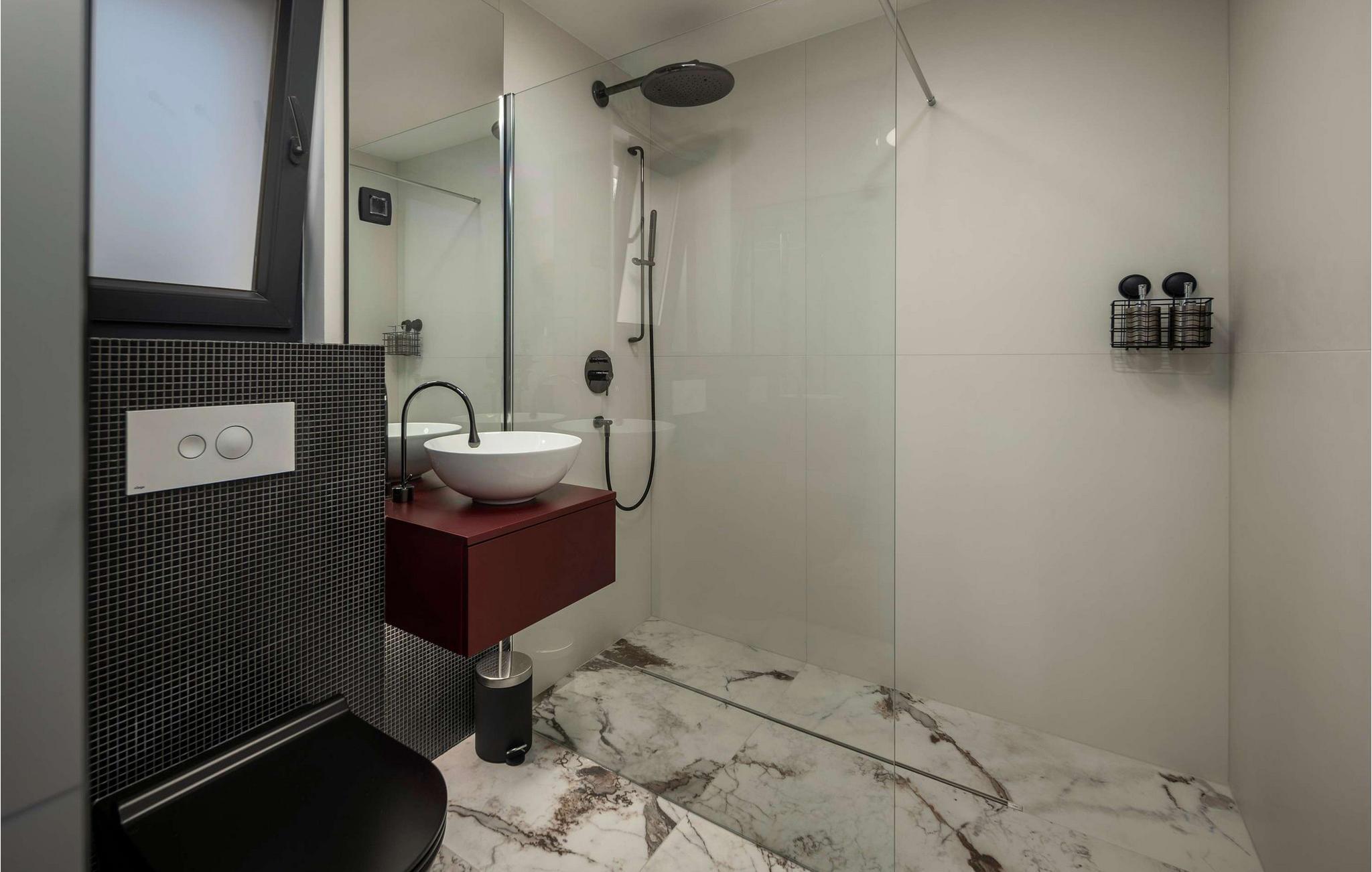 Badeværelse (nr. 1) - WC. Varmt og koldt vand. Bruser