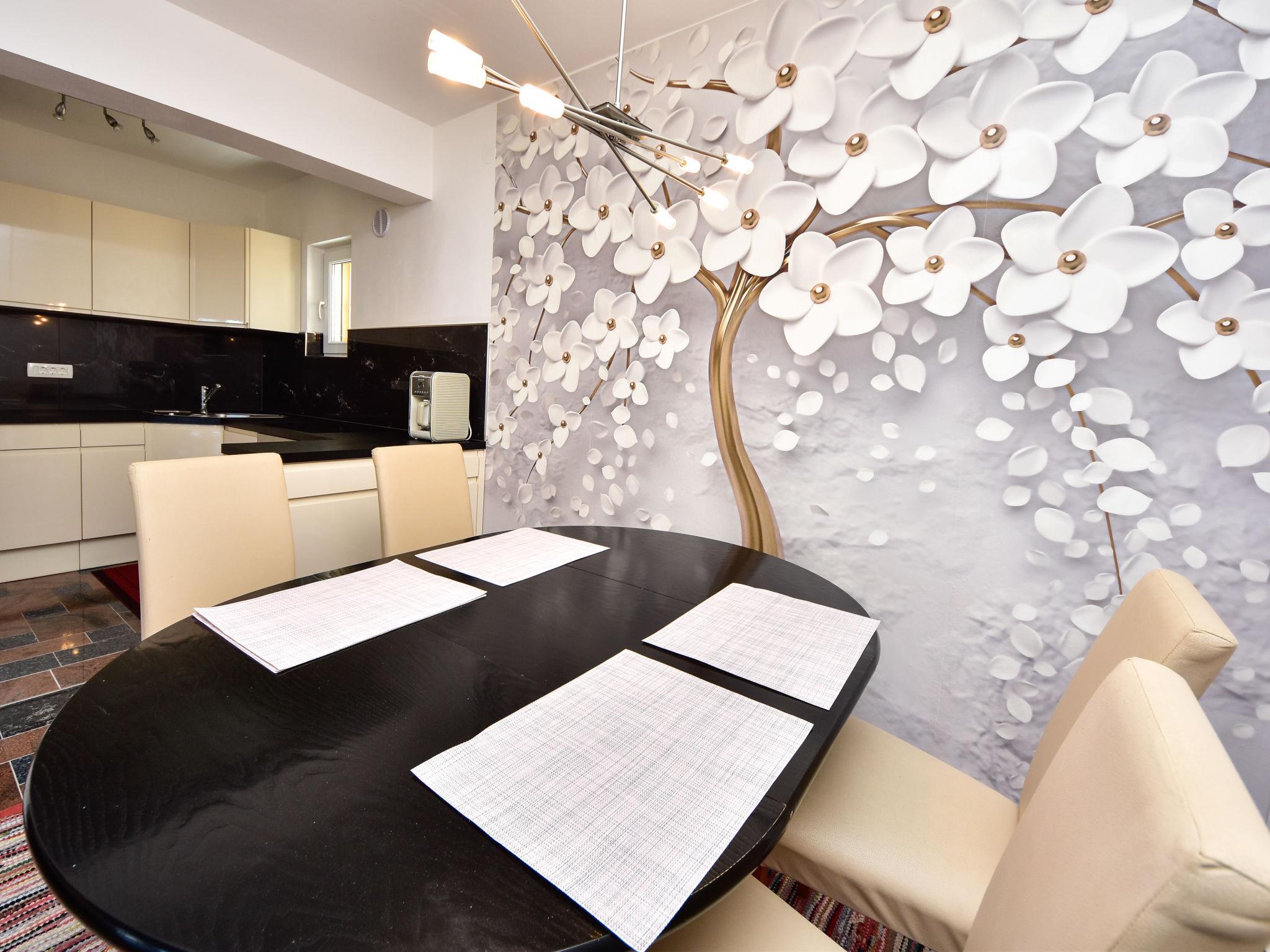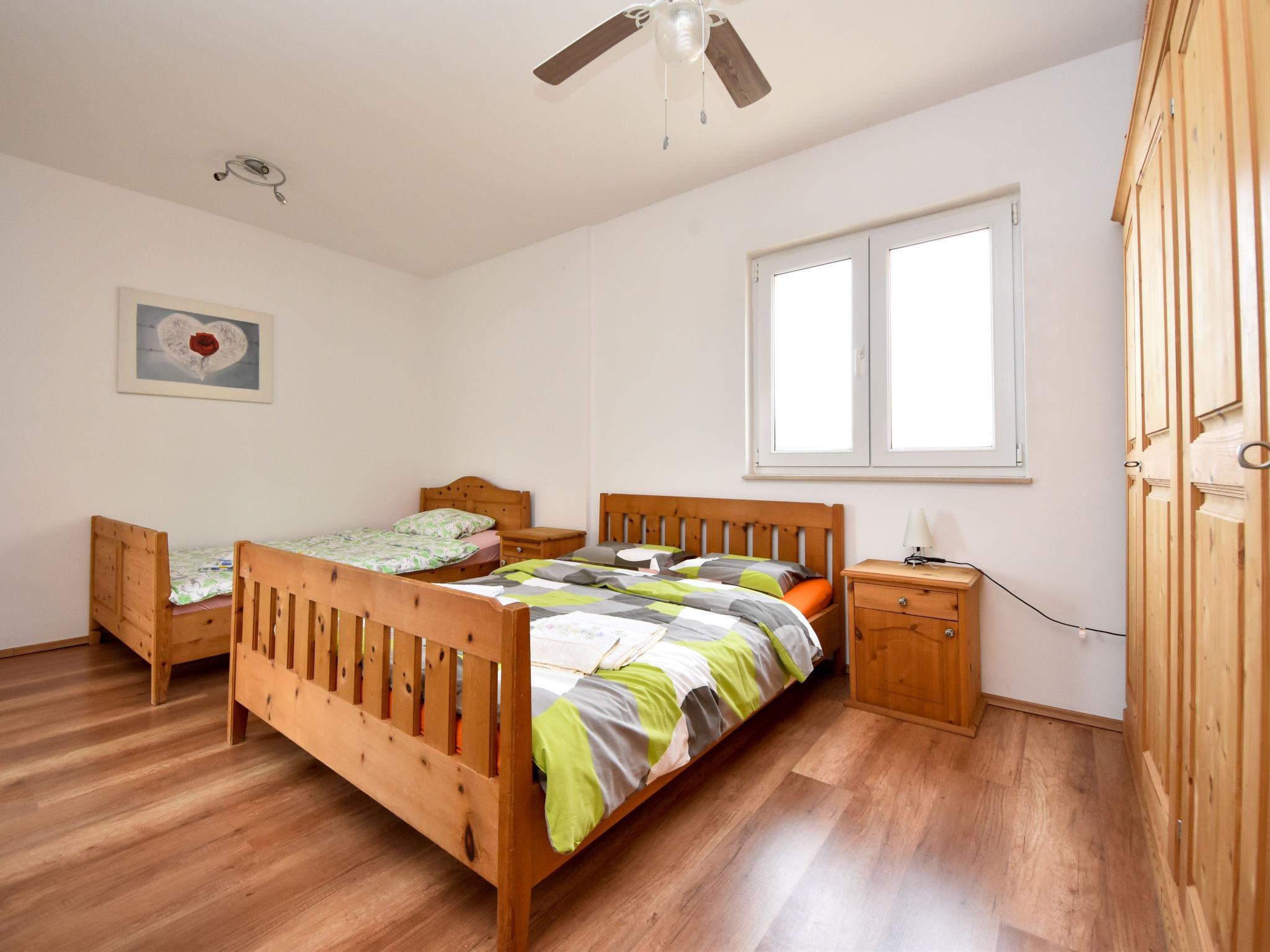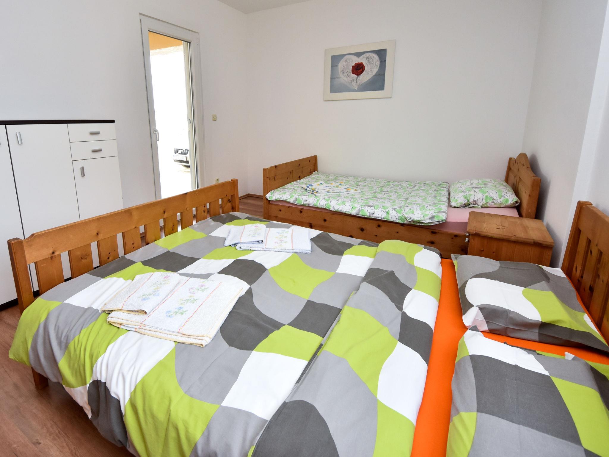 3-room apartment 80 m2, on the ground floor, north-west facing position. Living/dining room 40 m2 with satellite TV (flat screen), air conditioning. Exit to the terrace. 1 room with 1 double bed (2 x 90 cm, length 200 cm). 1 room with 1 bed (120 cm, length 200 cm), 1 french bed (140 cm, length 200 cm). Open kitchen (oven, dishwasher, 4 ceramic glass hob hotplates, freezer, electric coffee machine). Shower/WC. No heating option. Terrace 20 m2, roofed. Terrace furniture. View of the sea. Facilities: hair dryer. Internet (WiFi, free).