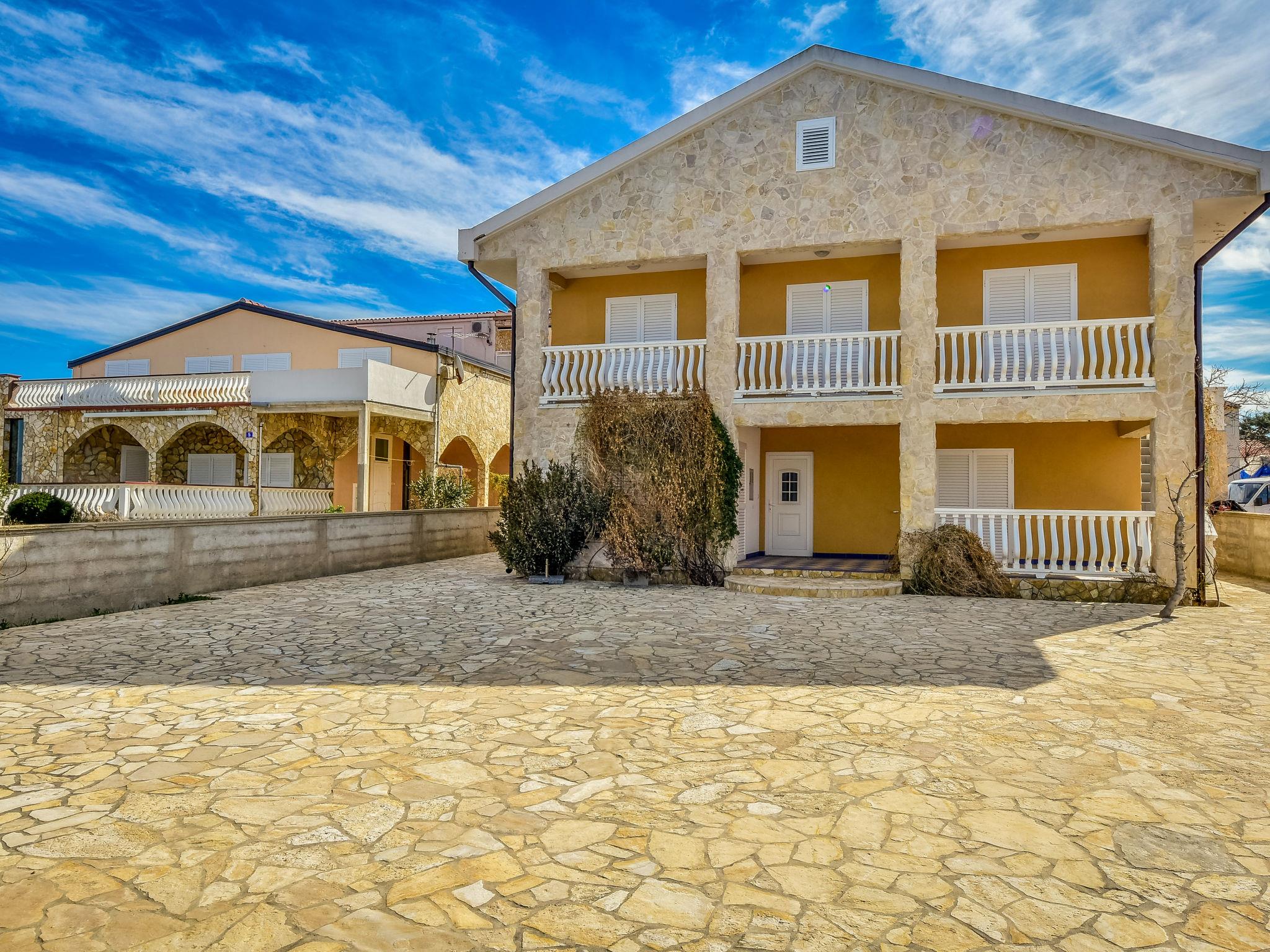 2-family house "Fliri". 2 km from the centre of Vir, in a sunny position, 30 m from the sea, 30 m from the beach, road to cross, located by a road. For shared use: property 200 m2 (fenced). In the house: internet access. Parking at the house. Shop, restaurant 200 m, bus stop 1.9 km, pebble beach 30 m.