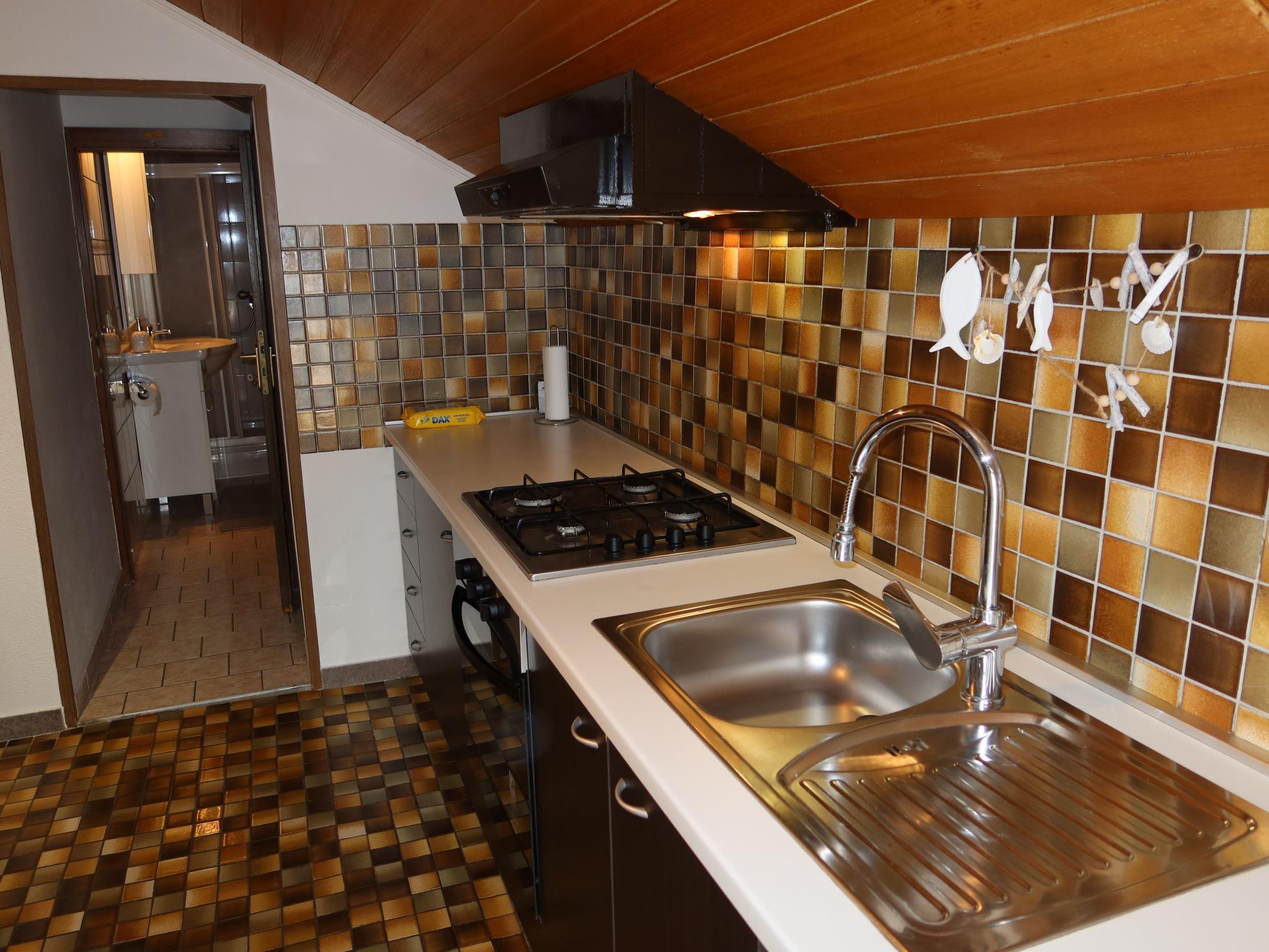 3-room apartment 60 m2, on the top floor, south facing position. Entrance hall with air conditioning. 1 room with sloping ceilings, ceiling height 145 - 220 cm with 1 french bed (160 cm, length 200 cm). 1 room with sloping ceilings, ceiling height 145 - 220 cm with 1 french bed (160 cm, length 200 cm), satellite TV (flat screen). 1 room with 1 french bed (160 cm, length 200 cm), satellite TV. Dining room 10 m2, with sloping ceilings, ceiling height 145 - 220 cm. With sloping ceilings, open kitchen (oven, dishwasher, 4 gas rings, kettle, microwave, freezer, electric coffee machine), ceiling height 145 - 220 cm. Shower/WC. Air-conditioning (extra). No heating option. Terrace 12 m2 partly roofed. Terrace furniture. Partial view of the sea. Facilities: Internet (WiFi, free).