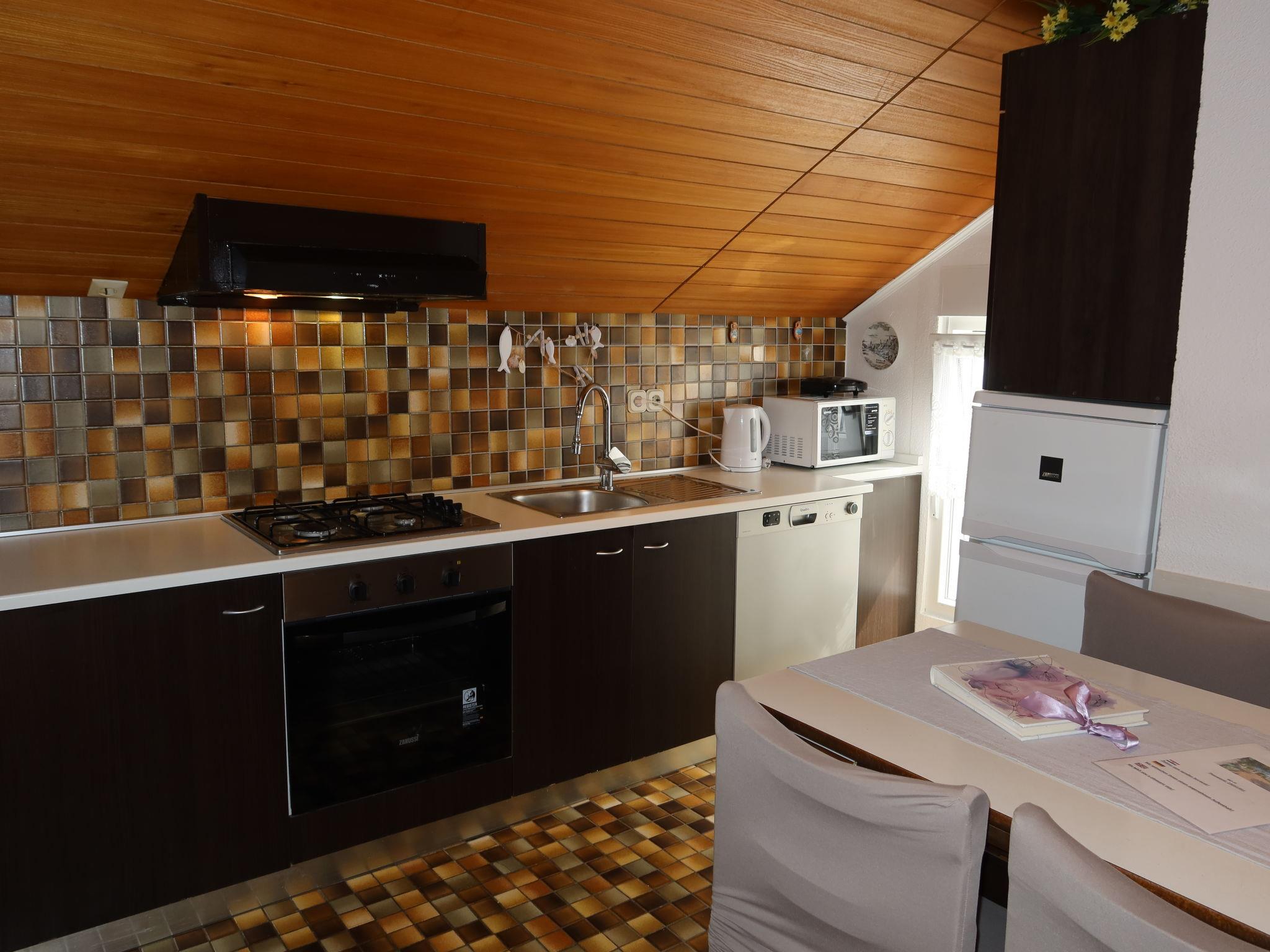 Beautiful 3-family house "Mira". 800 m from the centre of Vir, in a quiet, sunny position, 40 m from the sea, 40 m from the beach, in a cul-de-sac. For shared use: property 370 m2 (fenced), plants. Barbecue. In the house: internet access. Parking at 5 m. Shop 650 m, restaurant 60 m, bus stop 1.7 km, pebble beach 40 m.