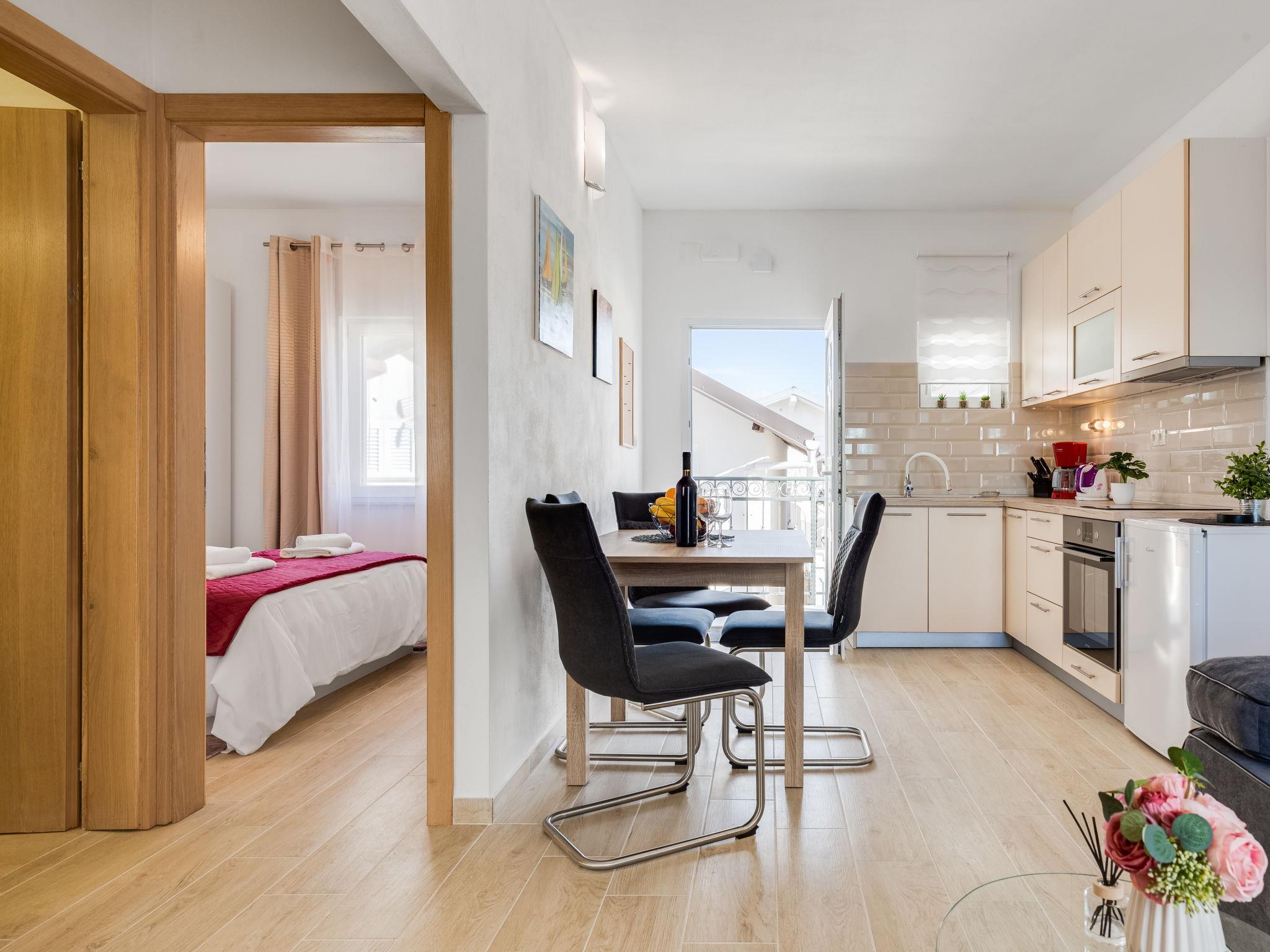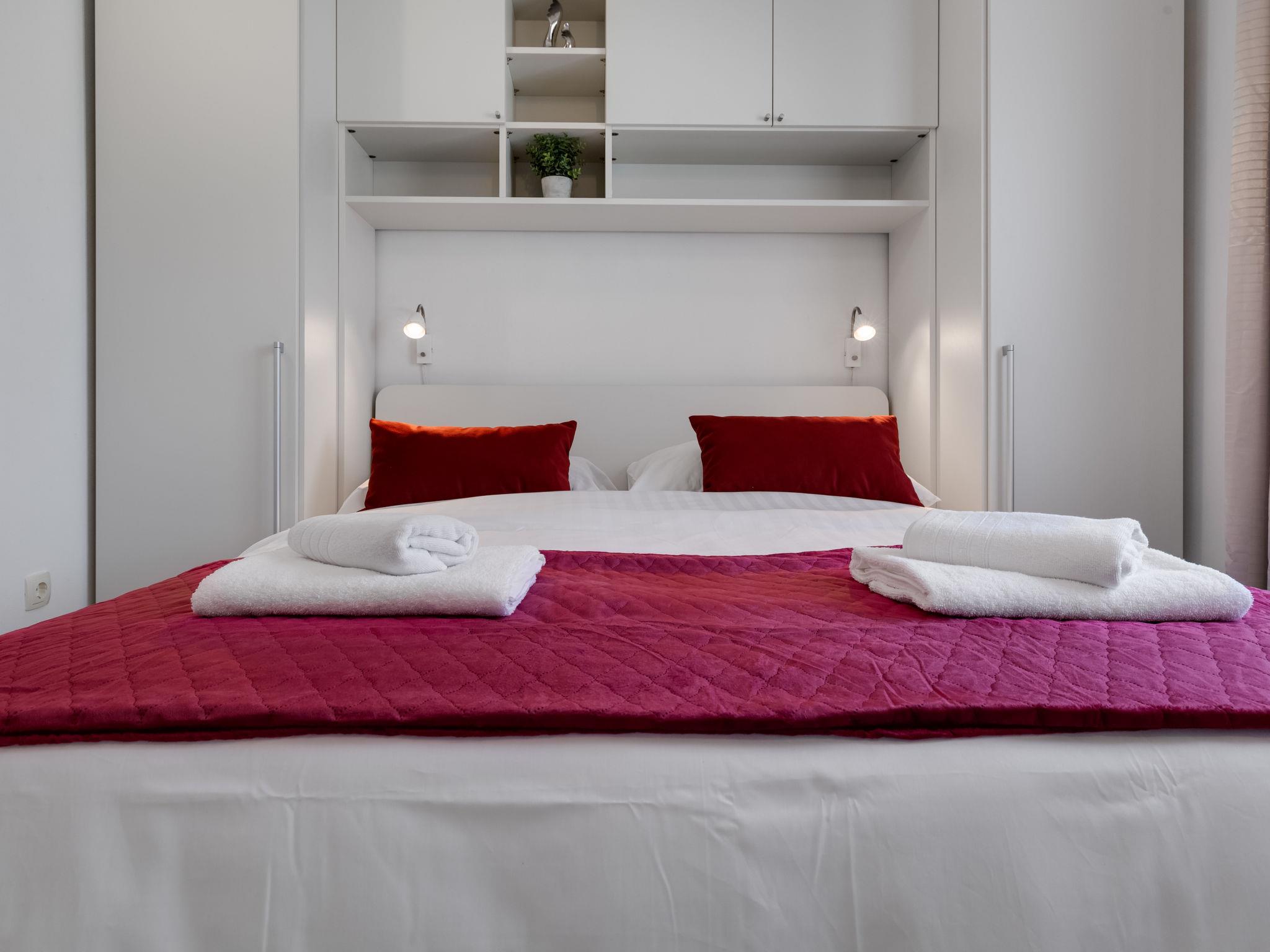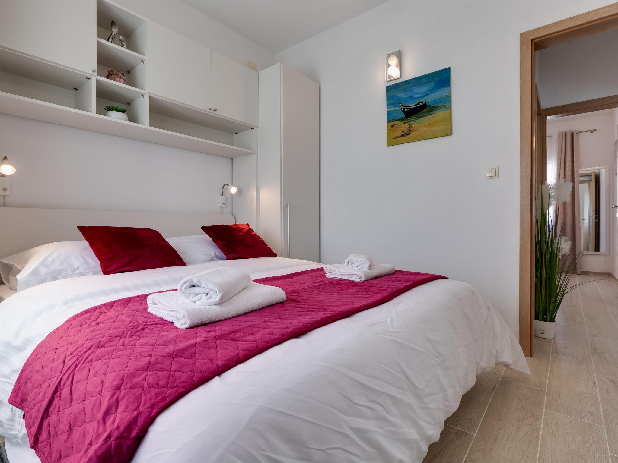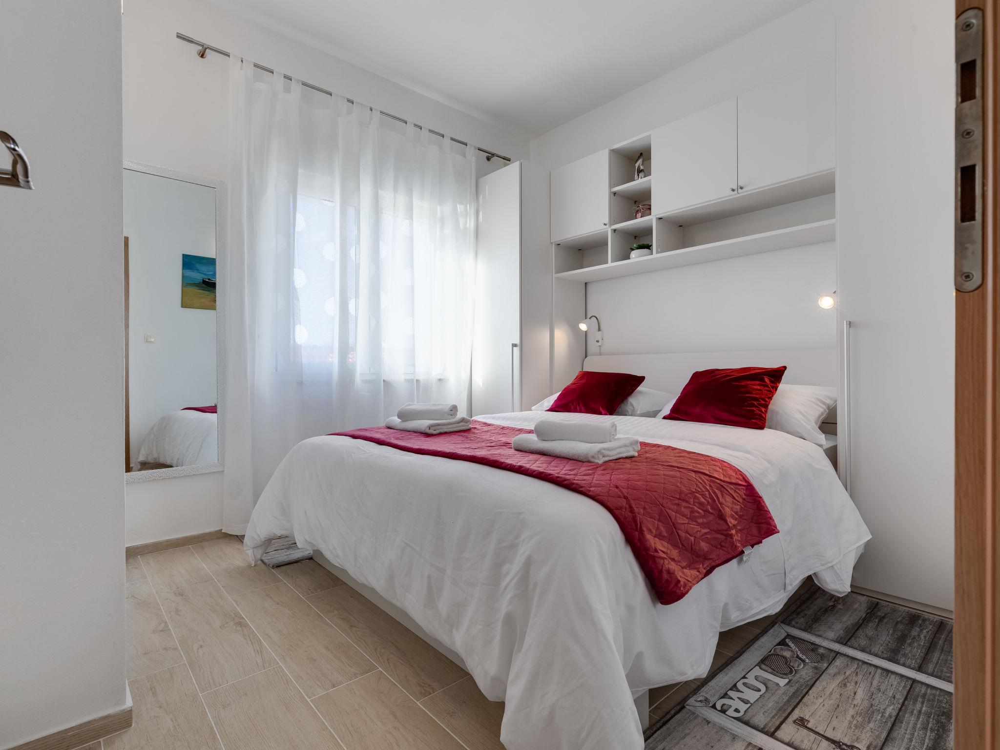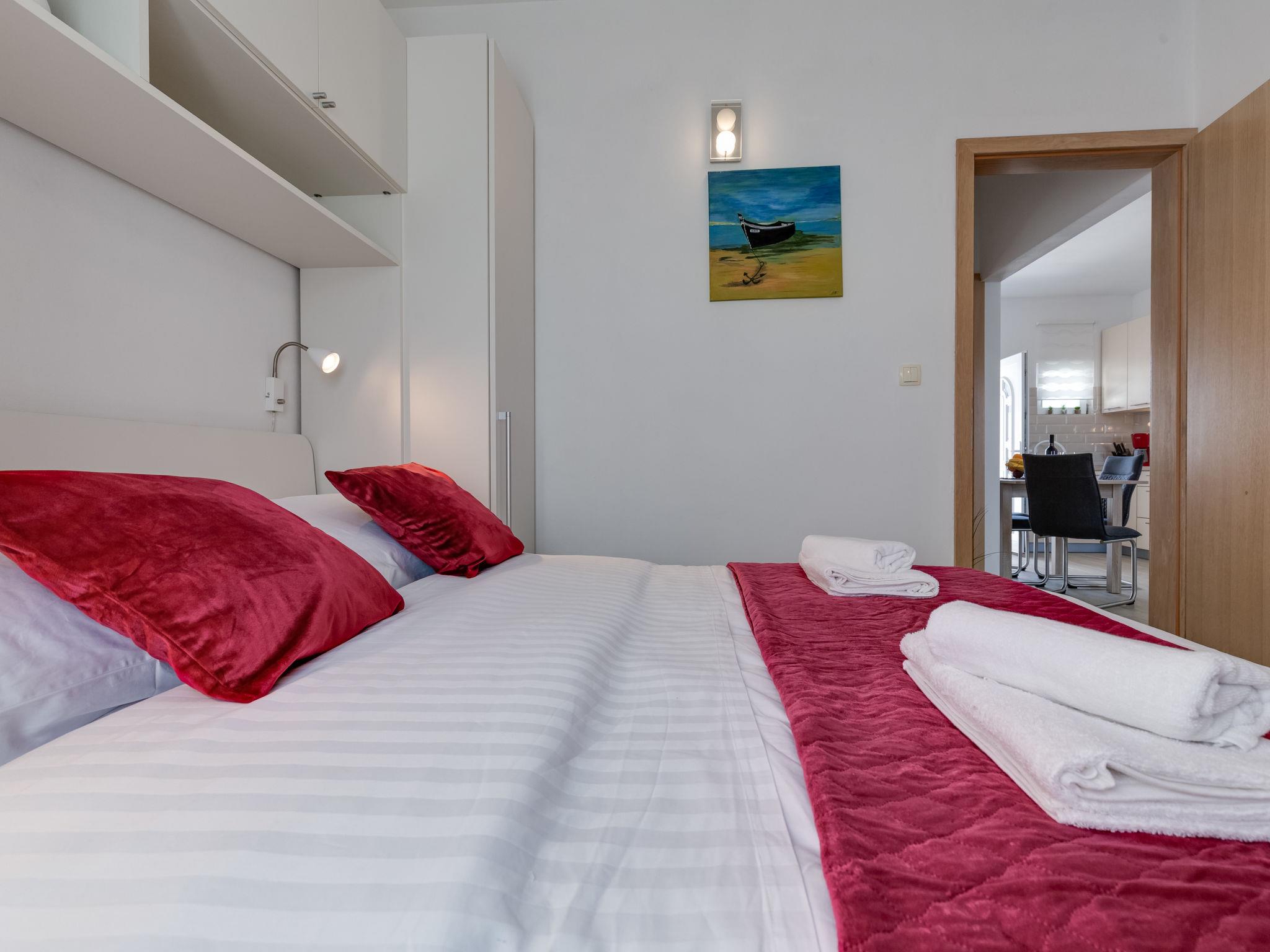3-room apartment 41 m2 on 1st floor. Living/dining room with 1 sofabed (145 cm, length 200 cm), satellite TV (flat screen), air conditioning. Exit to the balcony. 2 rooms, each room with 1 double bed (2 x 80 cm, length 200 cm). Open kitchen (2 ceramic glass hob hotplates, toaster, kettle, electric coffee machine). Shower/WC. No heating option. Balcony 6 m2. Balcony furniture. Side view of the sea. Facilities: washing machine, hair dryer. Internet (WiFi, free).