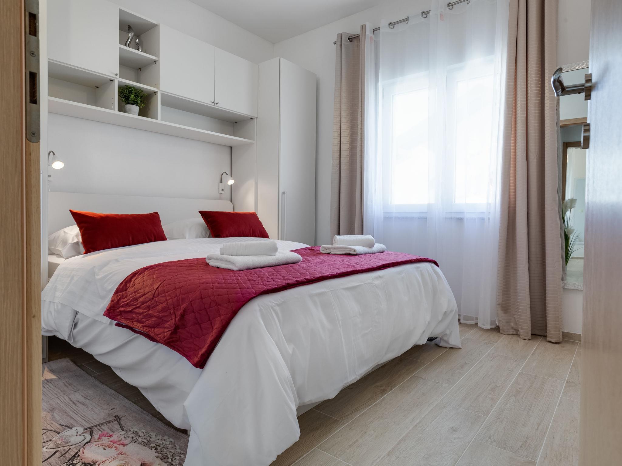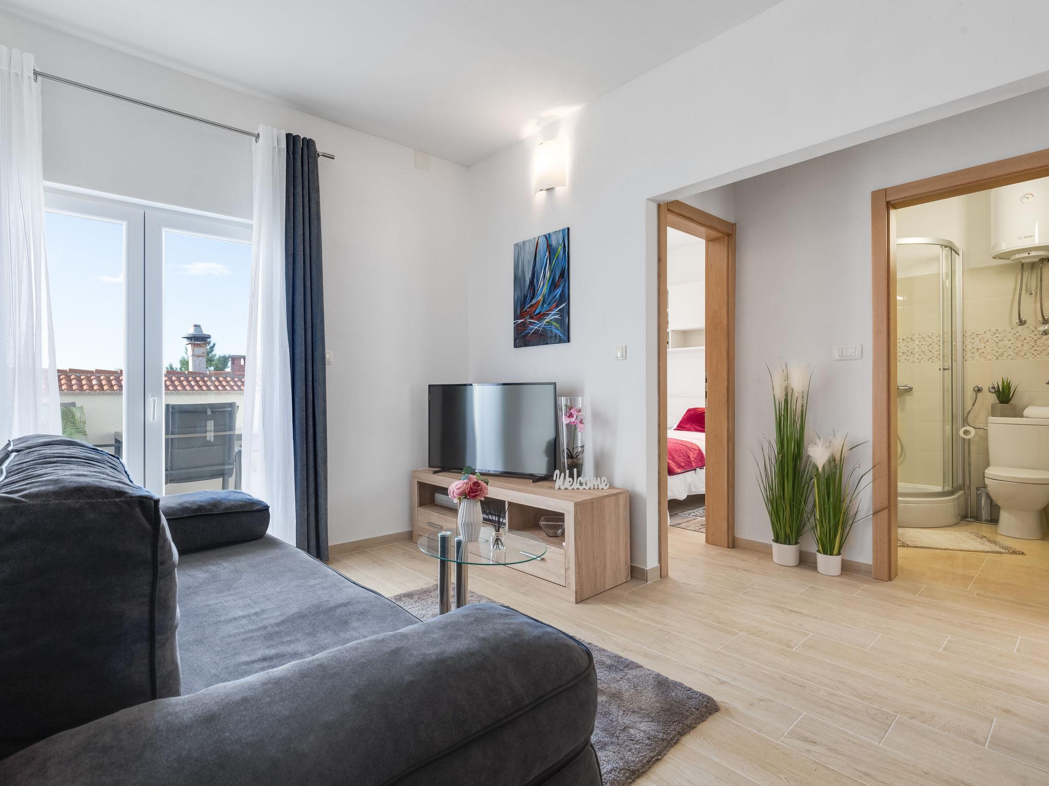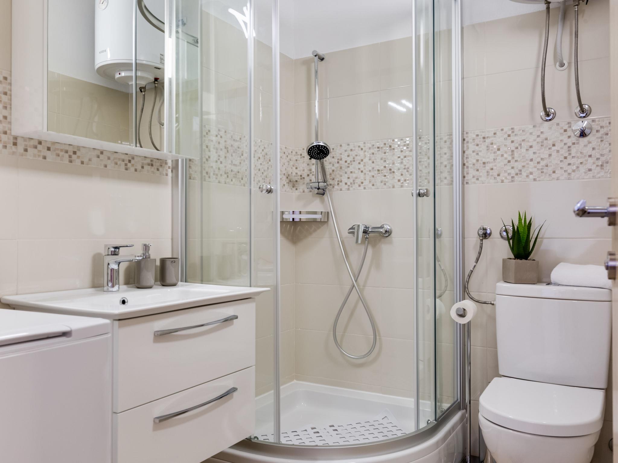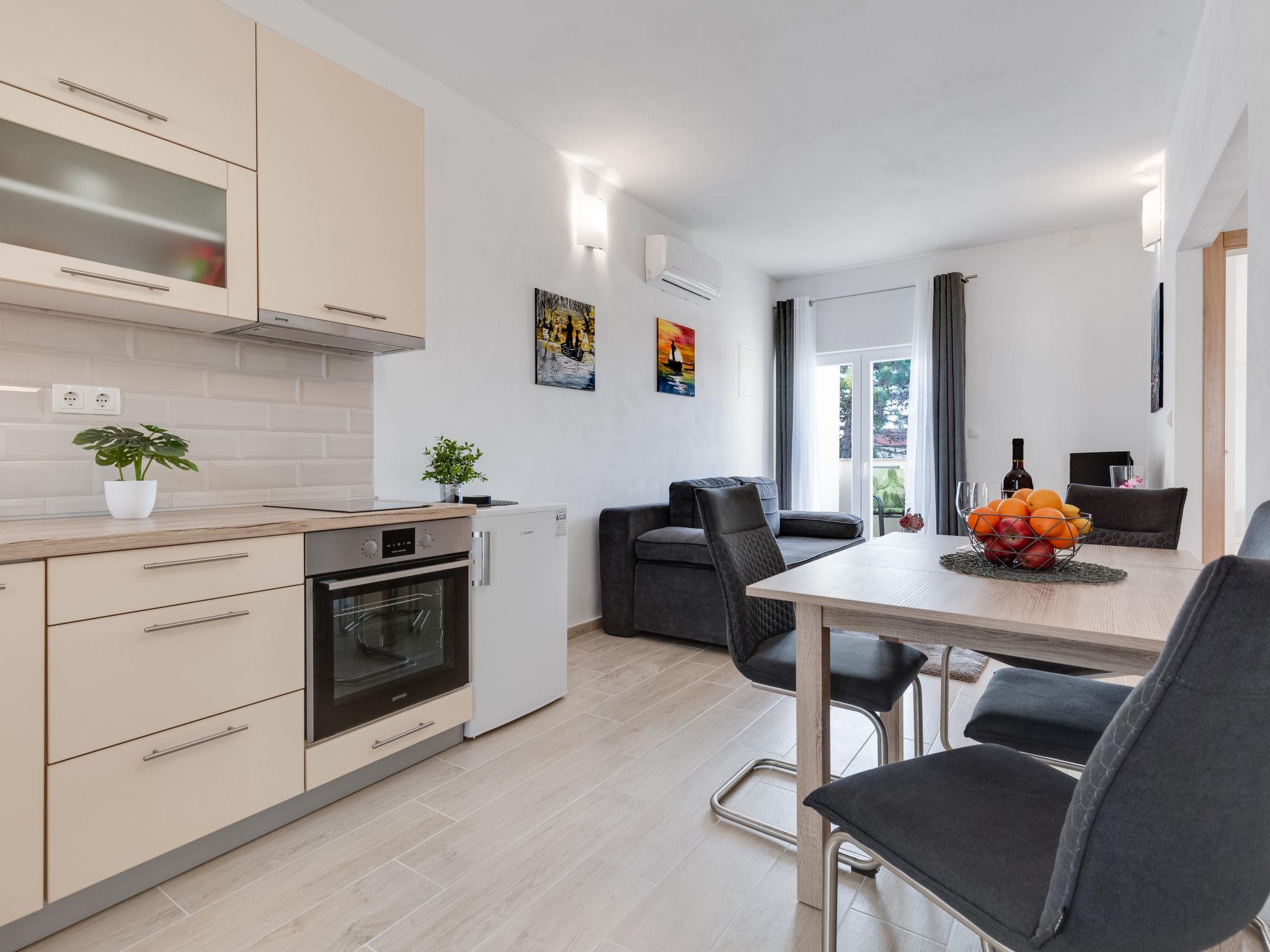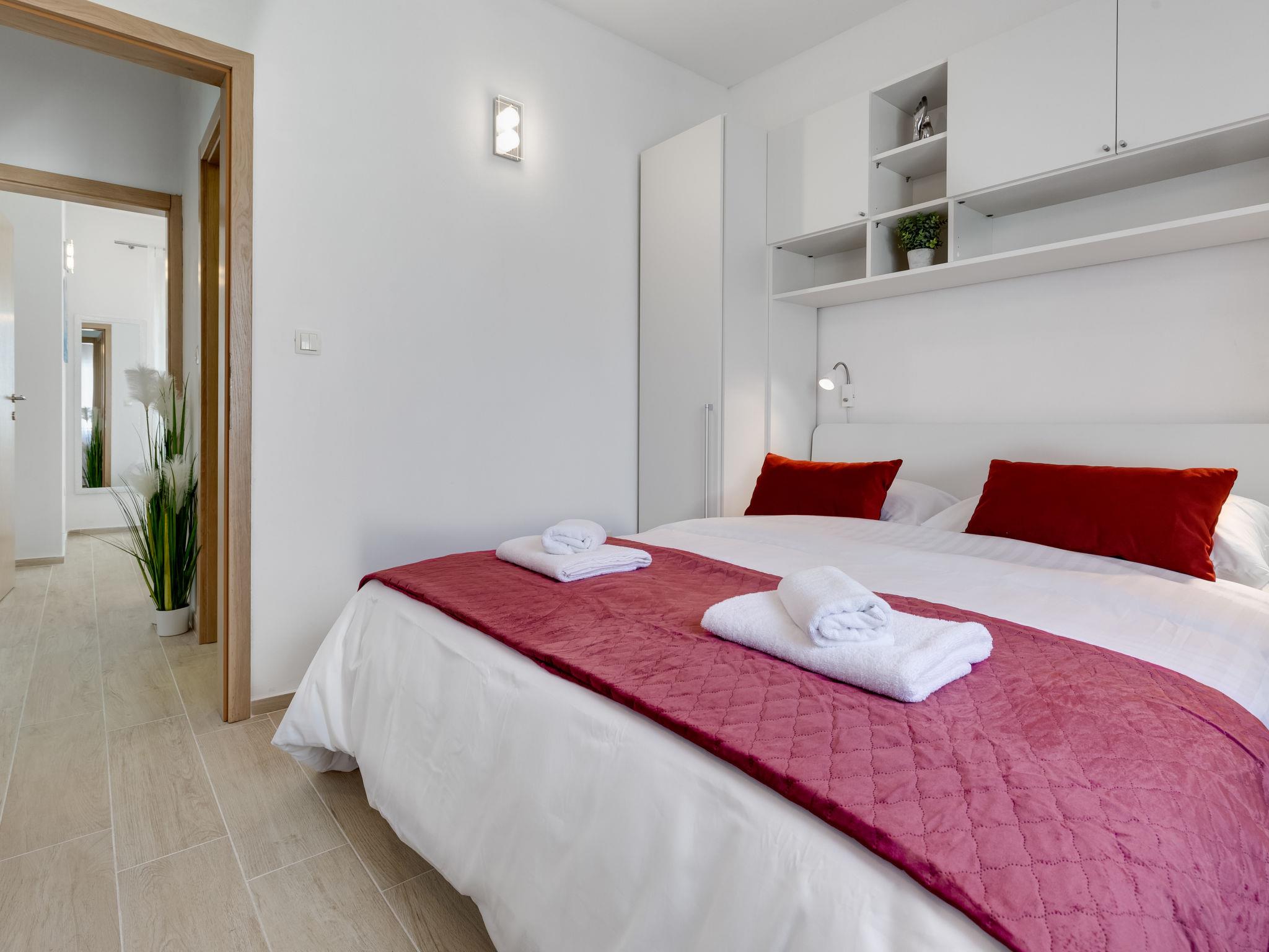 3-room apartment 41 m2 on 1st floor. Living/dining room with 1 sofabed (145 cm, length 200 cm), satellite TV (flat screen), air conditioning. Exit to the balcony. 2 rooms, each room with 1 double bed (2 x 80 cm, length 200 cm). Open kitchen (2 ceramic glass hob hotplates, toaster, kettle, electric coffee machine). Shower/WC. No heating option. Balcony 6 m2. Balcony furniture. Side view of the sea. Facilities: washing machine, hair dryer. Internet (WiFi, free).