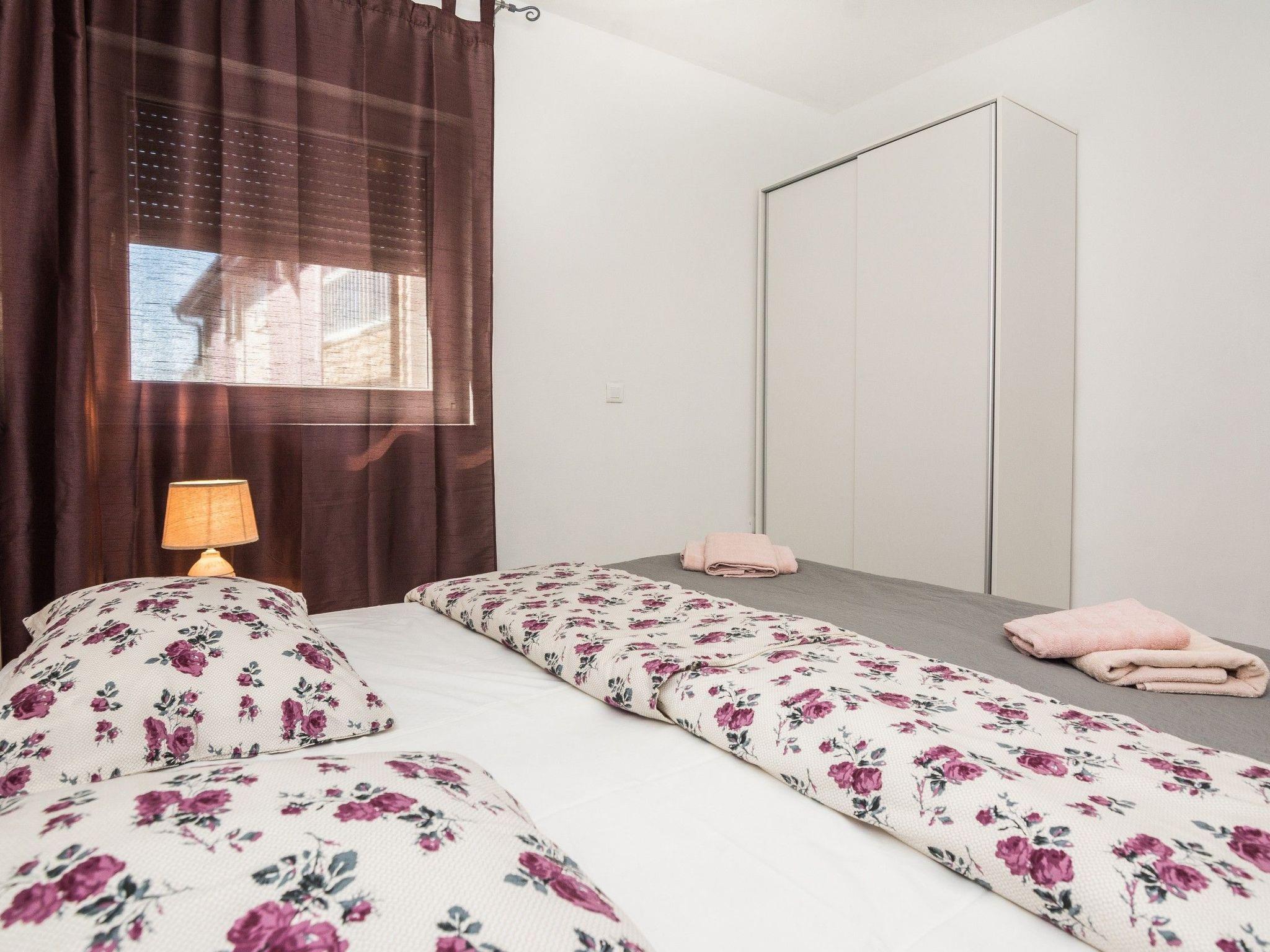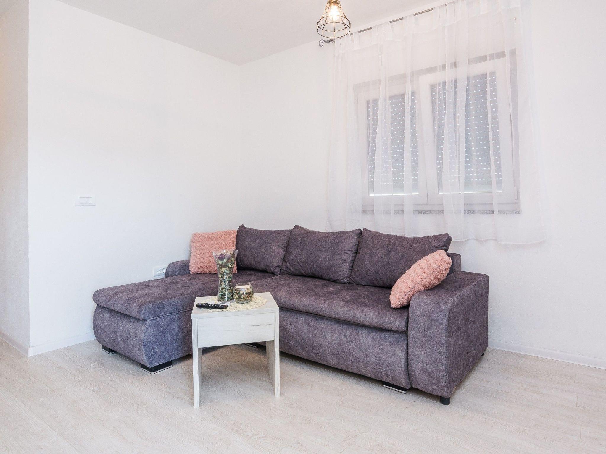 The apartment distanced just 600m from the beach Slatina on the first floor of the house is divided into a dining and living area with fully equipped kitchen, a bedroom with a double bed, one bedroom with one single bed, a bathroom with a shower and 30 m² and a roofed and furnished balcony. In the living room there is a sofa bed for two more persons. Parking on the property, air conditioning, satellite TV, Wi-Fi Internet and washing machine are among the other features of this apartment. Baby cot and highchair available upon request and free of charge. Pets welcome upon request and free of charge also! Restaurants and the center of the island of Vir is just 100 m distanced, while the shop is 50 m distanced.