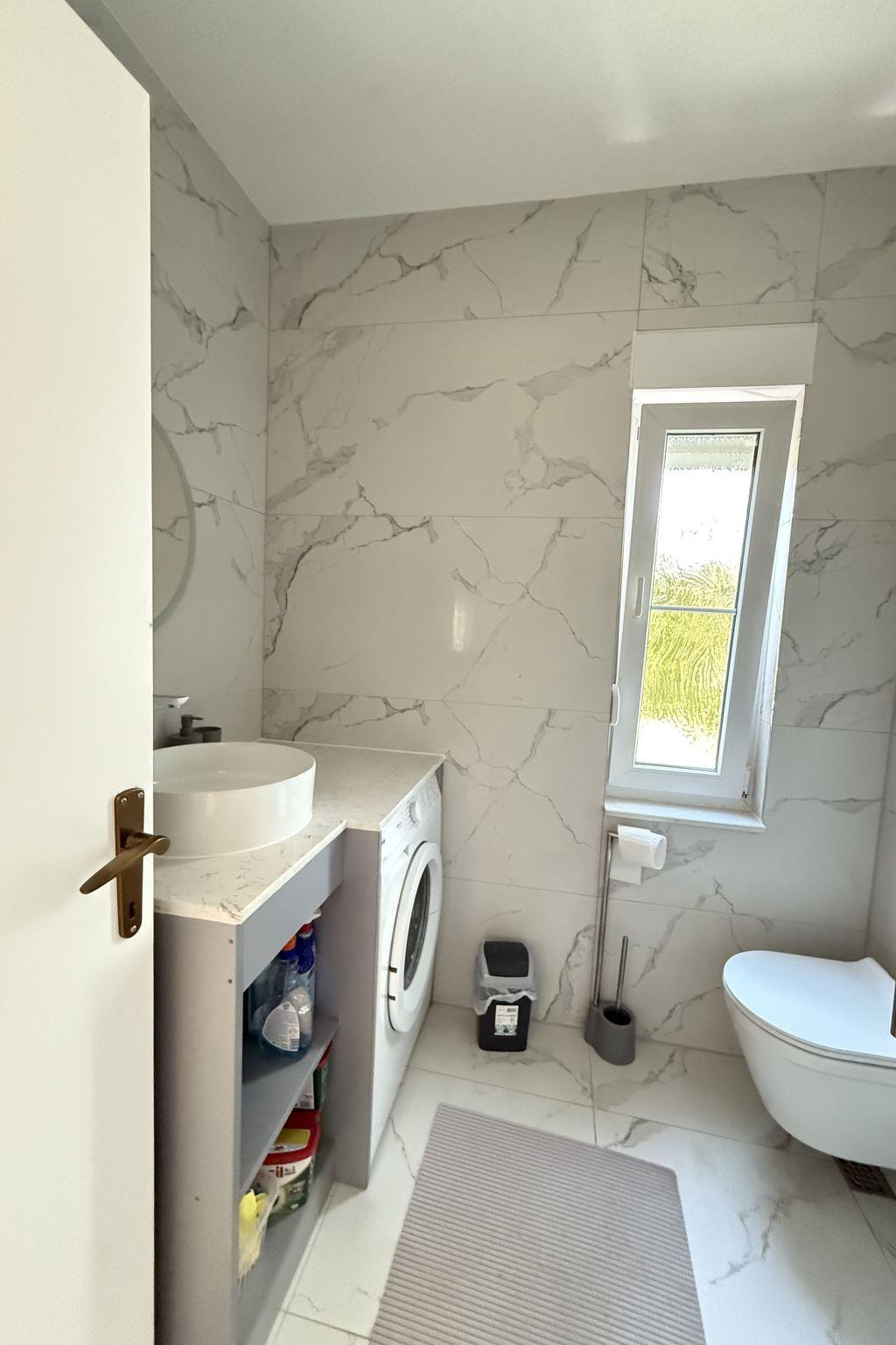 Apartment 1 (ground floor) is suitable for up to 5 people. It consists of two bedrooms – one with a double bed, and the other with a double bed and a single bed. The apartment includes a bathroom with shower and washing machine, as well as a fully equipped kitchen connected to the living room.