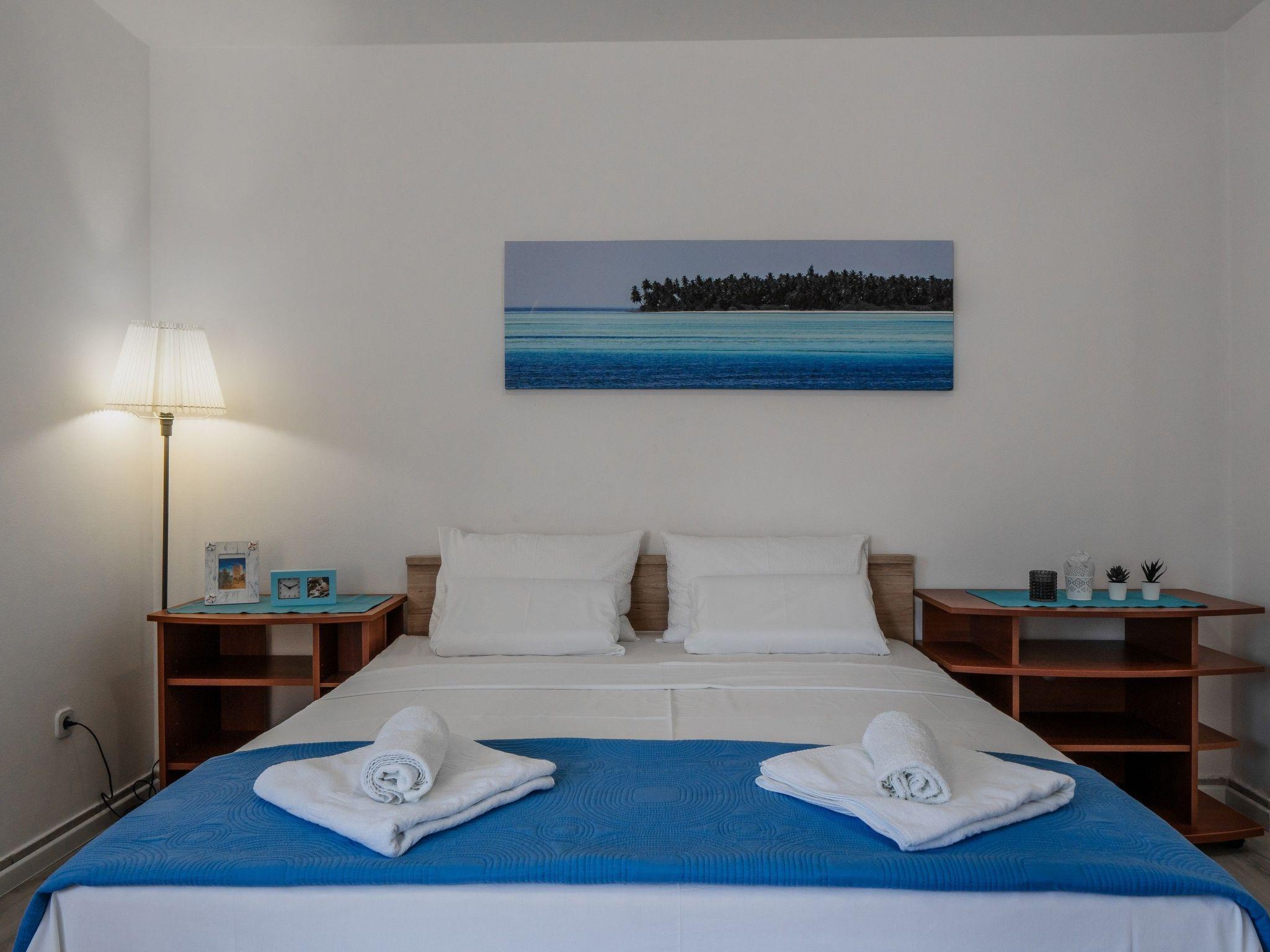 Inside, the 50 m² apartment is thoughtfully laid out to optimize comfort and usability. Occupying the first floor, it features a cozy combination of living and dining areas alongside a well-equipped kitchen. The bedroom is furnished with a comfortable double bed, ensuring restful nights, while an additional double bed in the living room accommodates two more guests. Moreover, the accommodation includes a pristine bathroom equipped with a shower. Amenities such as partial air conditioning, television, and complimentary wireless Internet access enhance your stay, making it as comfortable as possible.