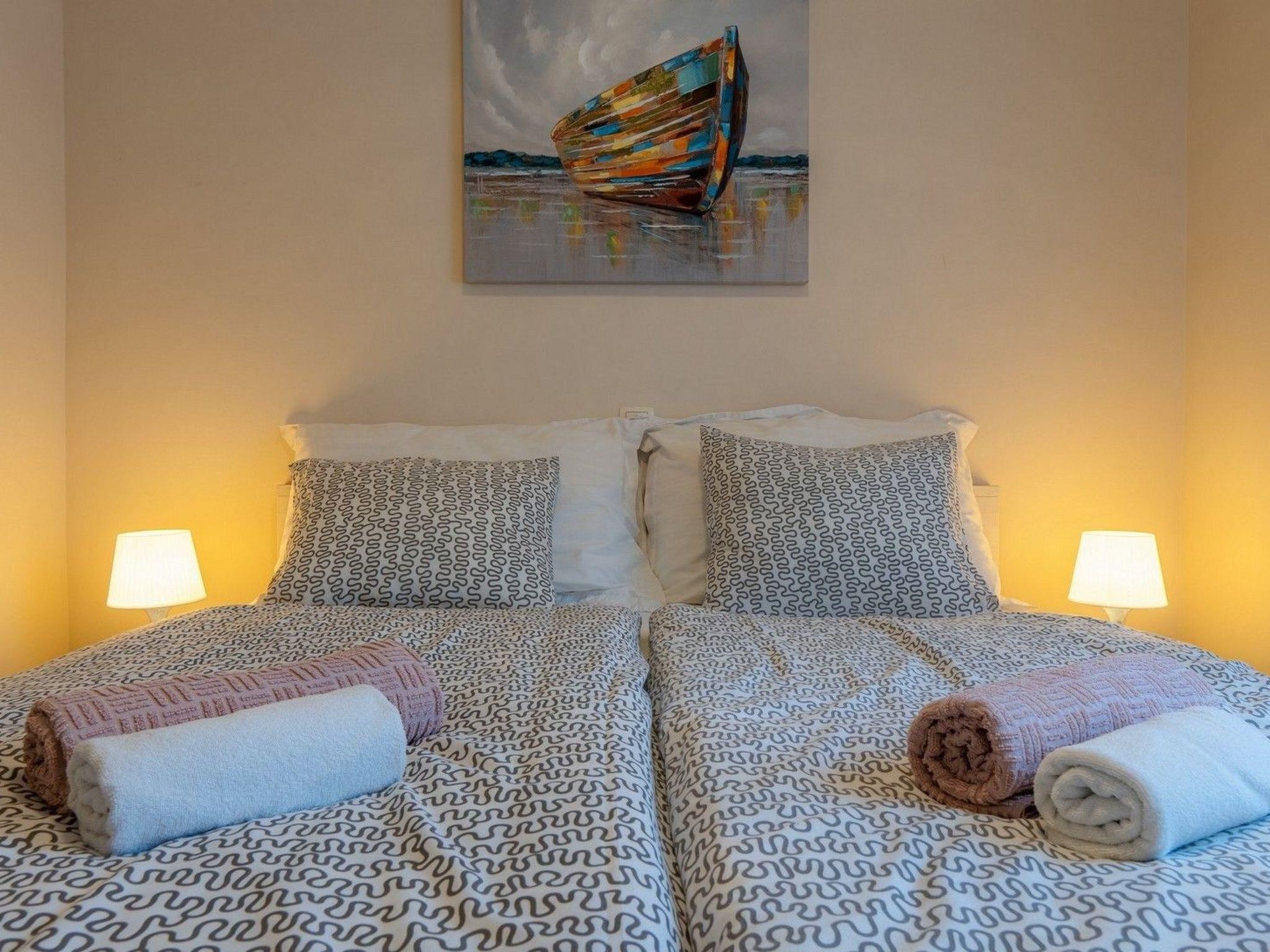 Inside, the apartment spans 60 m² and is thoughtfully equipped to meet all your needs. It features a cozy living room where guests can unwind, complemented by the convenience of a fully equipped kitchen, ensuring the preparation of meals is effortless. Two inviting bedrooms, each with a double bed, promise restful nights of sleep. The bathroom is outfitted with a shower, catering to your essential needs. Furthermore, the apartment boasts amenities such as partial air conditioning, wireless internet access, and a TV, all included without additional charges to enhance your stay.