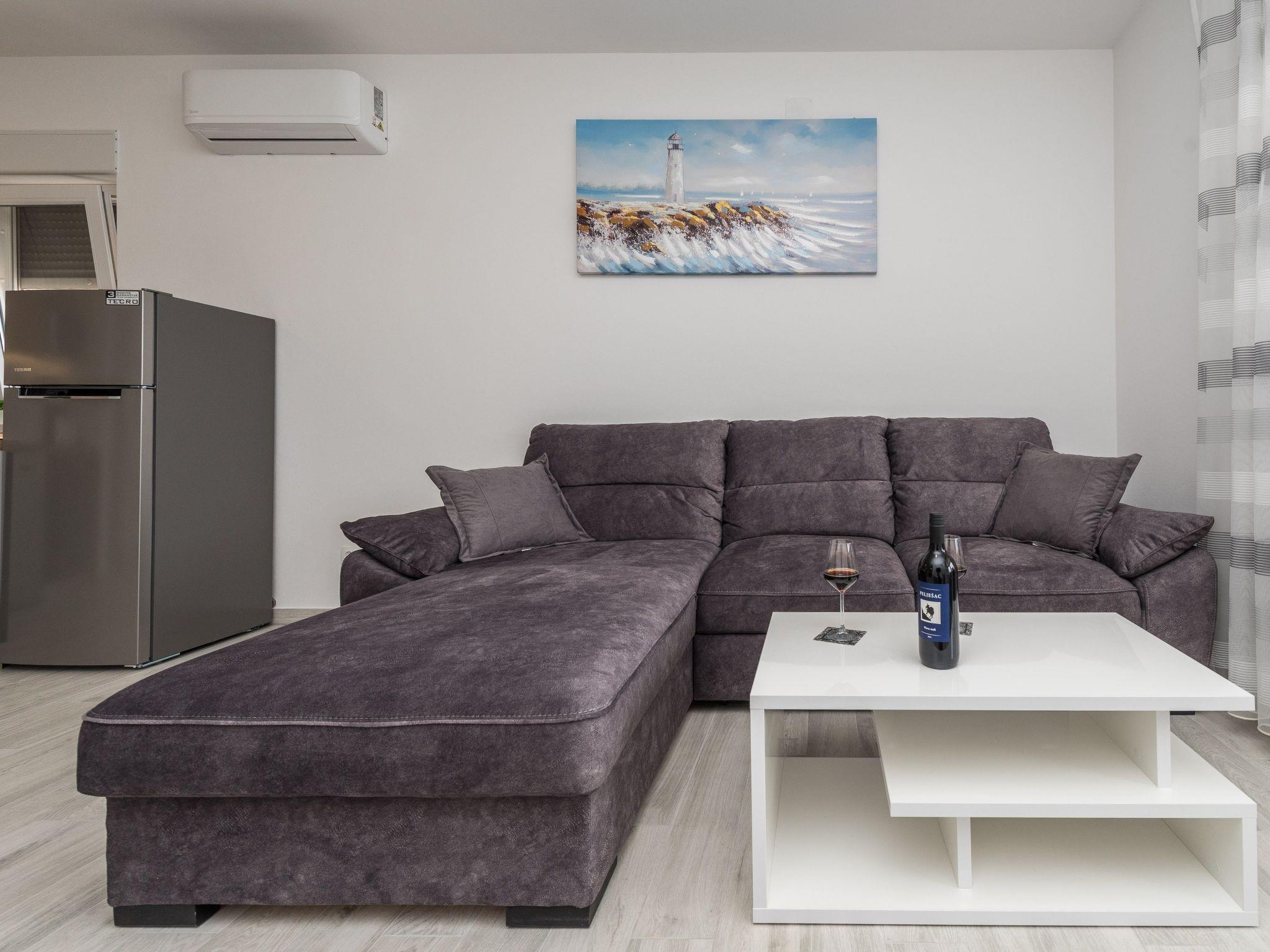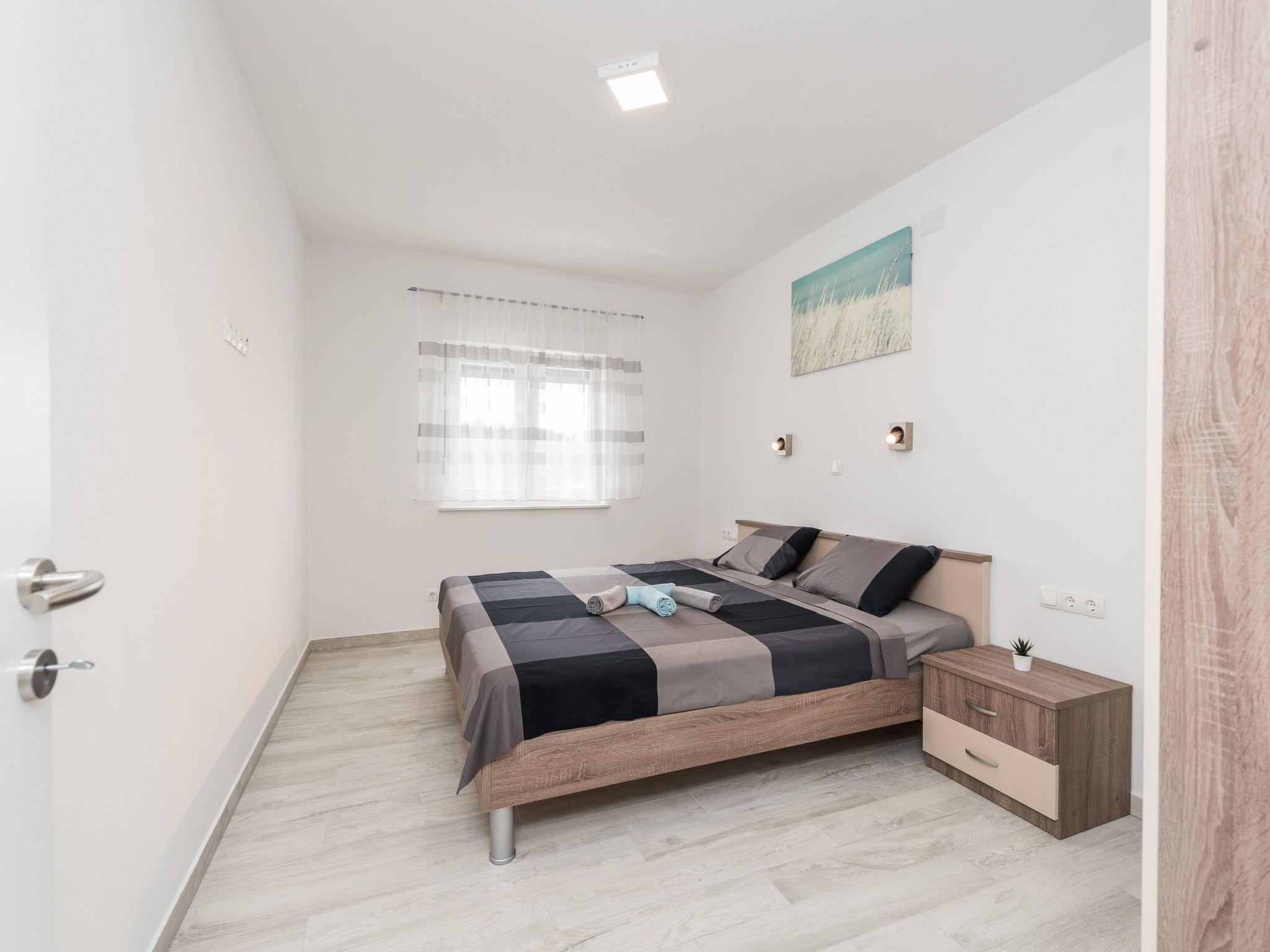 This modern apartment located in a quiet area called Radovanjica, just 150m from a pebble beach, can accommodate up to 6 persons. The 62m2 apartment on the first floor of the house is divided into two bedrooms (one with a double bed and one with two single beds), a bathroom with shower and a living and dining room with kitchen. In the living room there is a sofa bed for two more persons. A well-equipped kitchen with dishwasher and oven, air conditioning, satellite TV, wireless Internet access, washing machine, baby cot and highchair are among the other features. Living room opens onto an 8 m² roofed and furnished balcony with partial sea view. Barbecue and parking in the courtyard (200 m²) available. Restaurants, shops, and the center of the island can be reached within a few minutes' walk.