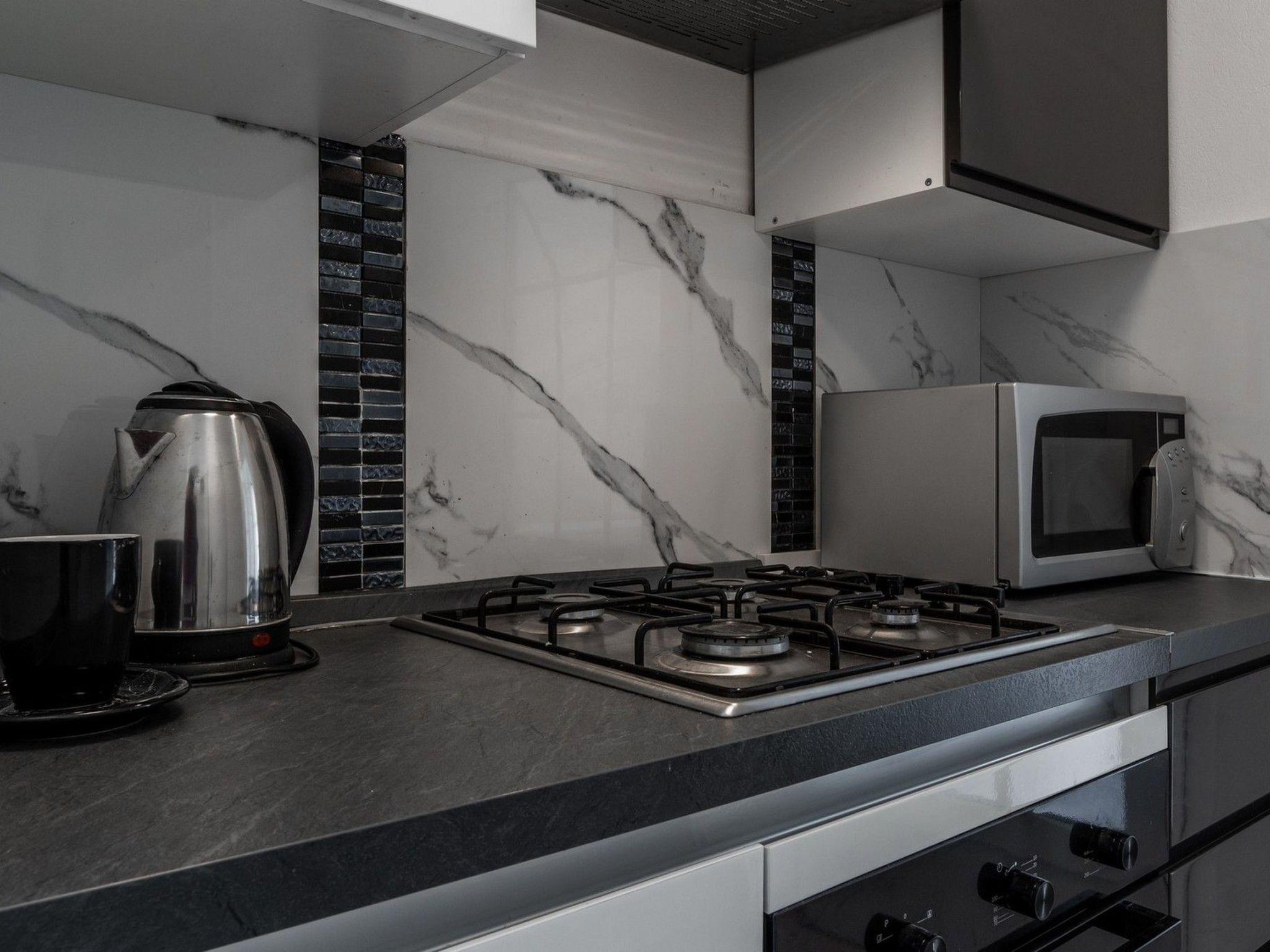 The apartment is thoughtfully equipped to cater to all your needs, ensuring a comfortable stay. It features a well-appointed kitchen, complete with a gas cooker, dishwasher, filter coffee machine, and an electric kettle for those morning brews. Adjacent to the kitchen, the dining area offers a cozy spot to enjoy meals. The bedroom, furnished with a comfortable double bed, promises restful nights. Additionally, a washing machine is at your disposal for your sole use, ensuring the comforts of home are never out of reach.