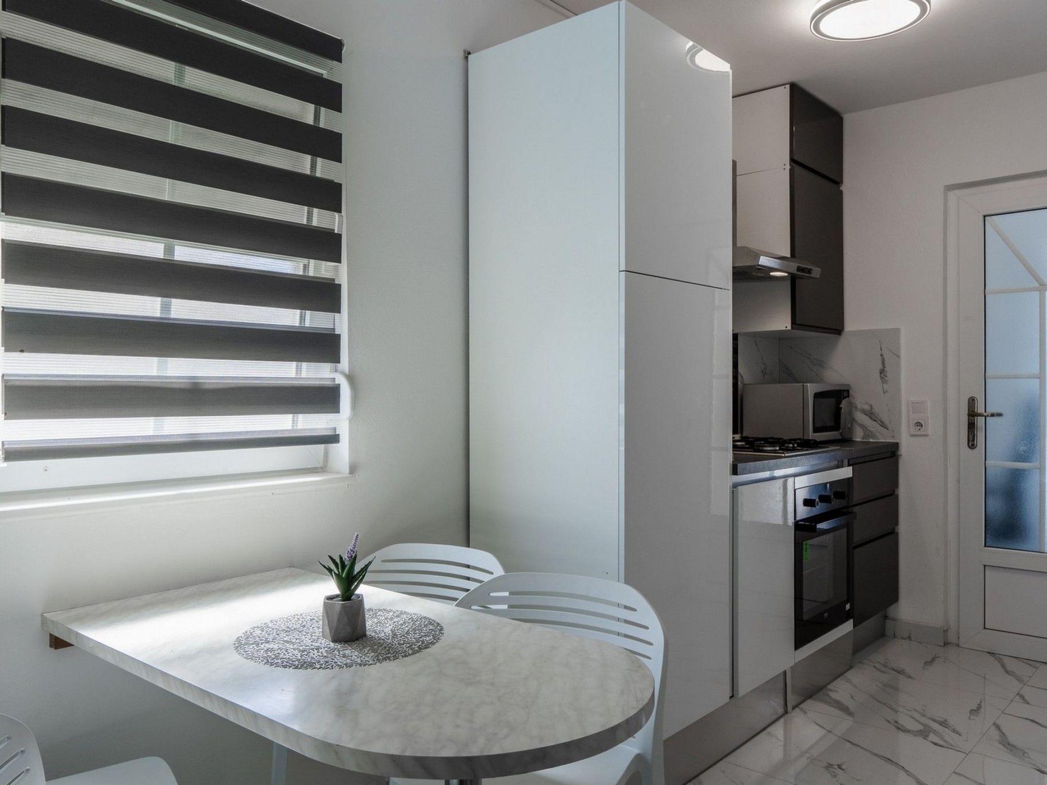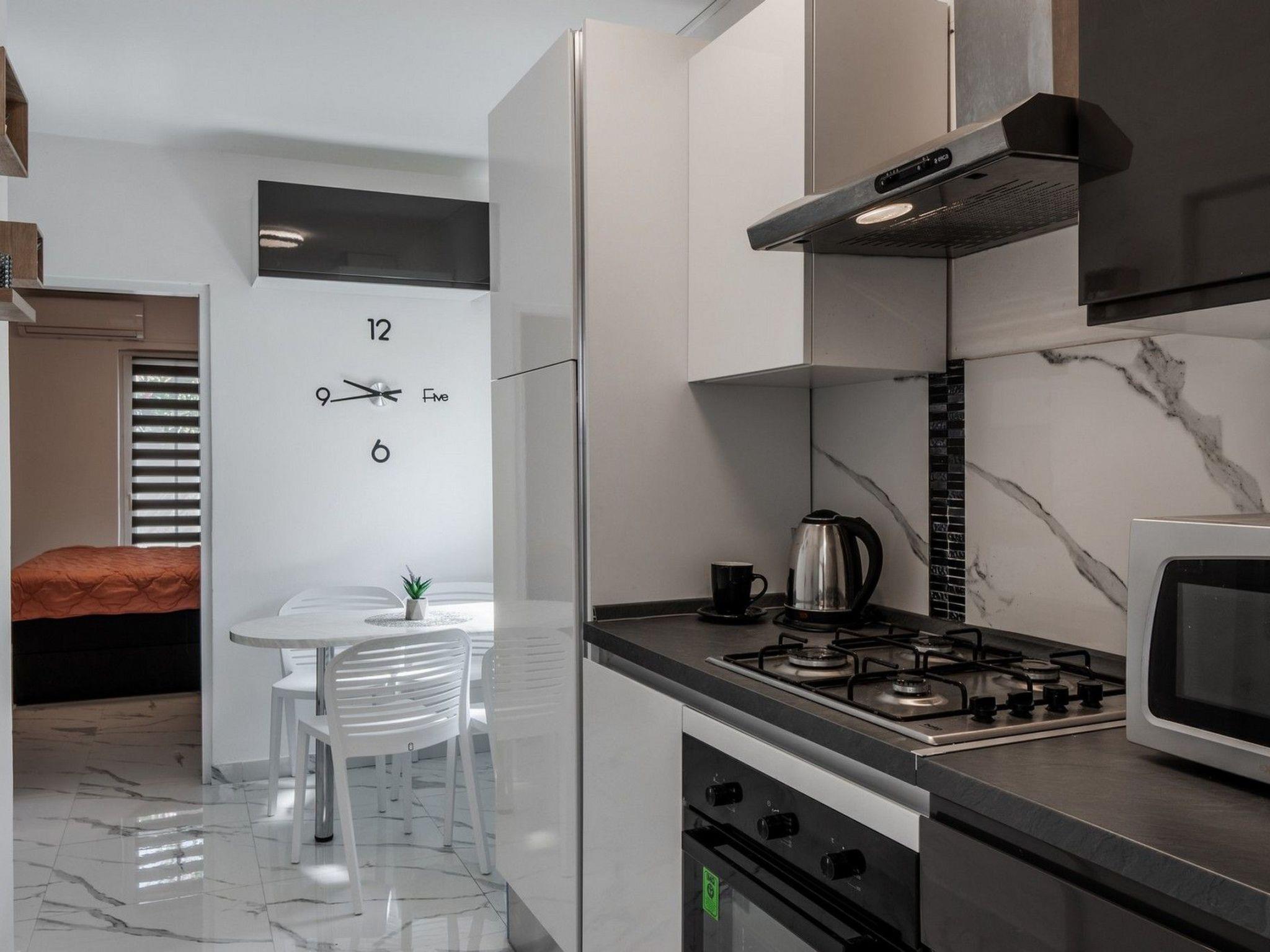 Its prime location ensures you are never far from the action. A mere 100m walk takes you to the nearest pebble beach, inviting endless days of seaside enjoyment. For essentials, a grocery store is conveniently located 200m away. The apartment is also a perfect starting point for exploring, with the center of Vir, bustling with culture and cuisine, just 1700m away. Whether it's dining out, shopping, or immersing in local life, everything is within easy reach.
