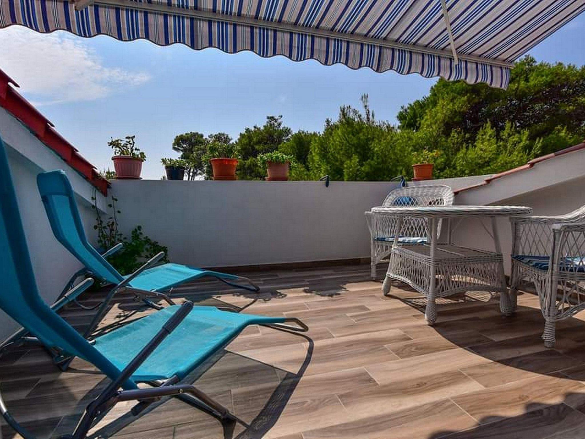 Inside, the apartment is thoughtfully designed to maximize comfort and functionality. The living area, serving as the heart of the apartment, features a cozy double bed alongside modern amenities such as air conditioning for those warm Dalmatian days, a television for leisurely evenings, and wireless internet access for staying connected. The kitchen area is equipped with essentials including a 2-plate stove and electric kettle, catering to your culinary needs. Additionally, the bathroom boasts a refreshing shower, ensuring a pleasant start or end to your day.