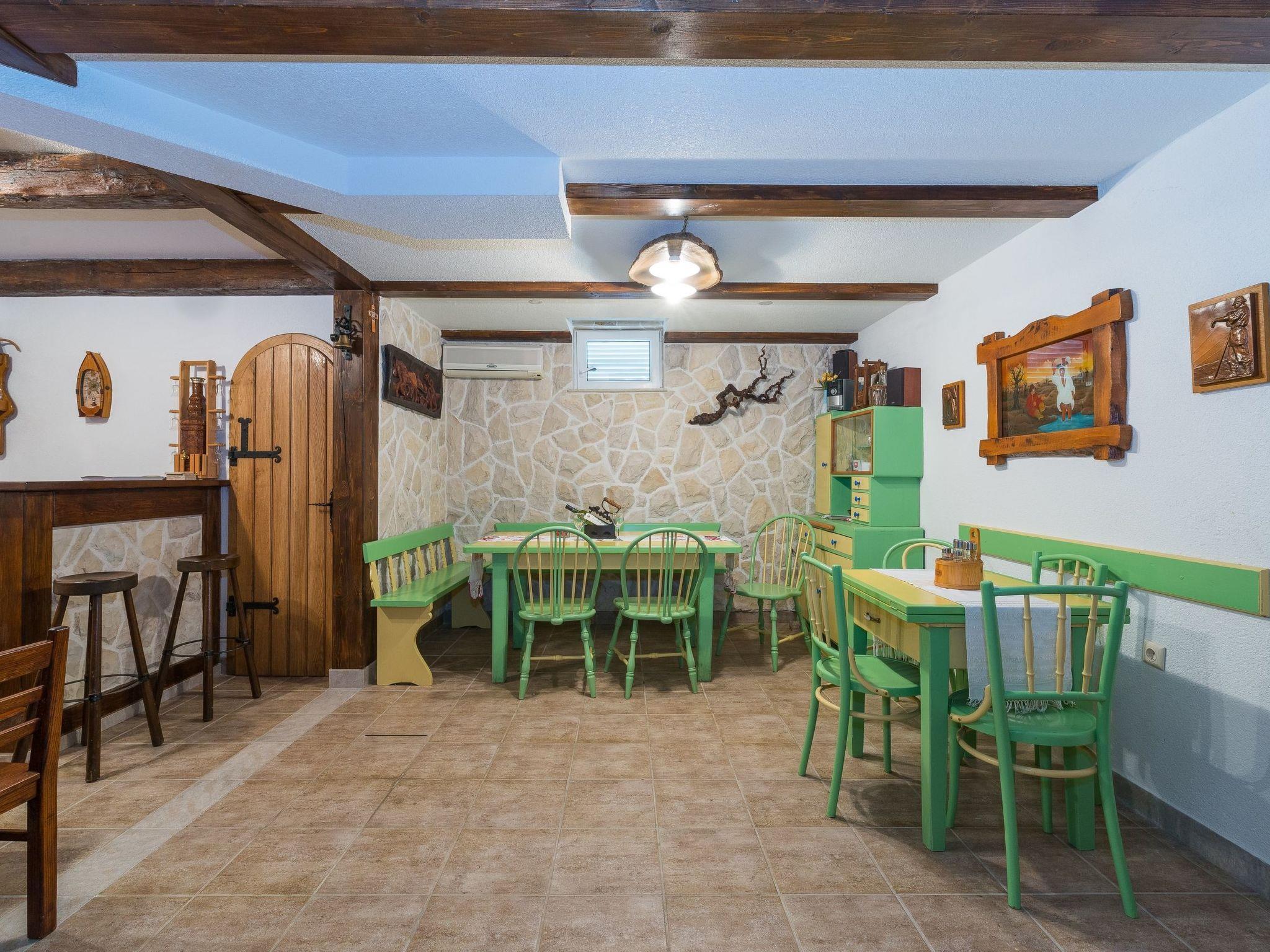 The apartment is divided into a living room with sofa bed for two persons, kitchen and dining area and bathroom with shower. From the living room you can reach onto a furnished 3 m² balcony. Other amenities include air conditioning, satellite TV, Wi-Fi Internet. Children's cot upon request. The common lounge area is located in the basement of the house and includes bar, seating furniture, darts, satellite TV, radio, air conditioning and refrigerator with freezer. Behind the house there is parking space for bicycles .In the courtyard of the house (200 m²) there is a pavilion with barbecue and garden furniture ideal for gatherings in warm summer evenings .The apartment is situated in a distance of 70 m from sea and 150 m from shops and restaurants.