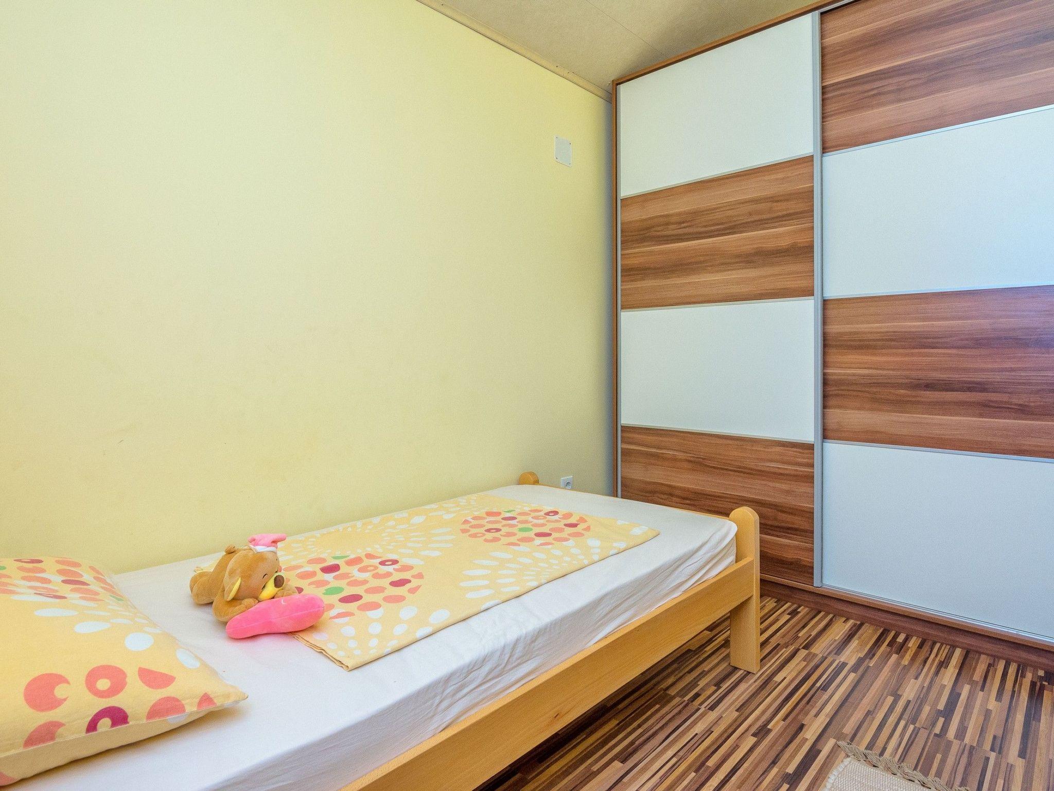 Apartment (60 m²) on the first floor of the house, ideal for 3-5 persons is divided into a living room with kitchen and dining area, two bedrooms (one with double bed and one with two single beds) and a bathroom with shower. In the living room there is a sofa bed for one more person.