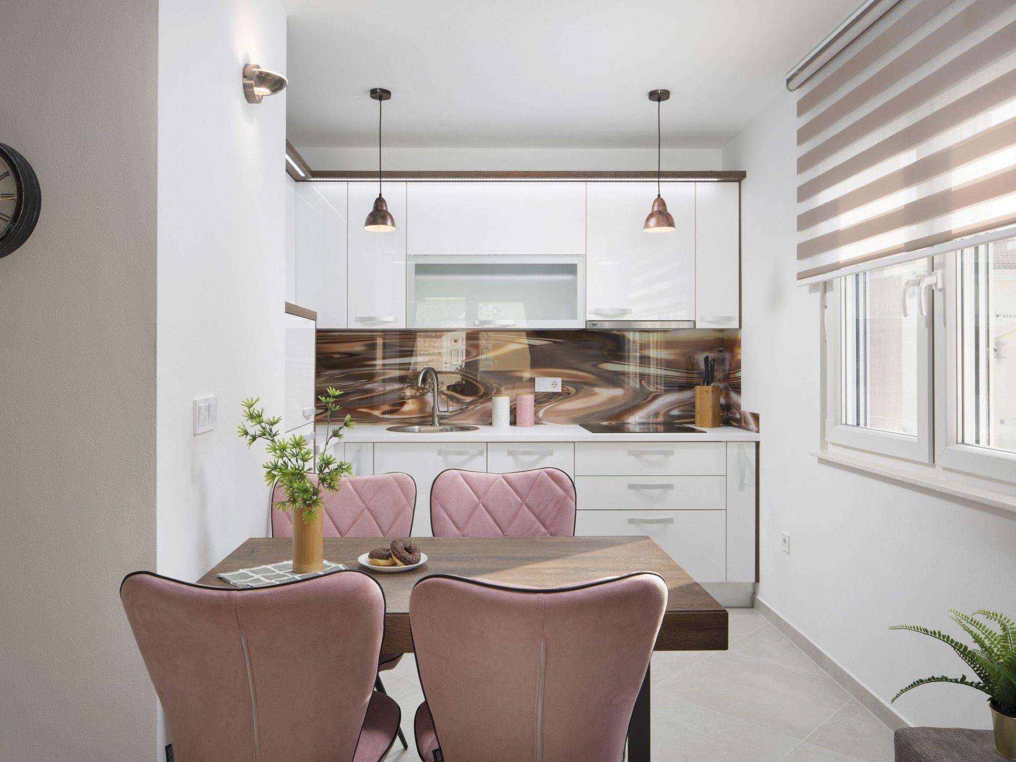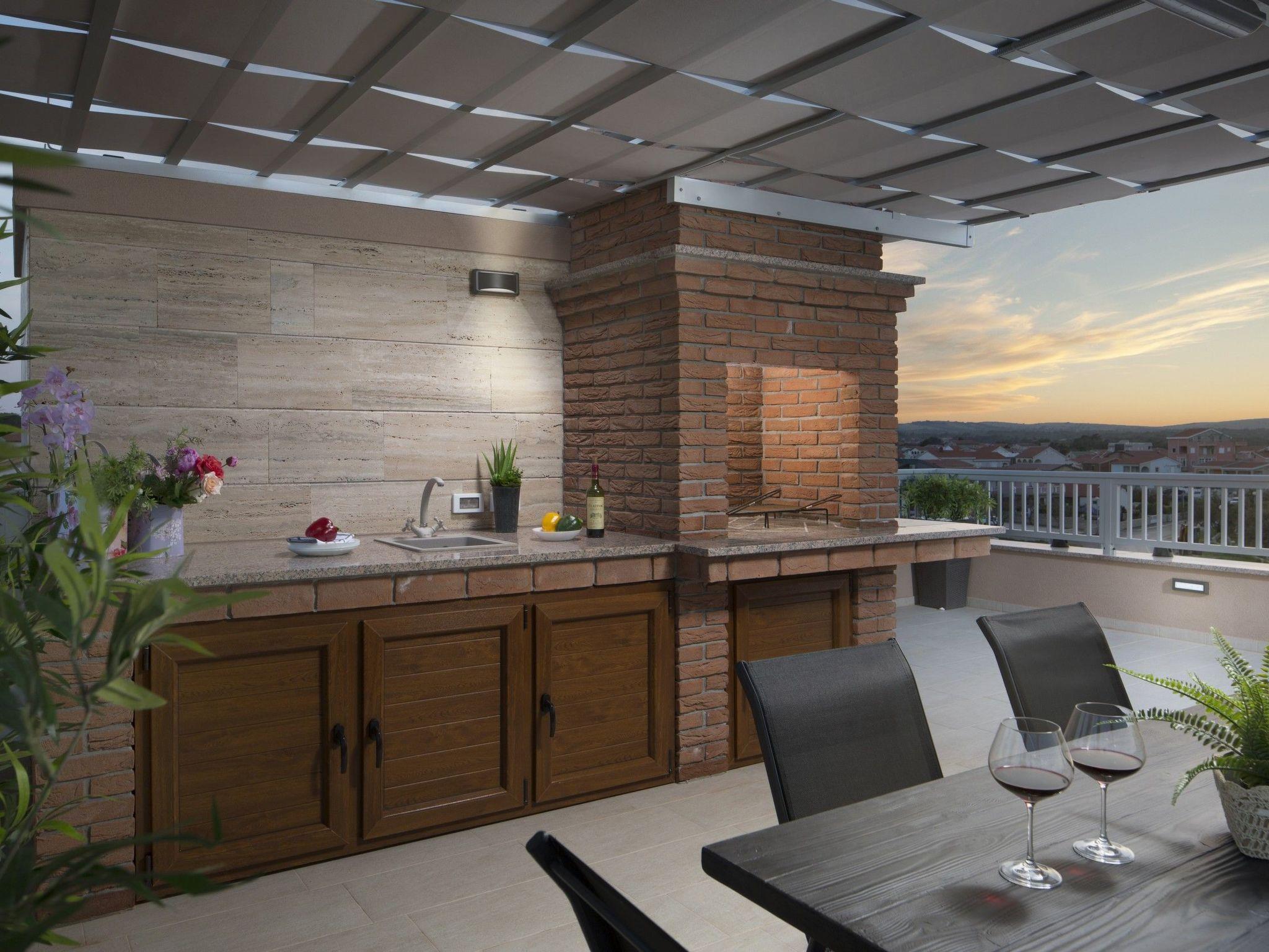 This luxurious, modern and newly furnished 4-stars apartment is located in the area of the island of Vir called Lucica, just 30 m from a beach and can accommodate 2-4 persons. The 63 m² apartment on the 1st floor of the house consists out of living and dining area with fully equipped kitchen, two bedrooms with double beds and a bathroom with a shower cabin. To the apartment belongs a 9 m² roofed balcony with table and chairs and a sea view. Washing machine, dishwasher, air conditioning, Wi-Fi Internet, satellite TV, safe and parking on the property are among the other features of this apartment. The common balcony and lounge area (85 m²) on the roof of the house (3rd floor) with grill pavilion, sating furniture, deck chairs and a breathtaking sea view is an ideal place for an everyday life getaway in the evening sunset atmosphere. On the nearby pebble beach Lucica with crystal-clear sea you can enjoy sunbathing, swimming or diving. Along the coast stretches a 7 km long promenade. For those who prefer more active vacation, this promenade is ideal for fast walking or running. Shops and restaurants can be found within walking distance.