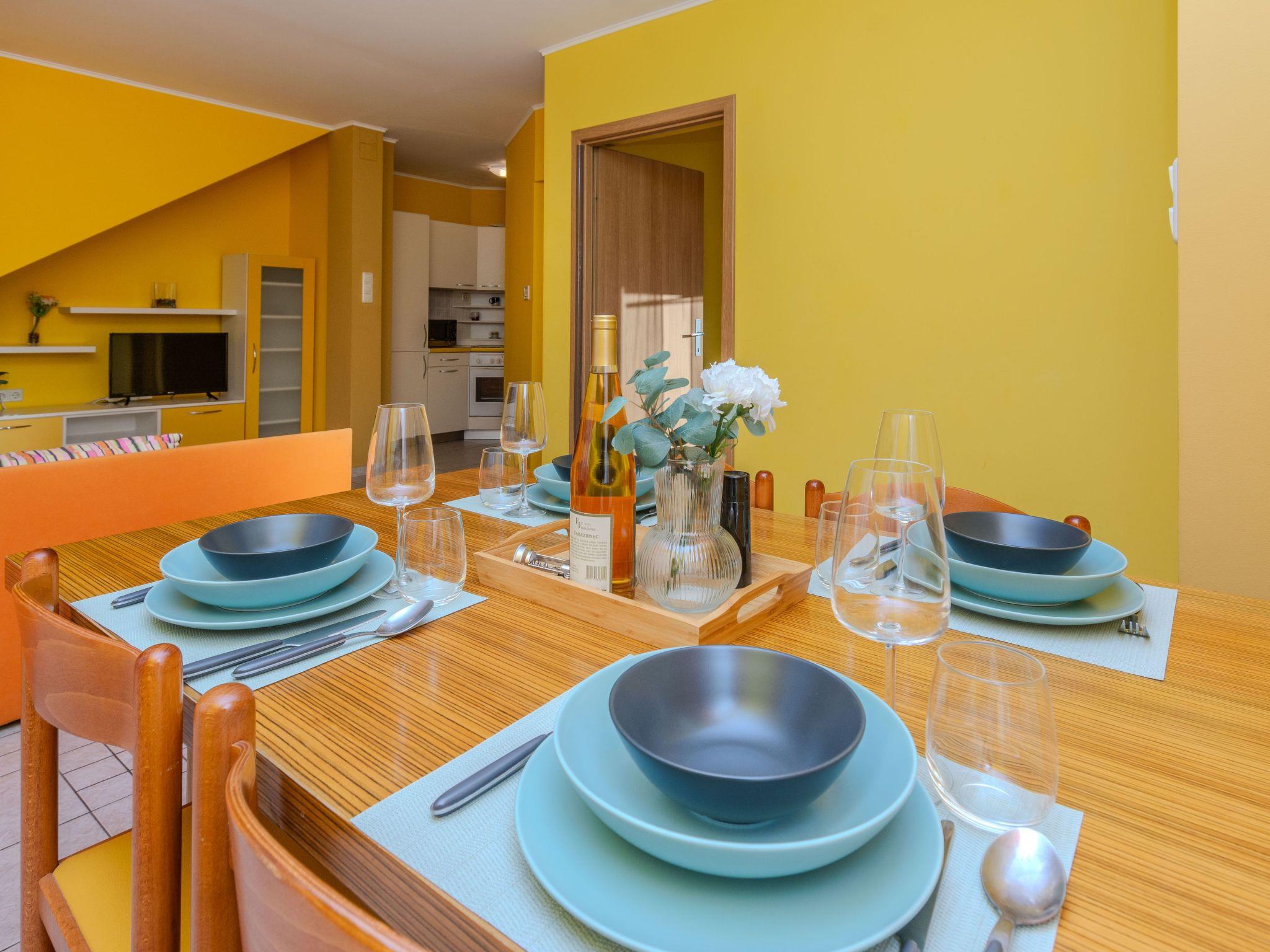 At the heart of the flat is the open-plan dining and living area, equipped with a cosy sofa bed for two, satellite TV for entertaining evenings and Wi-Fi internet access to stay connected at all times. Air conditioning ensures pleasant temperatures in the warmer months. With practical amenities such as a coffee machine and kettle, you can always get the day off to a good start in this flat.