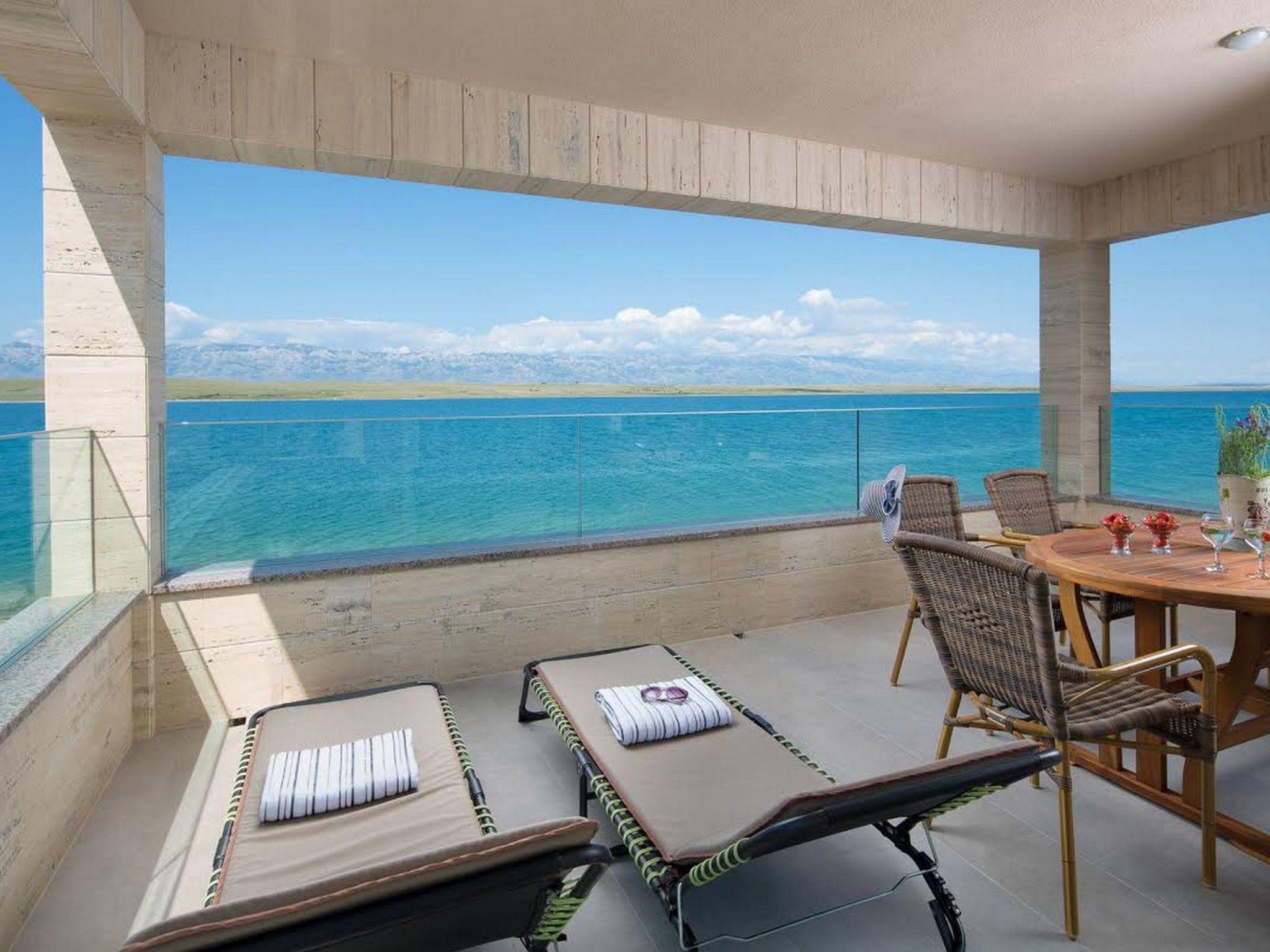 This luxurious, modern and newly furnished 4-star vacation rental for 2-4 persons is located directly on the beach, in a quiet area of Bobovik, on the island of Vir. The 50m2 apartment on the first floor of the house is divided into a bedroom, a bathroom with shower and a living and dining area with a fully equipped kitchen. In the living room there is a sofa bed for two more persons. Dishwasher, washing machine, air conditioning, satellite TV and Internet access via WLAN are among the further features. To the apartment belongs a balcony with a breathtaking view of the sea which is equipped with table, chairs and sun loungers, inviting You to relax and offering a space for breakfast and dinner. In the outdoor area all guests have a roofed pavilion with garden furniture at disposal. The nearest beach is about 10m from the property. This pebble beach stretches on a 7km long promenade along the coast with a magnificent sunset. Ideal for relaxing evening walks or more challenging fast walking or running.