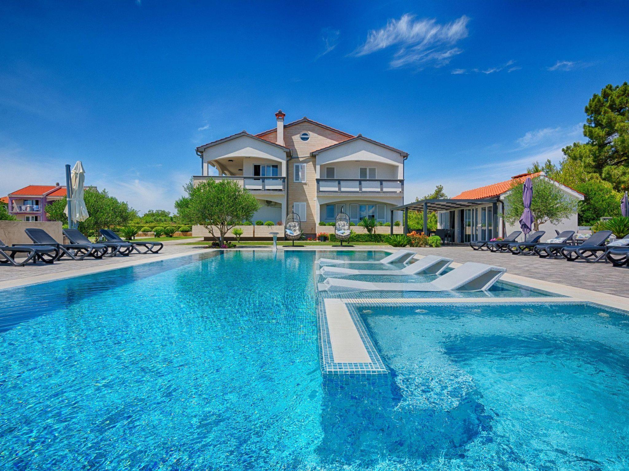 At the property there is a swimming pool of 87m² (13,5m long, 6,5m wide and 1,4m deep) with loungers and a relax area with spacious lounge seating furniture under a parasol. The 45m² apartment is located on the first floor of the house and is divided into a kitchen, dining and living area, a bedroom with double bed and a bathroom with shower cabin. In the living room there is a sofa bed for two more persons. 15m² furnished and roofed balcony with a sea view belongs to the apartment. Air conditioning, satellite TV, Wi-Fi internet and grill pavilion in the courtyard with outdoor kitchen with oven and outdoor dining area are among the other features. Restaurants and shopping opportunities can be found at a distance of a few minutes’ walk. The beach Jadro, the most popular beach on the island of Vir where You can find all kinds of entertainment during Your summer vacation is just 200m distanced.