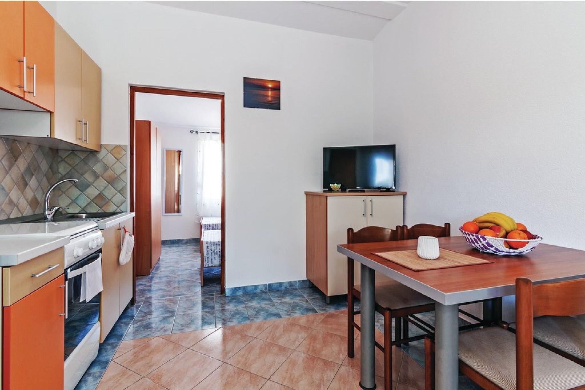 Apartments Hak is located on Vir, an island that lies in Dalmatia, north of the city of Zadar 28 km away from it. Common BBQ grill facilities as well as an outdoor dining area are at your disposal, which makes this place a perfect spot for a nice and relaxing vacation. All the units come with a private furnished terrace or balcony. Free private parking is provided, reservation is not needed. Luggage storage is possible prior to check in and after check out, so you can explore the city a little more before your departure. Free Wi-fi is provided throughout the property. This one bedroom apartment with terrace and sea view can accommodate up to four people. It features air-conditioning as well as Cable LCD TV. The open space living room comes with sofa and sitting area, and it's combined with the equipped kitchen and dining area. The private bathroom comes with shower and toilet. Due to the properties good location everything you may need during your stay is in the area. Beach is only 100 m away! Restaurant and caffe bar is 100 m away, while market is only 70 m away. You can find a pharmacy, bank and ATM in the radius of 3 km. Zadar airport is 39 km away, while bus station Vir is 2 km away.