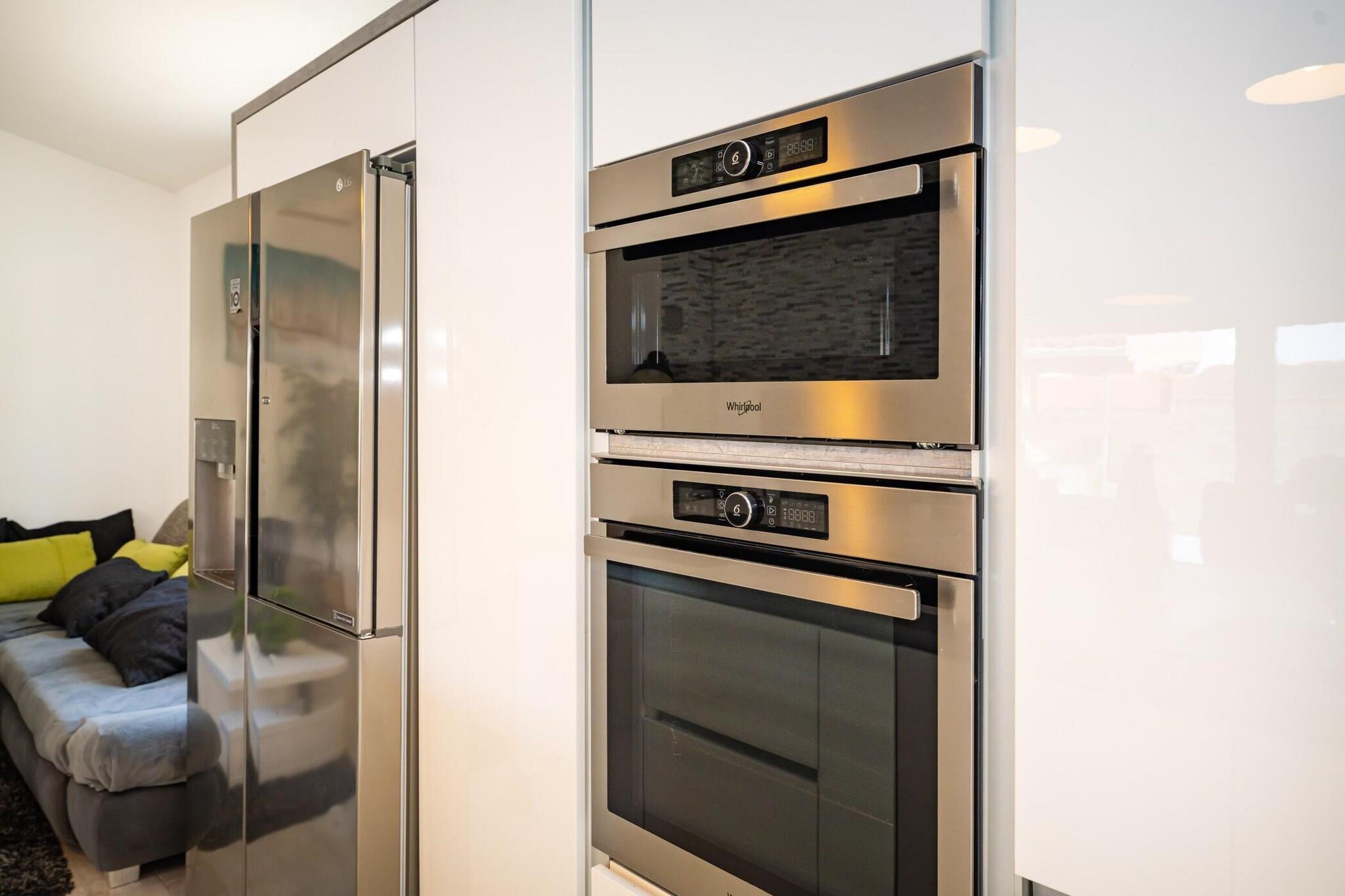 Åbent køkken(kogeplade(induktion), brødrister, ovn, mikrobølgeovn, opvaskemaskine , køle-fryseskab, (), ()), stue / spisestue(dobbeltsovesofa, Fjernsyn(fladskærm, parabol, Smart-TV), spisebord, sofahjørne), soveværelse(king size-seng, klimaanlæg), soveværelse(king size-seng, klimaanlæg), soveværelse(king size-seng, klimaanlæg), badeværelse(bruser, håndvask, toilet), badeværelse(bruser, håndvask, toilet), udekøkken, Internetadgang, Parkering, Førstehjælp, spisestue, Have, Havemøbler, pejs, bruser med lysterapi, vaskemaskine, patio, klimaanlæg, terrasse(10 m2), have, havemøbler, solstole, grill, parkering, liggestole, swimmingpool(privat, udendørs), strygebræt, føntørrer, loungemøbler, havepejs,