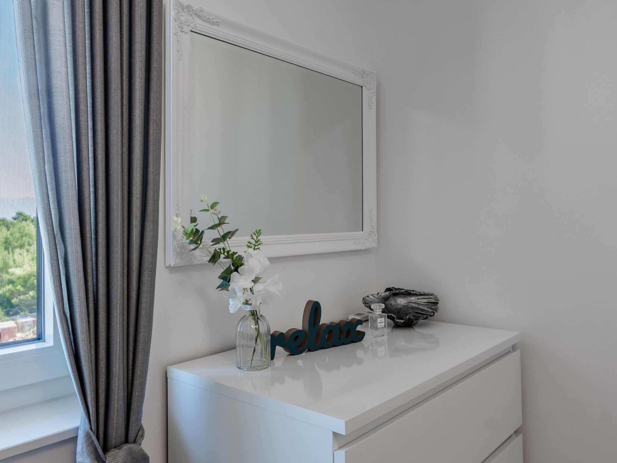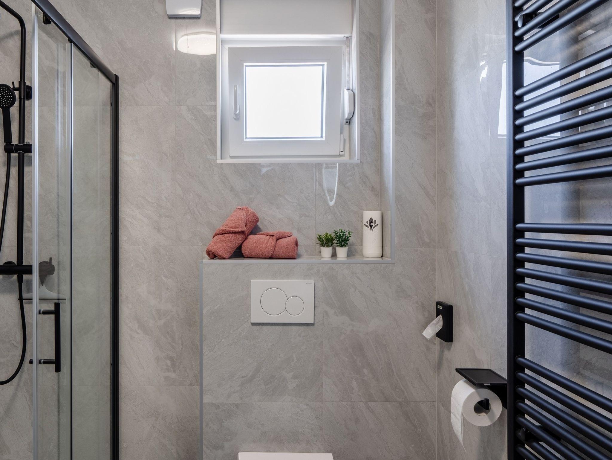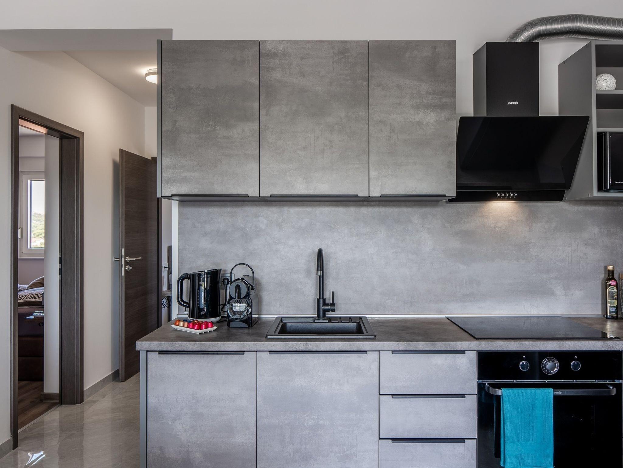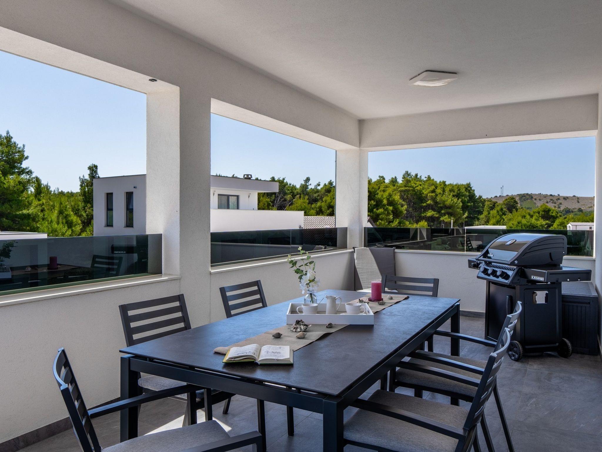 Ferienwohnung bietet Platz für 6 Gäste. Die Betten sind in Schlafzimmern, die es 2 gibt, und in Wohnzimmer, innerhalb einer Gesamtfläche von 51m2, angeordnet. Die Gäste haben eine eigene Terrasse zur Verfügung, auf der sie in warmen Sommernächten genießen können. Das Apartment bietet Meerblick. Es ist erlaubt, Speisen auf dem Gemeinschafts-Grill vorzubereiten. IM PREIS INBEGRIFFEN: Kurtaxe, Endreinigung, Klimatisierung, Parkplatz, Internet, Bügeleisen, Bügelbrett, Föhn, tragbarer Grill. Die Verfügbarkeit zusätzlicher Dienstleistungen in Ihrem reservierten Termin und die Preise derselben (falls nicht aufgeführt) müssen im Voraus überprüft werden. Zusätzliche Dienstleistungen die in der Zahlungsaufforderung nicht aufgeführt sind werden direkt beim Vermieter bezahlt, angenommen der Gast nutzt auch diese.