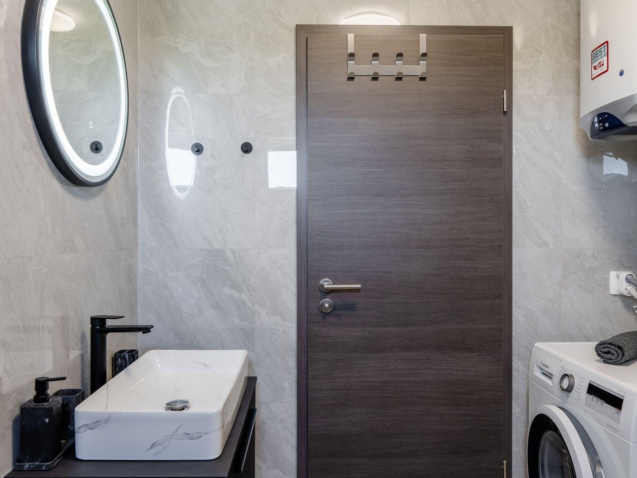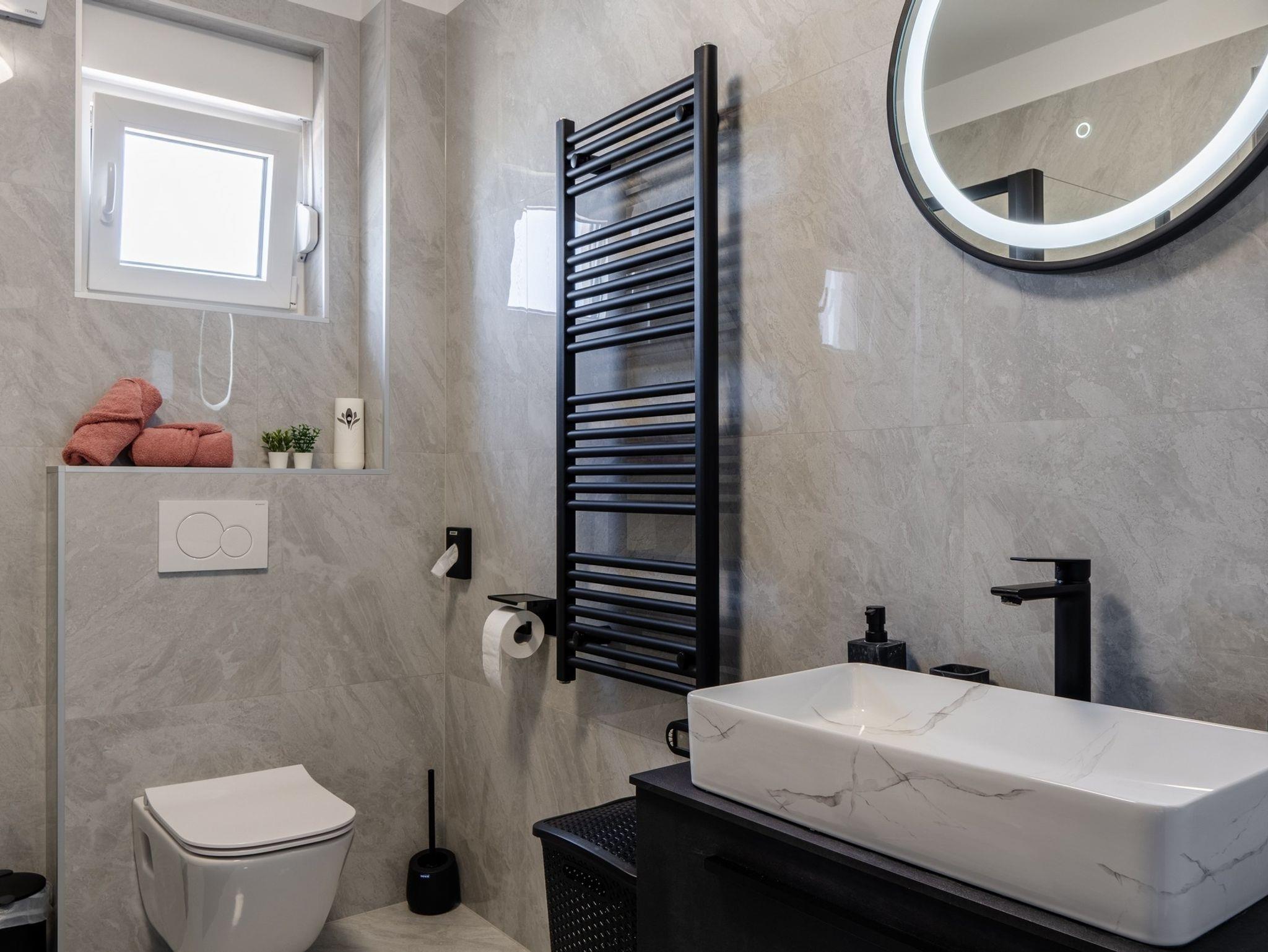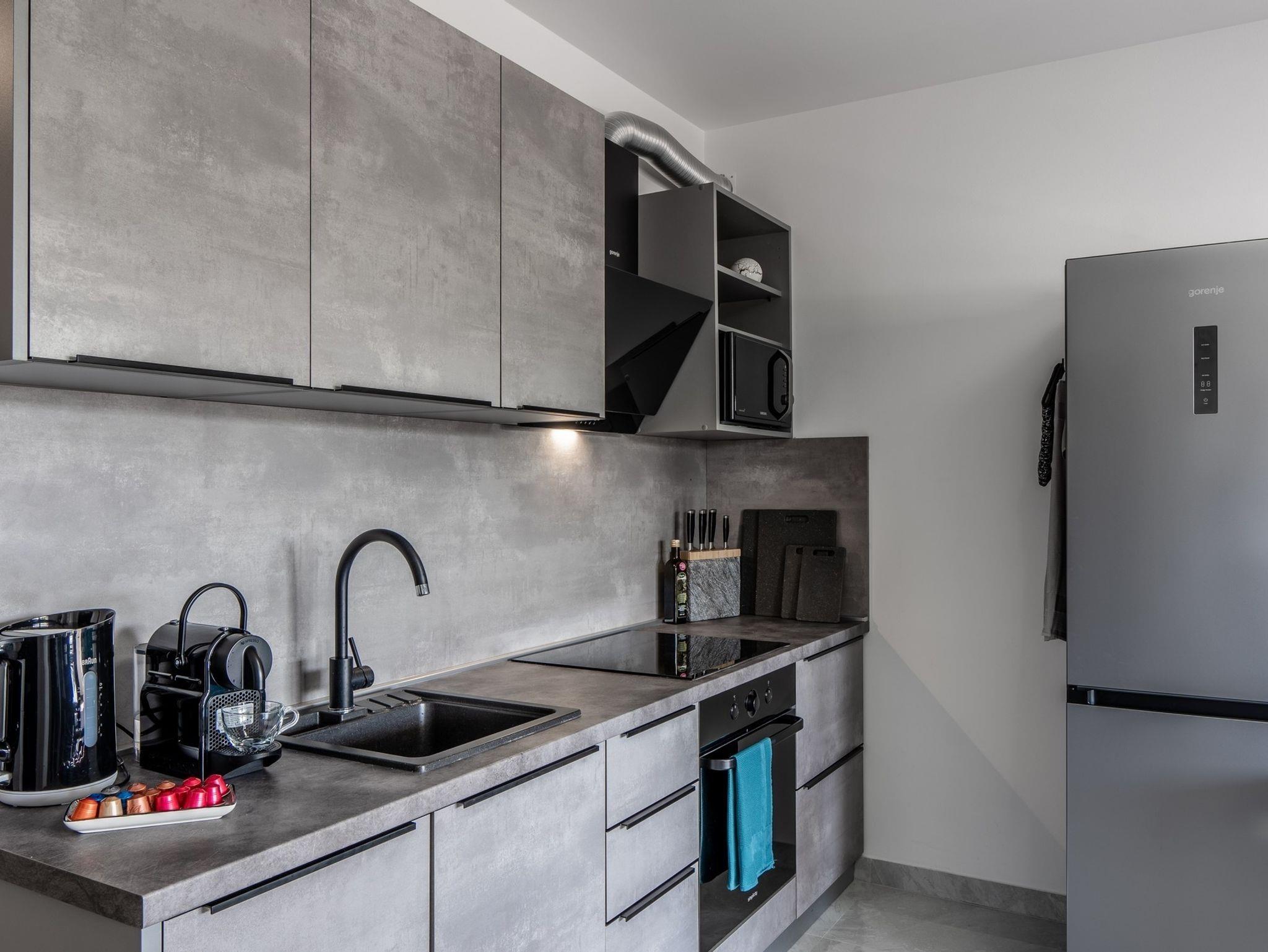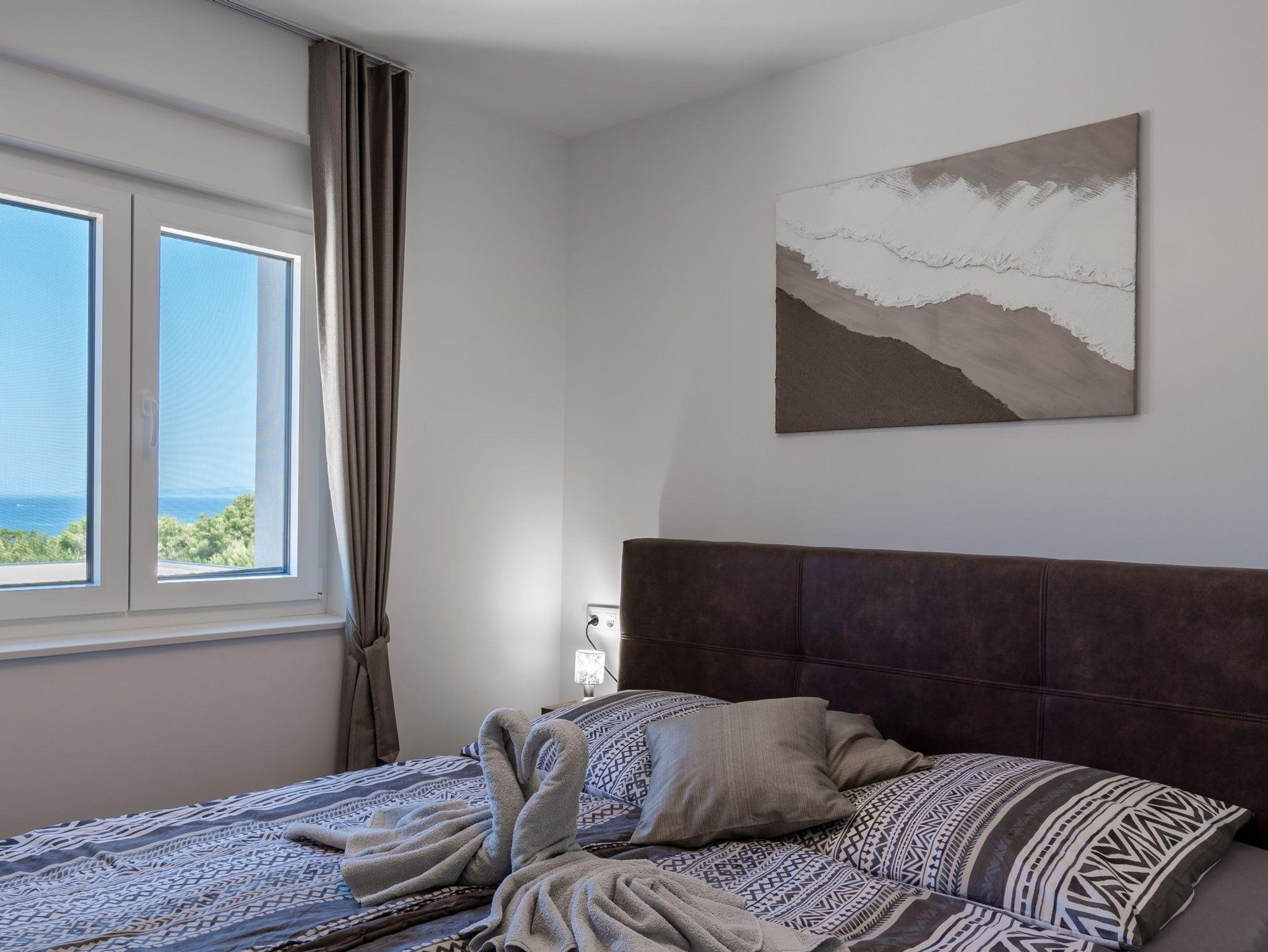 Ferienwohnung bietet Platz für 6 Gäste. Die Betten sind in Schlafzimmern, die es 2 gibt, und in Wohnzimmer, innerhalb einer Gesamtfläche von 51m2, angeordnet. Die Gäste haben eine eigene Terrasse zur Verfügung, auf der sie in warmen Sommernächten genießen können. Das Apartment bietet Meerblick. Es ist erlaubt, Speisen auf dem Gemeinschafts-Grill vorzubereiten. IM PREIS INBEGRIFFEN: Kurtaxe, Endreinigung, Klimatisierung, Parkplatz, Internet, Bügeleisen, Bügelbrett, Föhn, tragbarer Grill. Die Verfügbarkeit zusätzlicher Dienstleistungen in Ihrem reservierten Termin und die Preise derselben (falls nicht aufgeführt) müssen im Voraus überprüft werden. Zusätzliche Dienstleistungen die in der Zahlungsaufforderung nicht aufgeführt sind werden direkt beim Vermieter bezahlt, angenommen der Gast nutzt auch diese.