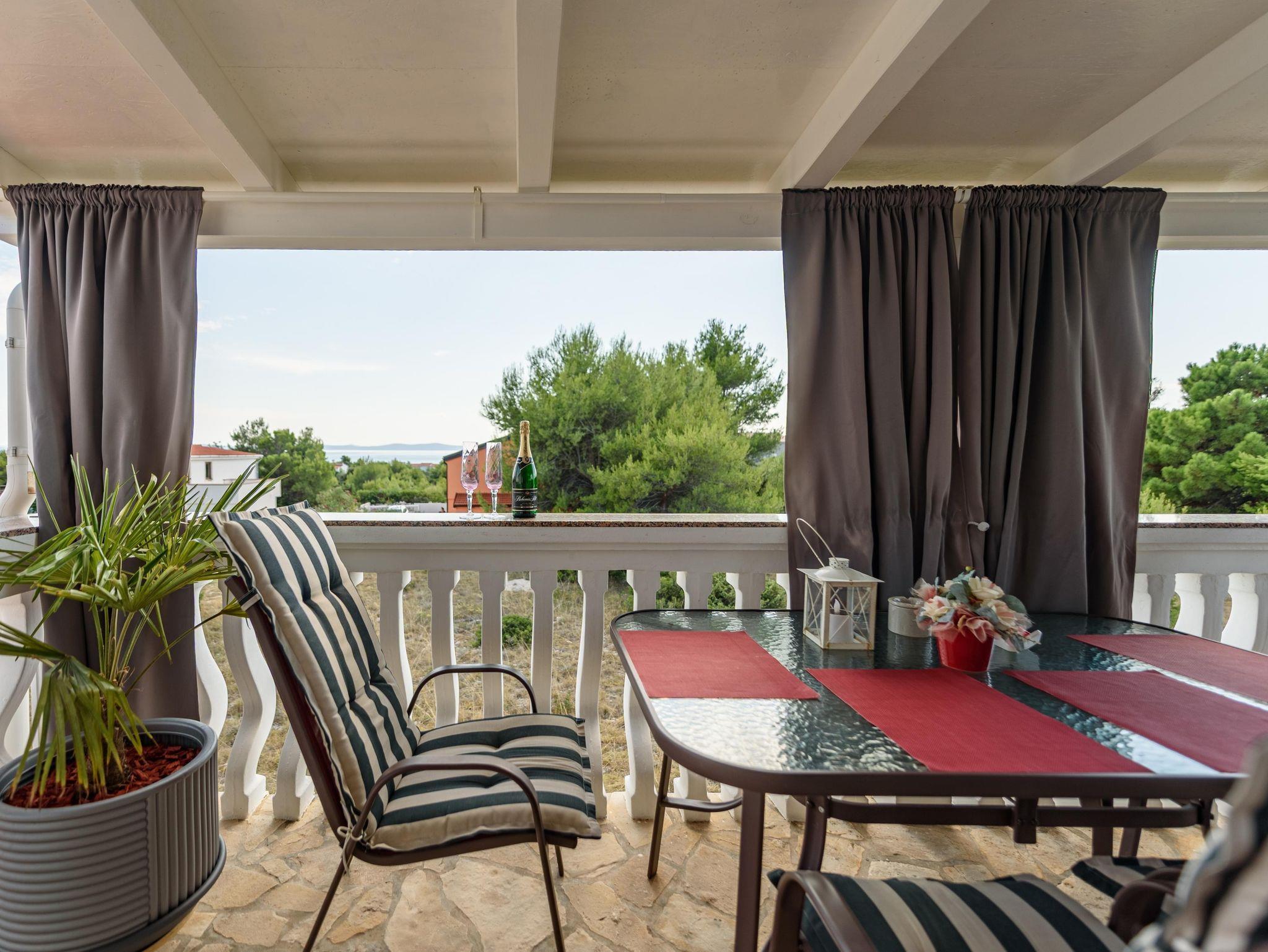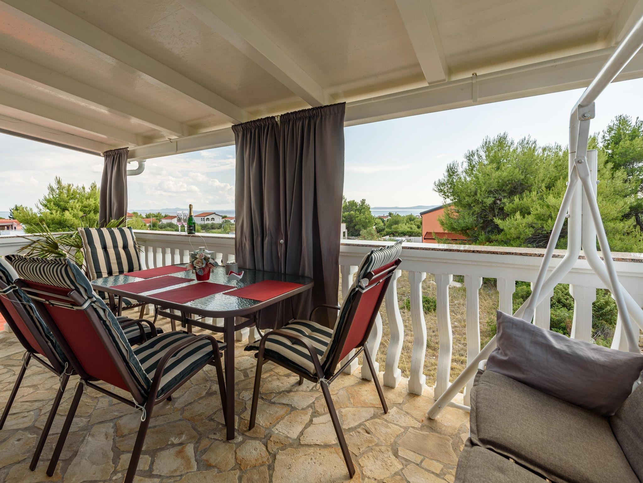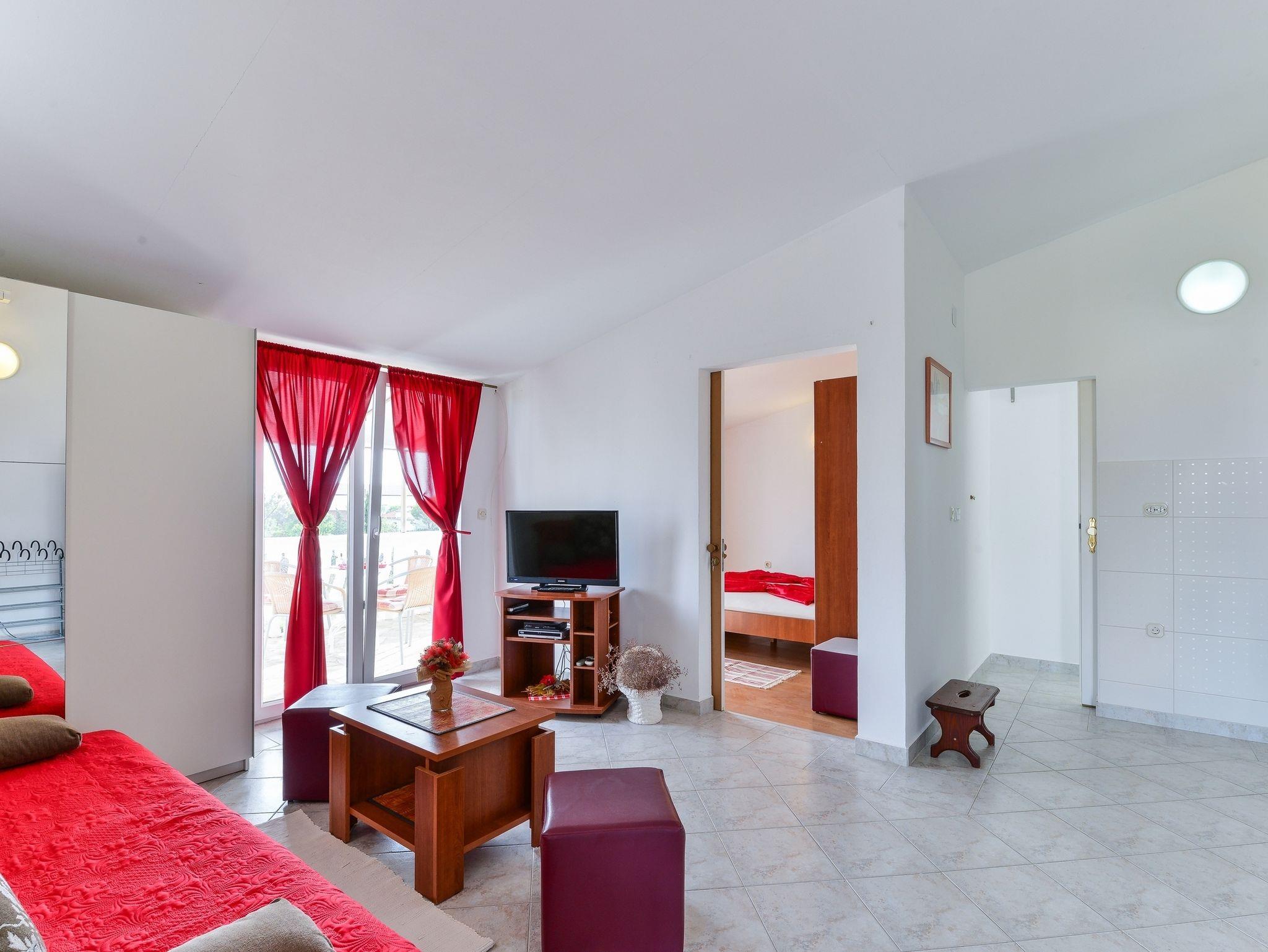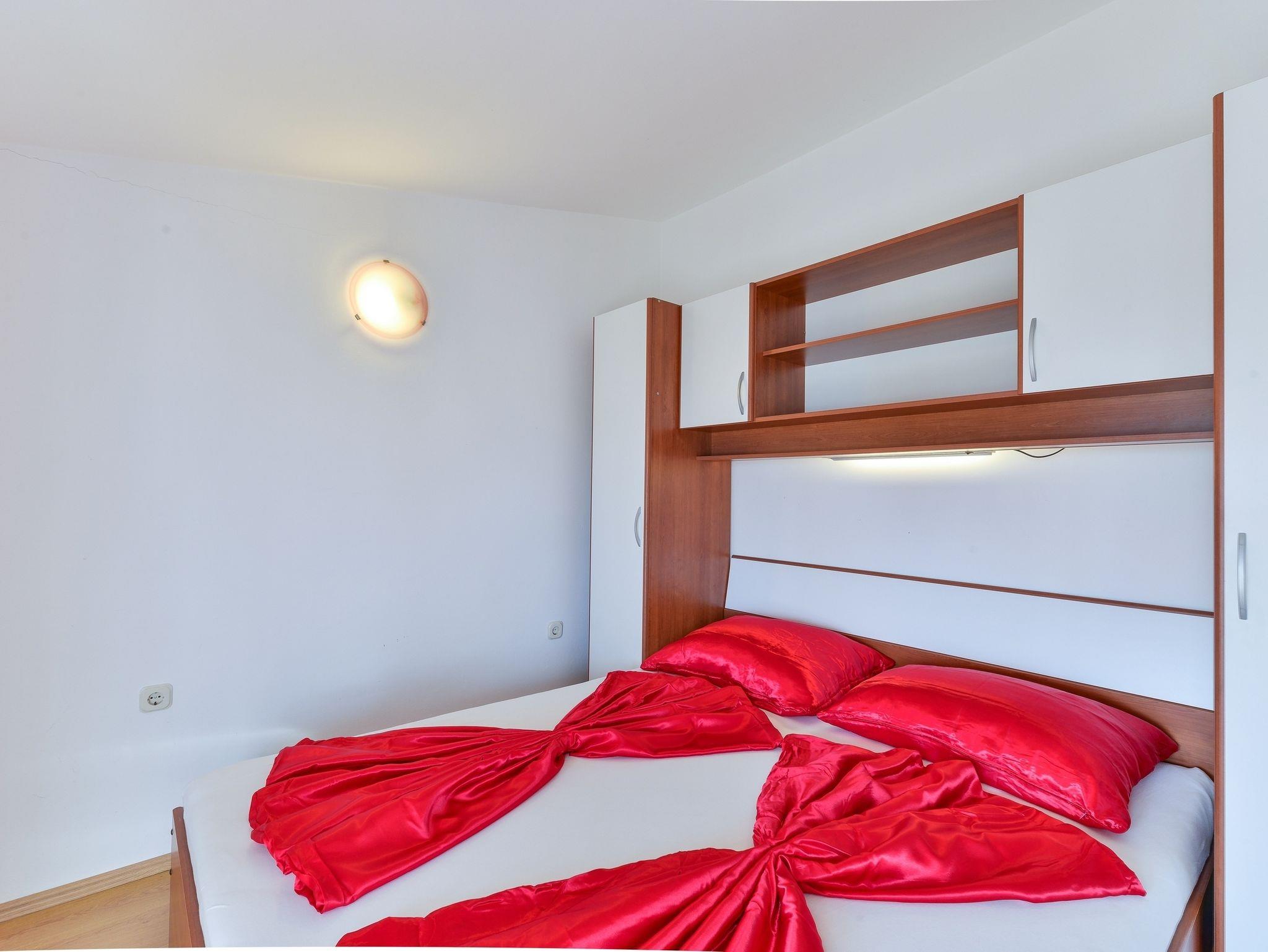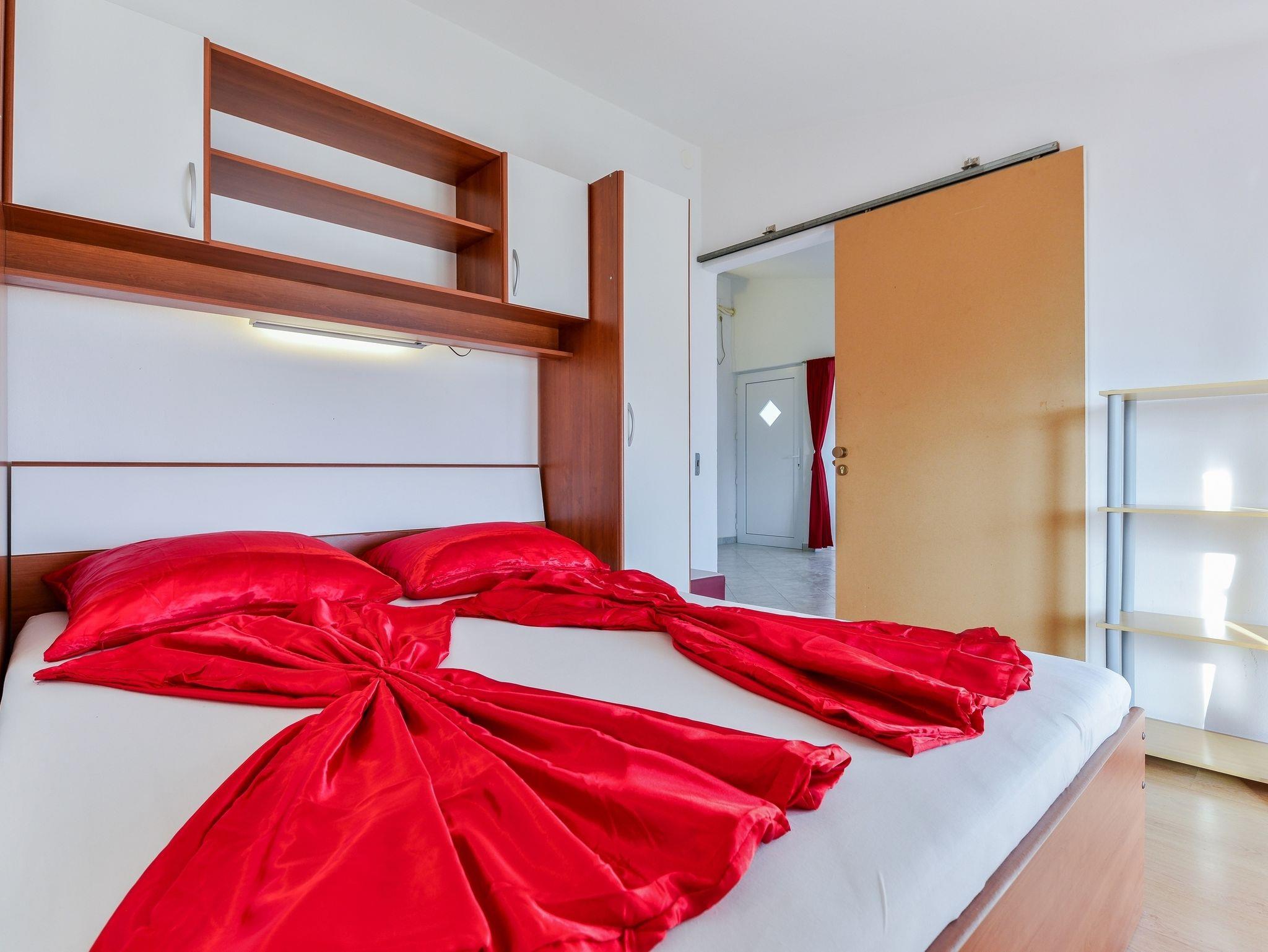 Ferienwohnung bietet Platz für 4 Gäste. Die Betten sind in Schlafzimmern, die es 1 gibt, und in Wohnzimmer, innerhalb einer Gesamtfläche von 51m2, angeordnet. Die Gäste haben eine eigene Terrasse zur Verfügung, auf der sie in warmen Sommernächten genießen können. Das Apartment bietet Meerblick. Es ist erlaubt, Speisen auf dem Gemeinschafts-Grill vorzubereiten. IM PREIS INBEGRIFFEN: Kurtaxe, Endreinigung, Klimatisierung, Parkplatz, Internet, Kinderbett, Föhn. VERBINDLICHE ZUSÄTZLICHE KOSTEN: Aufzahlung für Kurzaufenthalte (prozentualer Zuschlag pro Nächtigungsanzahl: 30% - 1, 20% - 2, 10% - 3). Die Verfügbarkeit zusätzlicher Dienstleistungen in Ihrem reservierten Termin und die Preise derselben (falls nicht aufgeführt) müssen im Voraus überprüft werden. Zusätzliche Dienstleistungen die in der Zahlungsaufforderung nicht aufgeführt sind werden direkt beim Vermieter bezahlt, angenommen der Gast nutzt auch diese.