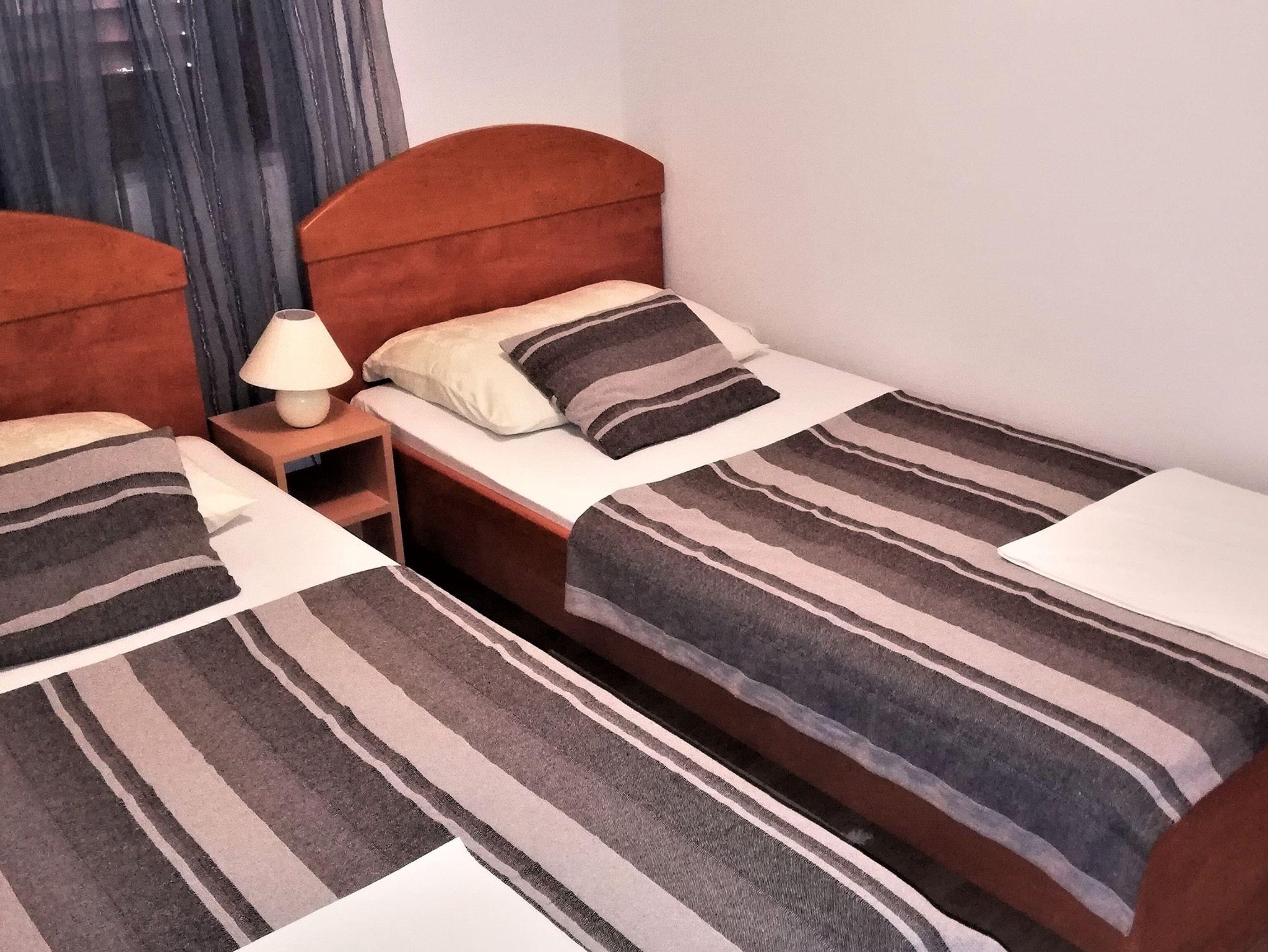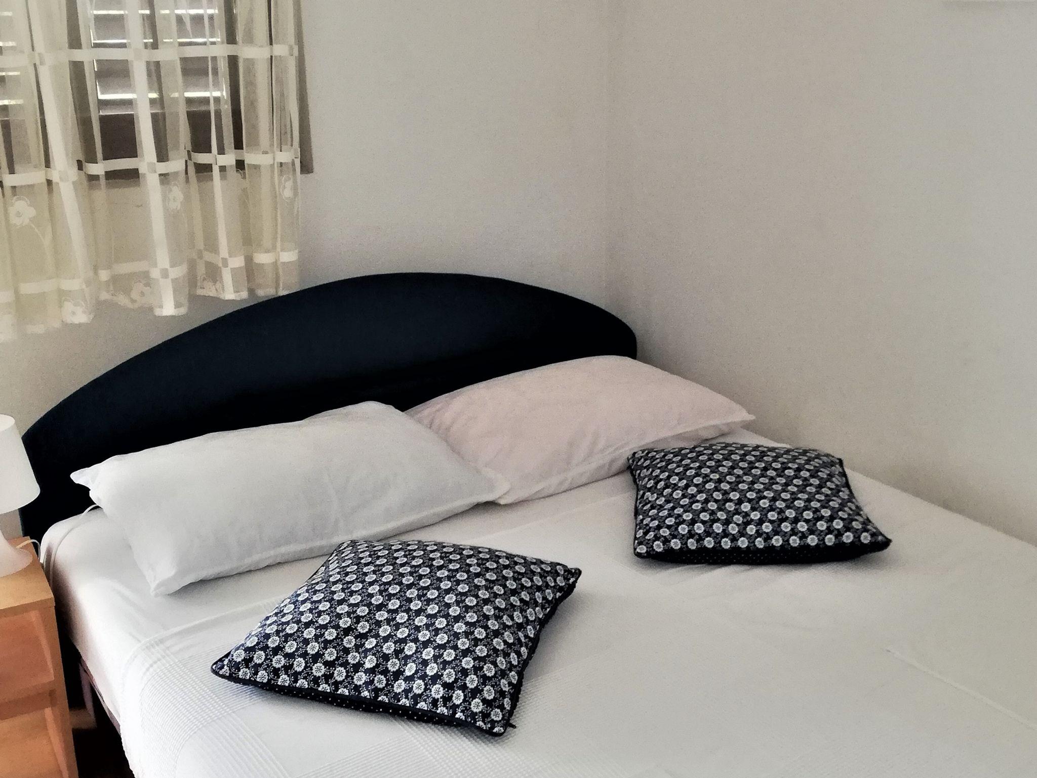 Ferienwohnung bietet Platz für 4 Gäste. Die Betten sind in Schlafzimmern, die es 2 gibt, innerhalb einer Gesamtfläche von 35m2, angeordnet. Die Gäste haben eine eigene Terrasse zur Verfügung, auf der sie in warmen Sommernächten genießen können. Das Apartment bietet Meerblick. Es ist erlaubt, Speisen auf dem Gemeinschafts-Grill vorzubereiten. Räume der gebuchten Unterkunftseinheit werden nicht in eine Ganze verbunden. IM PREIS INBEGRIFFEN: Kurtaxe, Endreinigung, Klimatisierung, Parkplatz, Internet, Kinderbett, Zusatzbett. Die Verfügbarkeit zusätzlicher Dienstleistungen in Ihrem reservierten Termin und die Preise derselben (falls nicht aufgeführt) müssen im Voraus überprüft werden. Zusätzliche Dienstleistungen die in der Zahlungsaufforderung nicht aufgeführt sind werden direkt beim Vermieter bezahlt, angenommen der Gast nutzt auch diese. Ermäßigung auf den Grundpreis: Gratistag 14=13 (bei einem Aufenthalt von 14 Tagen oder mehr erhalten Sie einen Gratistag für den Aufenthalt bis 31.12.26).