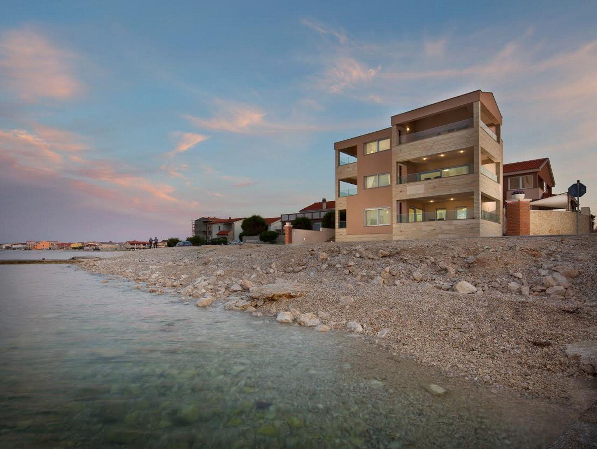 Ferienwohnung bietet Platz für 6 Gäste. Die Betten sind in Schlafzimmern, die es 2 gibt, und in Wohnzimmer, innerhalb einer Gesamtfläche von 75m2, angeordnet. Die Gäste haben eine eigene Terrasse zur Verfügung, auf der sie in warmen Sommernächten genießen können. Das Apartment bietet Meerblick. Es ist erlaubt, Speisen auf dem Gemeinschafts-Grill vorzubereiten. IM PREIS INBEGRIFFEN: Kurtaxe, Endreinigung, Klimatisierung, Parkplatz, Internet, Bügeleisen, Bügelbrett, Föhn. VERBINDLICHE ZUSÄTZLICHE KOSTEN: Aufzahlung für Kurzaufenthalte (prozentualer Zuschlag pro Nächtigungsanzahl: 30% - 1, 20% - 2, 10% - 3). Die Verfügbarkeit zusätzlicher Dienstleistungen in Ihrem reservierten Termin und die Preise derselben (falls nicht aufgeführt) müssen im Voraus überprüft werden. Zusätzliche Dienstleistungen die in der Zahlungsaufforderung nicht aufgeführt sind werden direkt beim Vermieter bezahlt, angenommen der Gast nutzt auch diese.