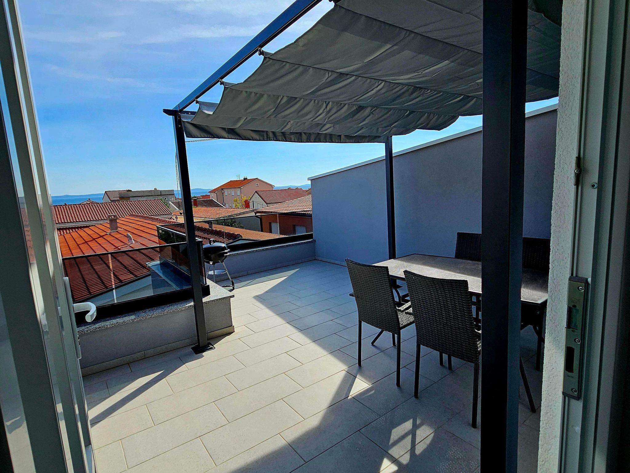 Das Haus verfügt über mehrere moderne Ferienwohnungen und bietet seinen Gästen zahlreiche Annehmlichkeiten. Dazu gehören eigene PKW-Stellplätze direkt vor dem Haus, kostenfreies WLAN, sowie Grillmöglichkeiten auf den zu jeder Wohnung einzeln gehörenden Dachterrassen, mit einem atemberaubenden Blick auf das Meer und den sagenhaften, für Kroatien bekannten Sonnenuntergängen. Ideal für gesellige Abende oder entspannte Stunden im Freien, nach dem Baden, im ca. 200 Metern entferten Meer.