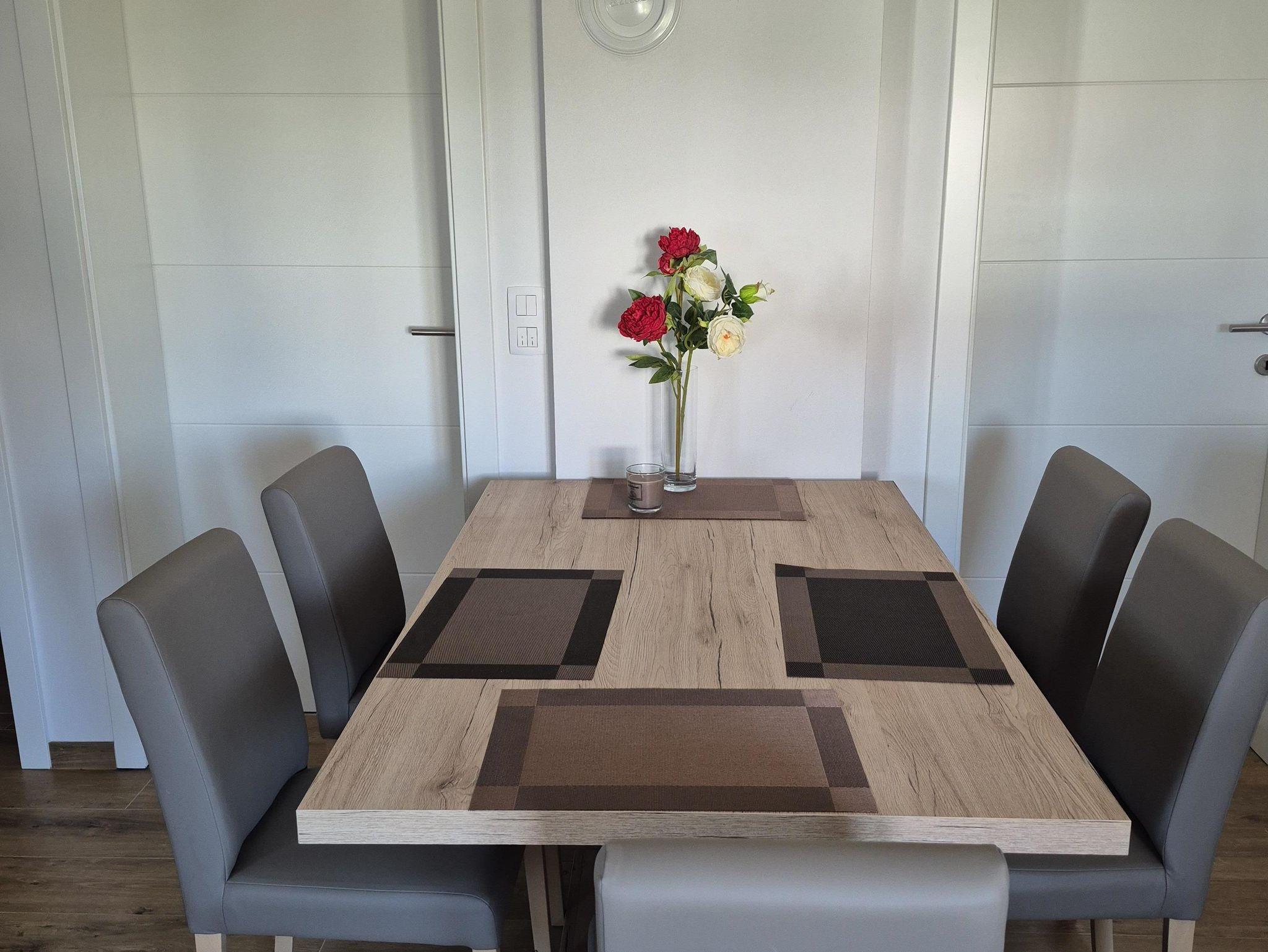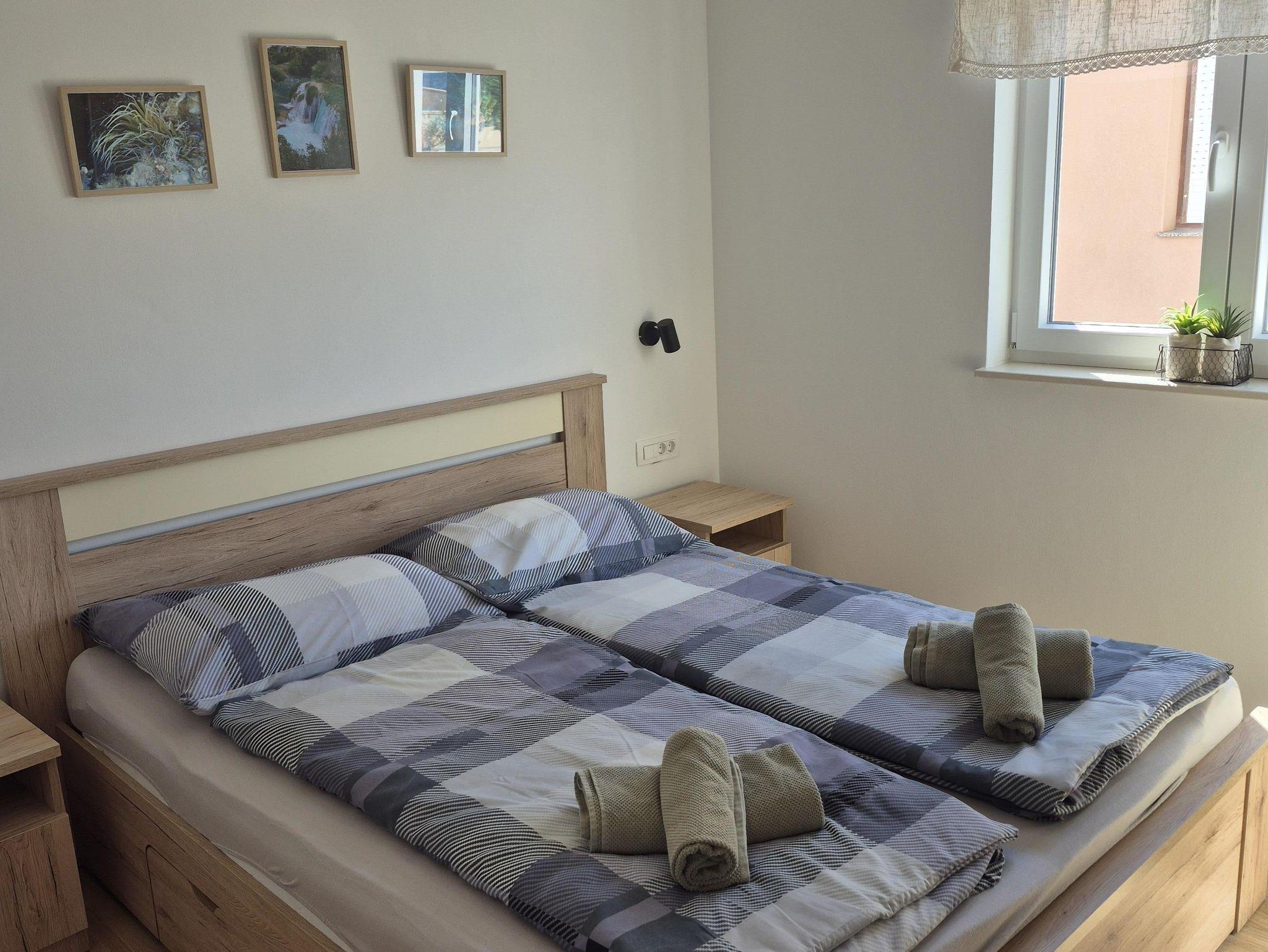 Das Apartment Željko ist ein modernes 3-Zimmer-Apartment im Erdgeschoss und bietet einen barrierefreien Zugang. Sie eignet sich besonders für Gäste, die Wert auf Komfort ohne Einschränkungen legen. Auch diese Wohnung verfügt über eine hochwertige Einbauküche mit kompletter Ausstattung, darunter Geschirrspüler, Kühlschrank mit Gefrierfach, Herd, Backofen, Kaffeemaschine, Wasserkocher und Toaster. Zwei Schlafzimmer mit je einem großen Doppelbett, Kleiderschränken und bereitgestellter Bettwäsche bieten Platz für bis zu 4 Personen.
