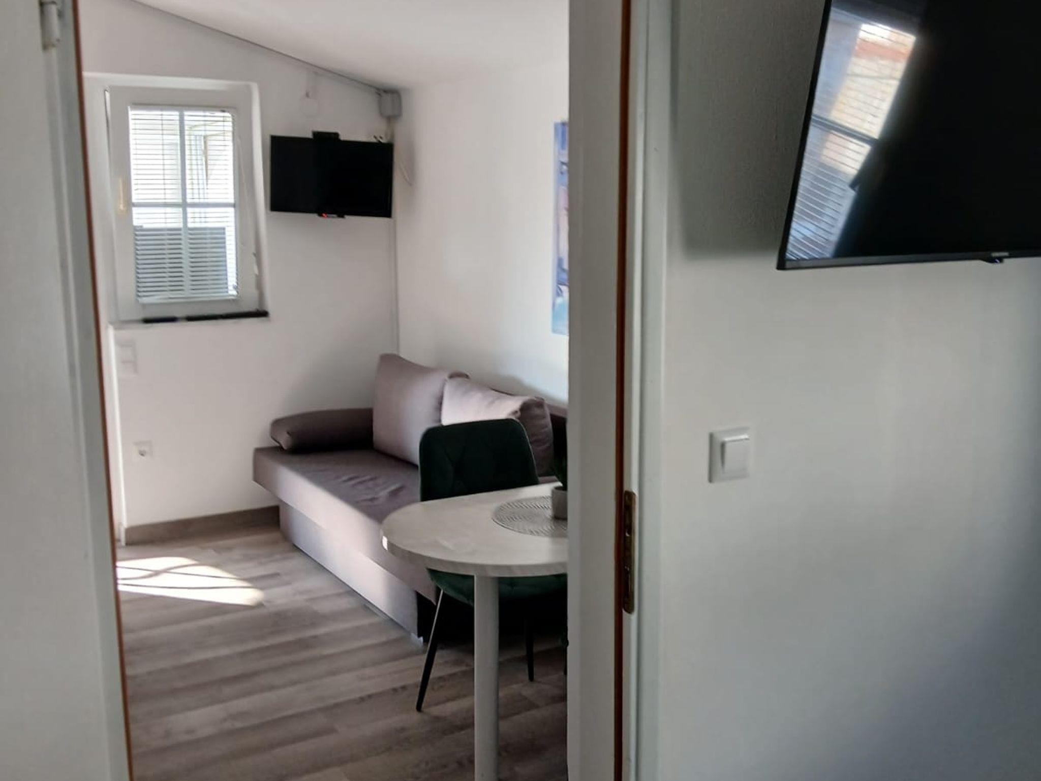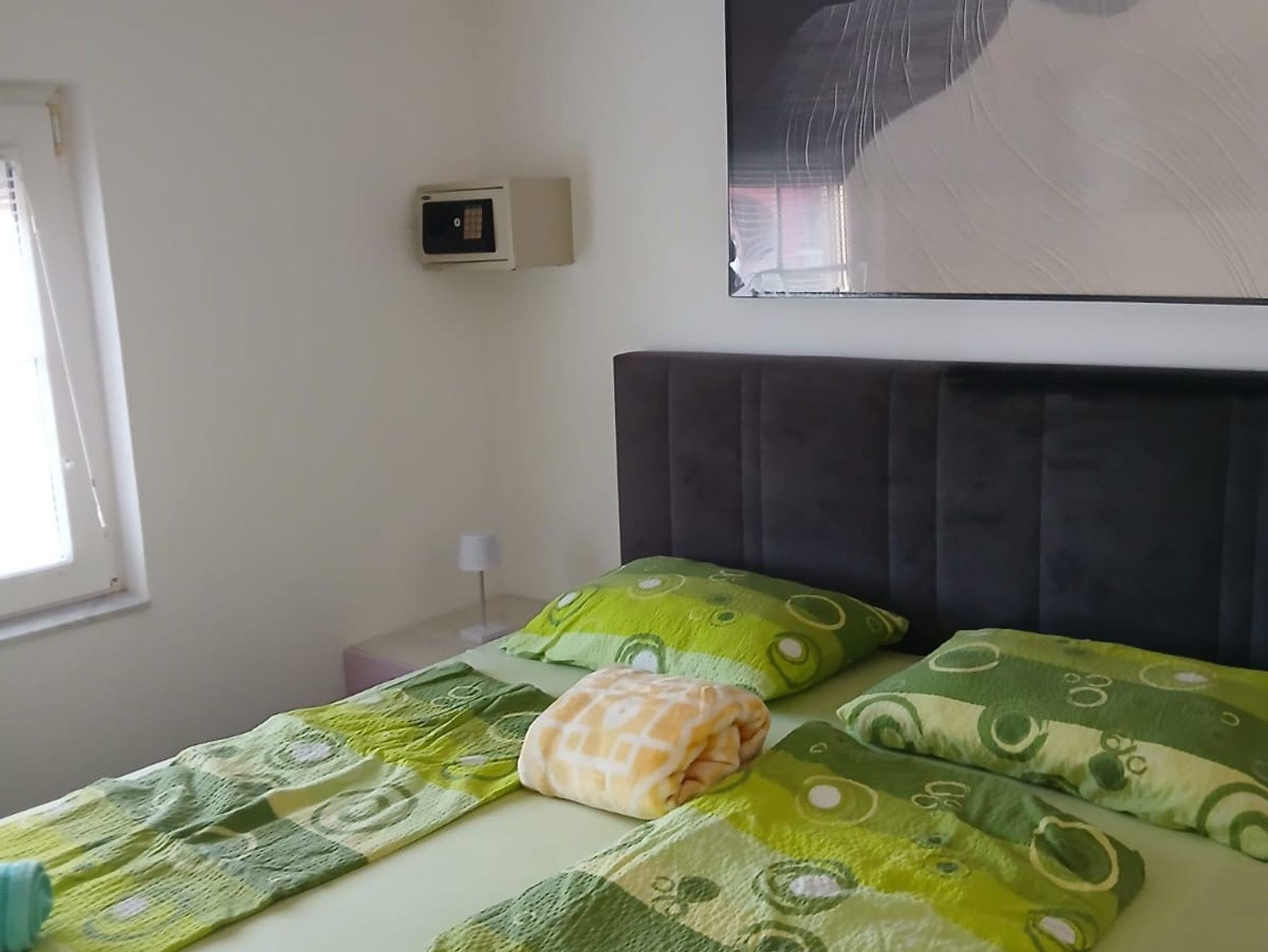 Ferienwohnung bietet Platz für 6 Gäste. Die Betten sind in Schlafzimmern, die es 2 gibt, und in Wohnzimmer, innerhalb einer Gesamtfläche von 60m2, angeordnet. Die Gäste haben eine eigene Terrasse zur Verfügung, auf der sie in warmen Sommernächten genießen können. Das Apartment bietet Meerblick. Es ist erlaubt, Speisen auf dem Gemeinschafts-Grill vorzubereiten. IM PREIS INBEGRIFFEN: Kurtaxe, Endreinigung, Klimatisierung, Parkplatz, Internet, Kinderbett, Bügeleisen, Bügelbrett, Föhn. VERBINDLICHE ZUSÄTZLICHE KOSTEN: Aufzahlung für Kurzaufenthalte (prozentualer Zuschlag pro Nächtigungsanzahl: 30% - 1, 20% - 2, 10% - 3). Die Verfügbarkeit zusätzlicher Dienstleistungen in Ihrem reservierten Termin und die Preise derselben (falls nicht aufgeführt) müssen im Voraus überprüft werden. Zusätzliche Dienstleistungen die in der Zahlungsaufforderung nicht aufgeführt sind werden direkt beim Vermieter bezahlt, angenommen der Gast nutzt auch diese.