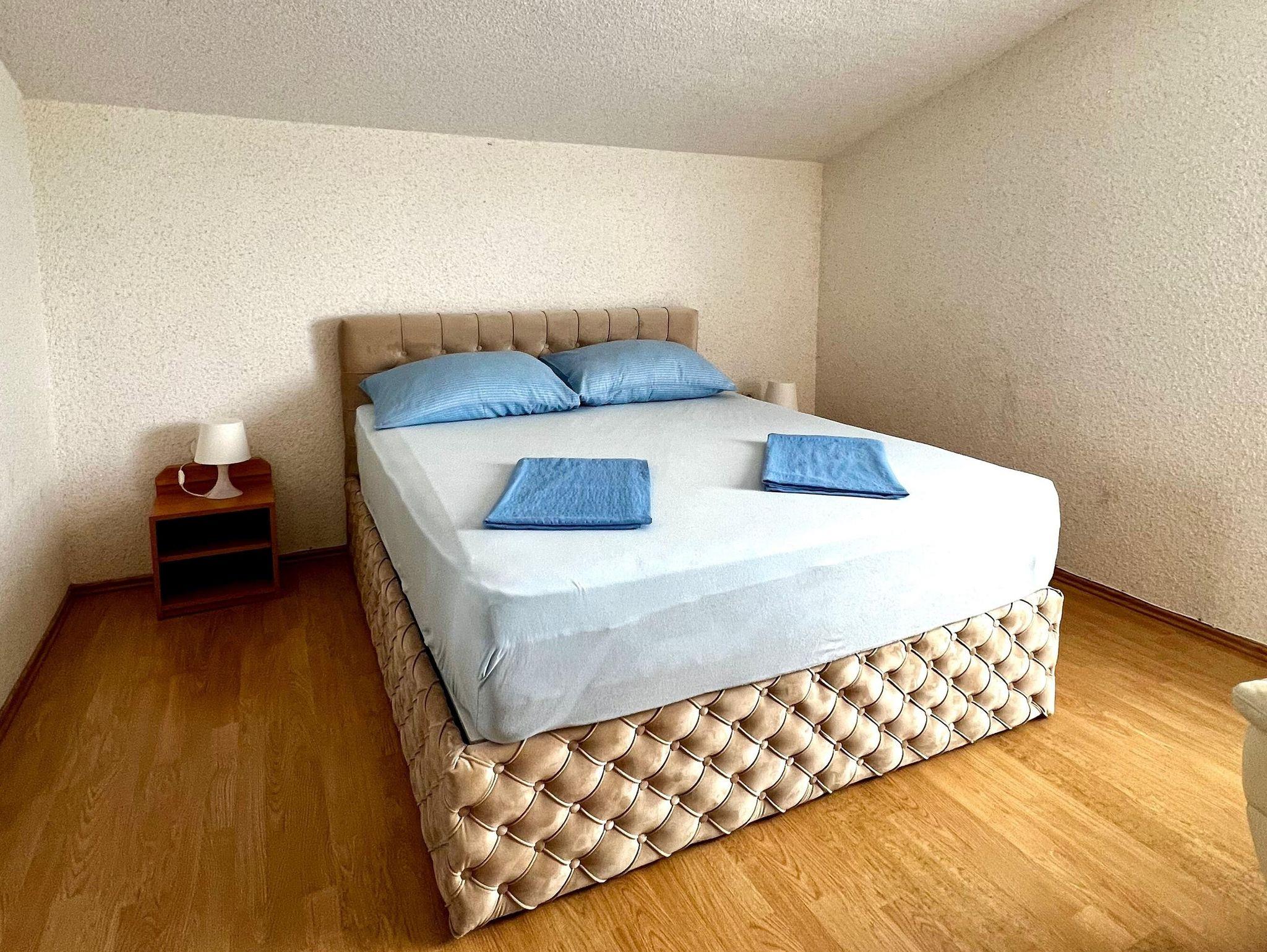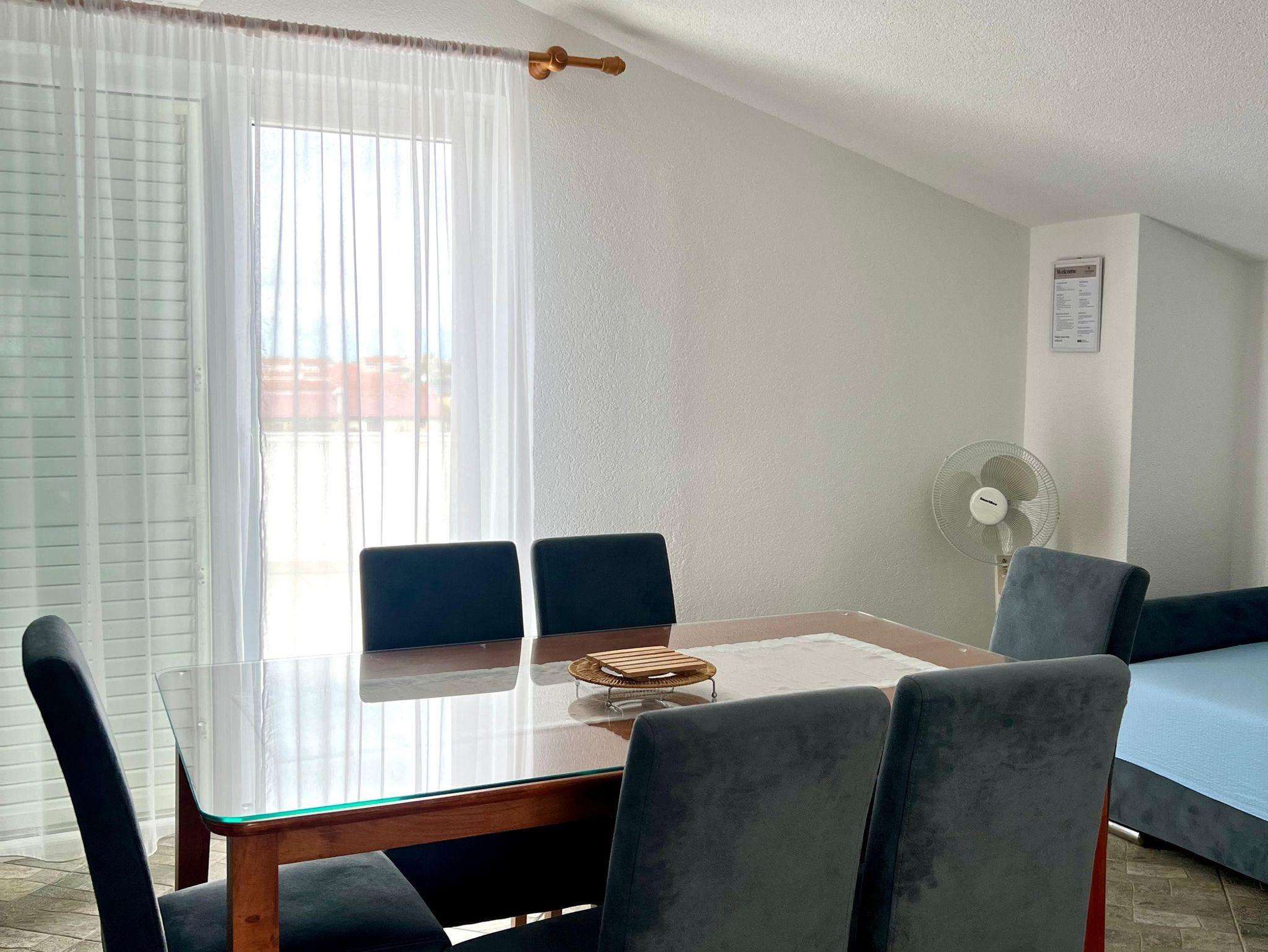 Ferienwohnung bietet Platz für 6 Gäste. Die Betten sind in Schlafzimmern, die es 2 gibt, und in Wohnzimmer, innerhalb einer Gesamtfläche von 130m2, angeordnet. Die Gäste haben eine eigene Terrasse zur Verfügung, auf der sie in warmen Sommernächten genießen können. Das Apartment bietet Meerblick. Es ist erlaubt, Speisen auf dem Gemeinschafts-Grill vorzubereiten. IM PREIS INBEGRIFFEN: Kurtaxe, Endreinigung, Klimatisierung, Parkplatz, Internet, Wäschewaschen, Kinderbett, Föhn. VERBINDLICHE ZUSÄTZLICHE KOSTEN: Aufzahlung für Kurzaufenthalte (prozentualer Zuschlag pro Nächtigungsanzahl: 30% - 1, 20% - 2, 10% - 3). Die Verfügbarkeit zusätzlicher Dienstleistungen in Ihrem reservierten Termin und die Preise derselben (falls nicht aufgeführt) müssen im Voraus überprüft werden. Zusätzliche Dienstleistungen die in der Zahlungsaufforderung nicht aufgeführt sind werden direkt beim Vermieter bezahlt, angenommen der Gast nutzt auch diese.